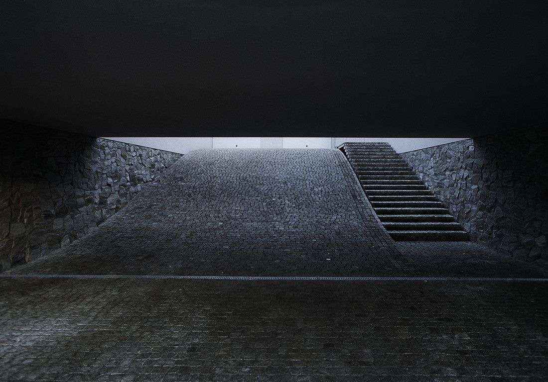 The building is a reinforced concrete monolith, and concrete is at the same time the finishing material of the transformed cube, while all additional elements are finished with dark ebony. The driveway and retaining walls were made out of quarried granite blocks, the material characteristic for the surroundings.
