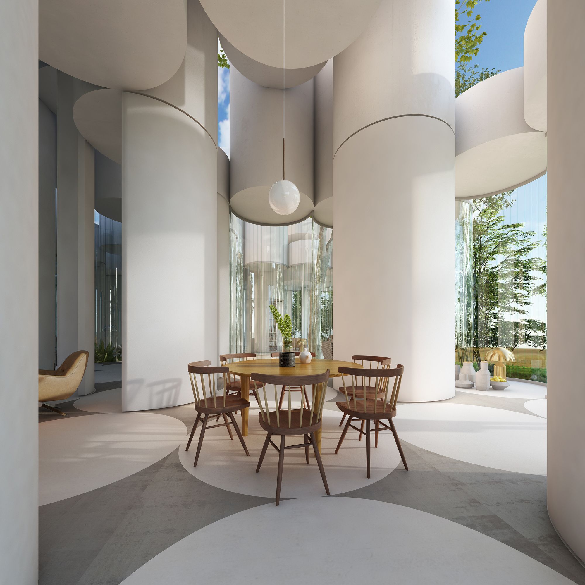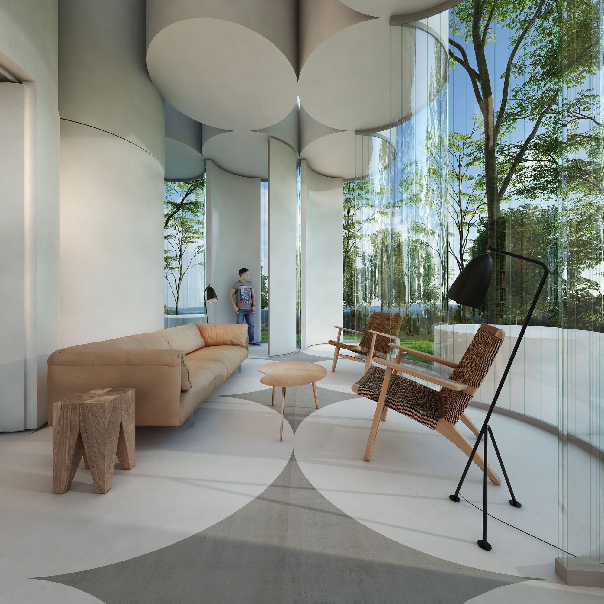 The cylinder house is designed to fit between the trees of a wooded lot near Lyon, France. For this house, the plan is based on a juxtaposition of a simple element, a cylinder. This cylinder can be opened, semi-open, closed, whatever its disposition it participates in the delimitation of space.