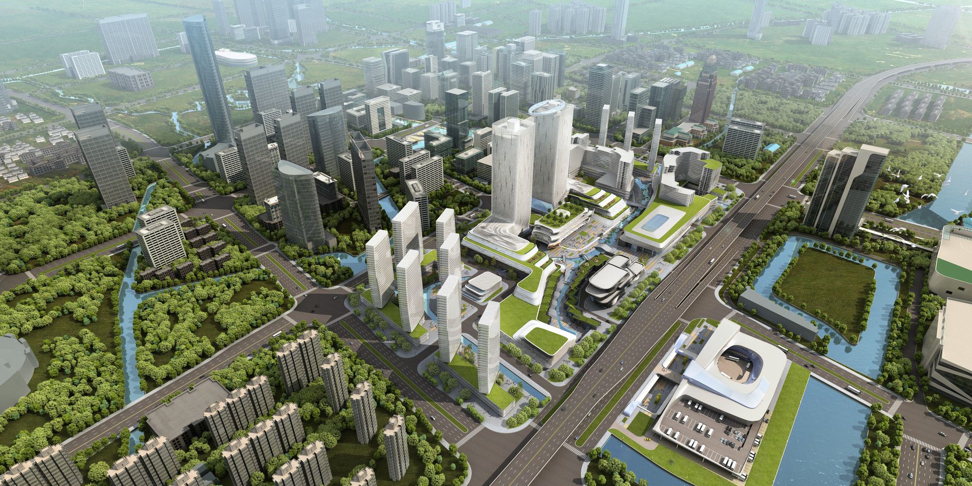 The project is located in the southernmost tip of Yinzhou Southern CBD, to the north of Huanqiu City, east of southern Ningnan Road, west of southern Tiantong Road, and south of eastern Tai’an Road. The plan emphasizes the strategic position of the portal area while facilitating its urban center feature.