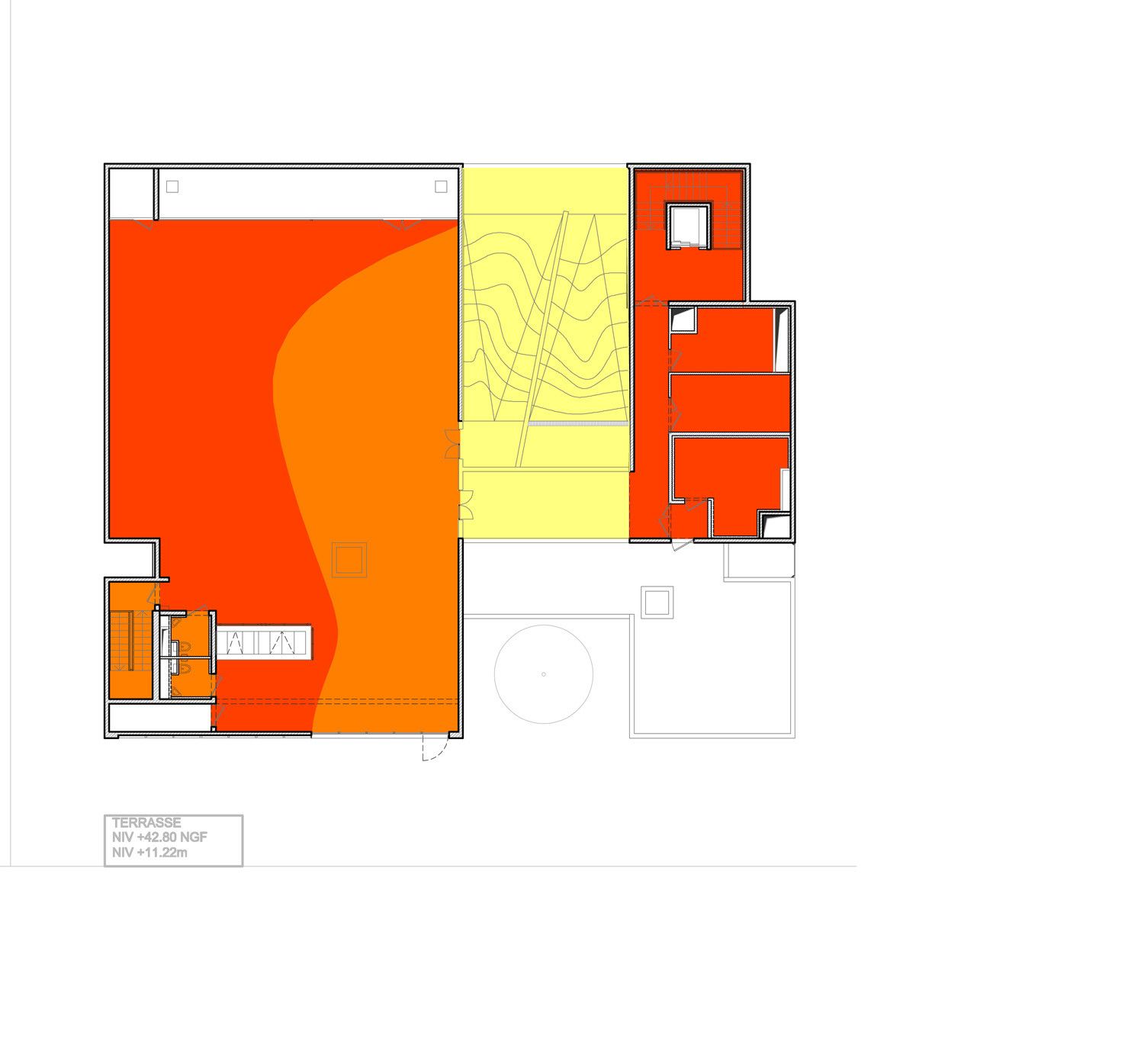 The spaces are superimposed without being separated. They communicate via visual glimpses: you see each other on all sides, you ‘feel’ each other, you can easily find your bearings in a building with a spatially fluid but unfamiliar layout. Nevertheless, the functional and administrative autonomy of the two activities (separate entrances and different operational timetables) is respected.
