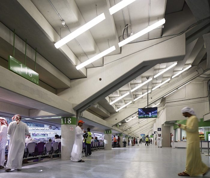 This “Palm Bole” facade also acts as a passive cooling device; shading the building during the heat of the day whilst allowing fresh air to flow. Within the bowl this creates comfortable spectator conditions and aids grass growth for the pitch.