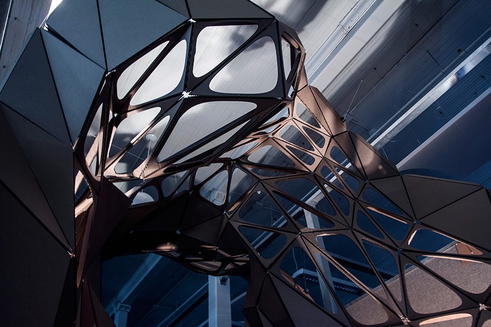 INVOLUTION, the Larry Martin studio took a long hard look at the conventional column design and decided to completely revolutionize it. They subdivided the typical solid facade into triangulated panels to add dynamism and movement.