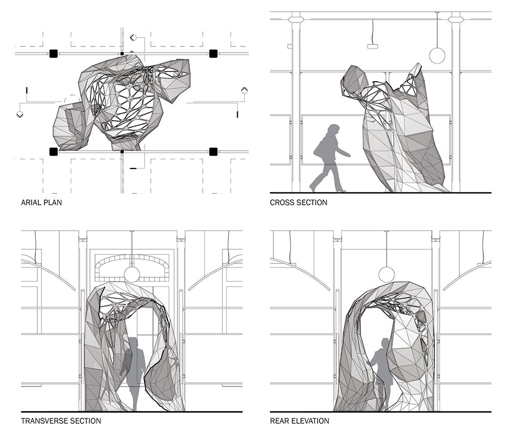 Rather than a linear route, the arch distorts and winds flowing along with the subjects within. The new design challenges the concept of structure and ornament and presents it in a unique and new manner.