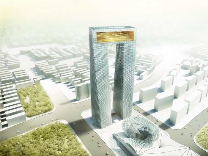 Program: 230.000 m2 hotel with 30.000 m2 commercial space and 230 m high tower with 150.000 m2 offices