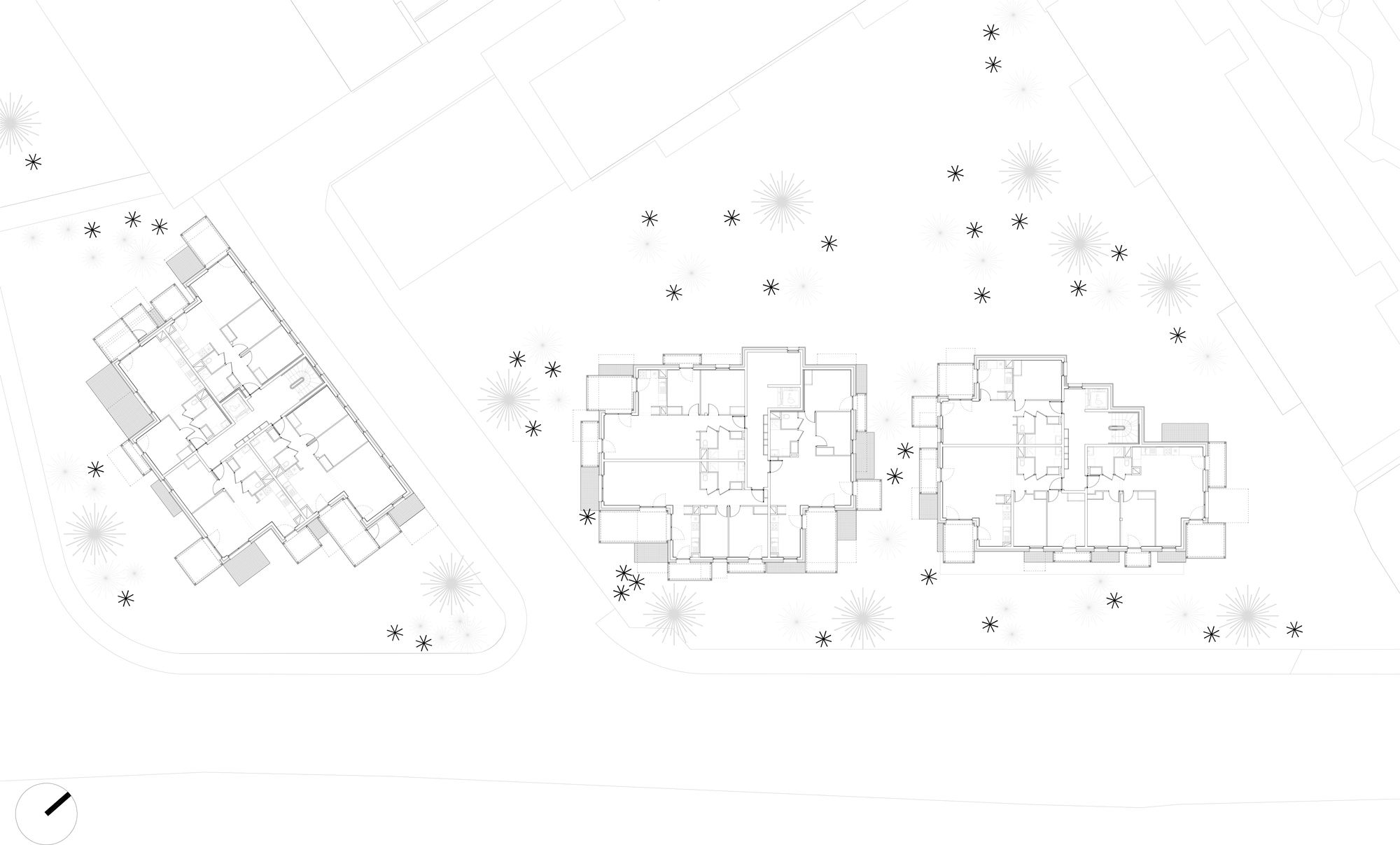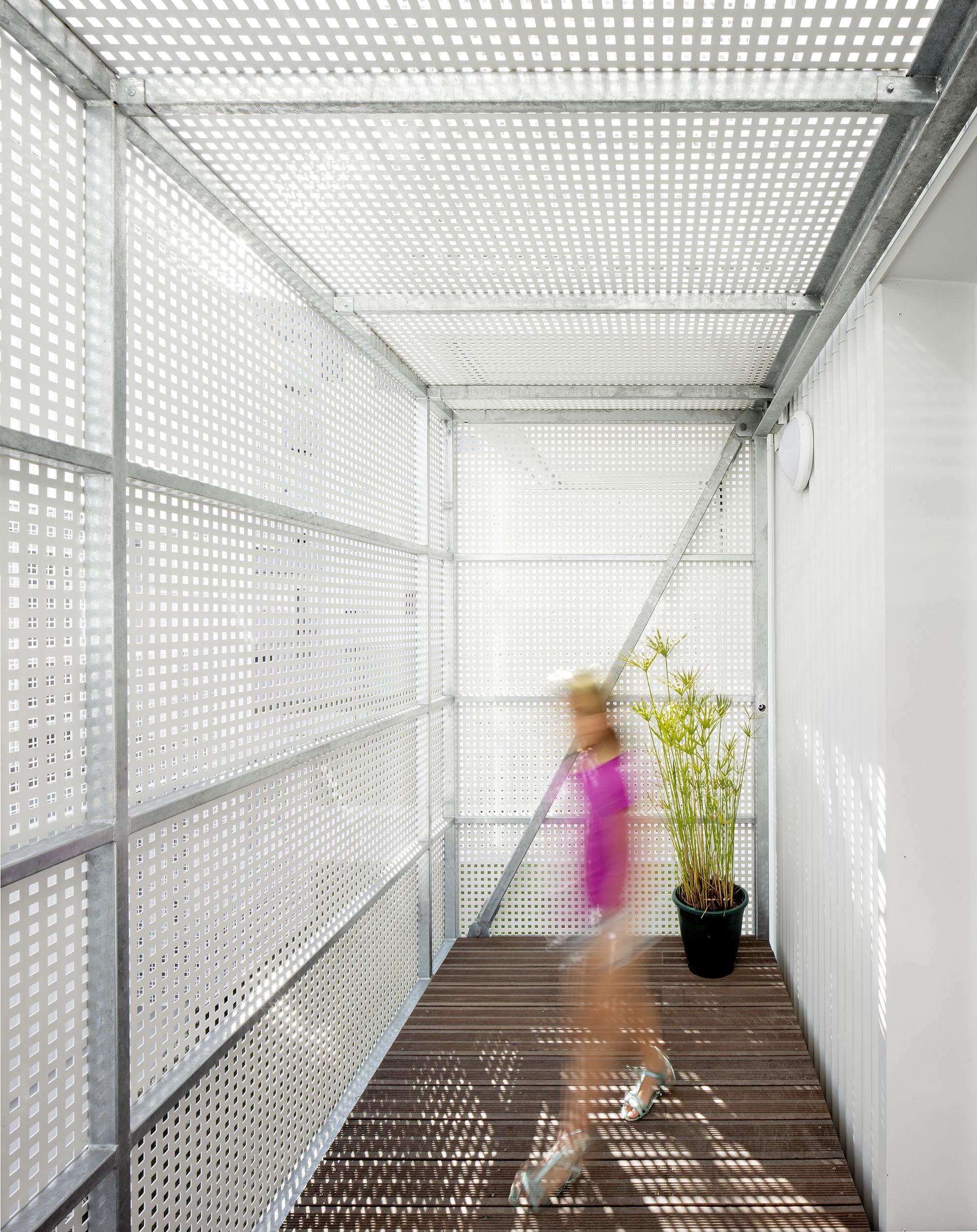 Exit conventional balconies, terraces and loggias with their separating walls and shields of varying transparency, used to hide unsightly objects or provide a modicum of intimacy. In this design, the outside spaces are extremely secluded and provide genuine additional spaces, equipped with utility rooms for drying washing or storing bulky objects, just like garden sheds. The apartments flow out into these exterior facilities, thereby offering ample extra space.