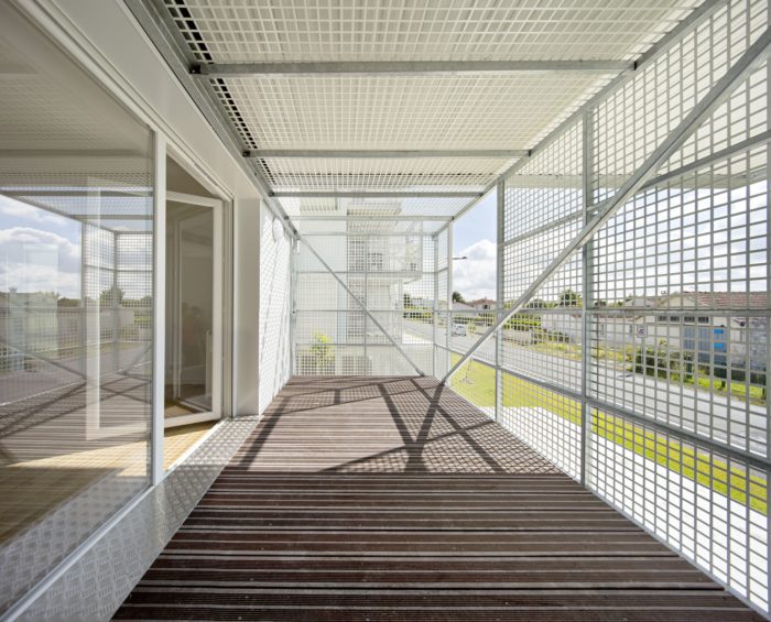 The harmonious association of setting and architecture makes way for a design which, rather than closing in on itself and looking inwards, opens out to embrace the neighbourhood as a whole, while still providing protection from direct line of sight and noise thanks to its perforated cladding.