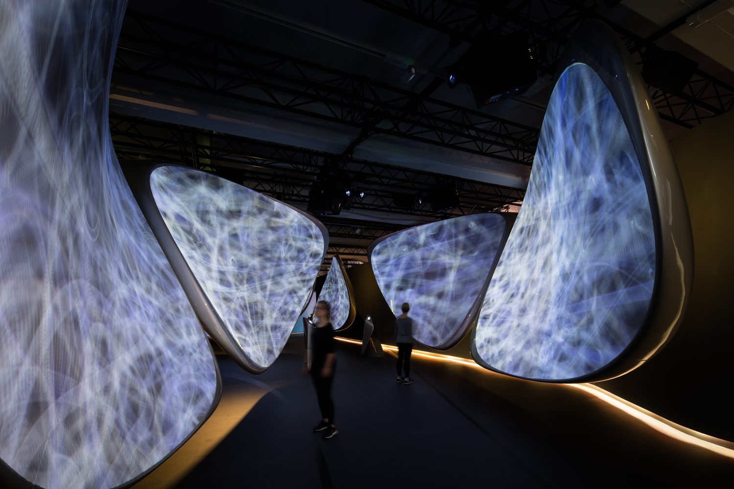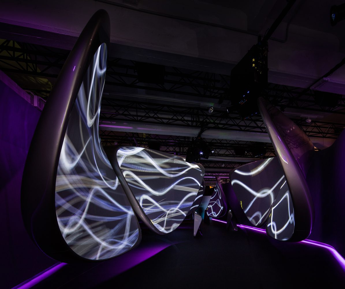 The digital installation carries geometric features which resemble that of the new Galaxy S8. The soft-edged curving screens flow smoothly, leading the visitors through. “‘Unconfined’ sets a benchmark in the way materials and technology to come together to create a natural flow between device and user and this was the inspiration for our collaboration,” said Patrik Schumacher, Principal of ZHA, of the digital installation. “We often look at the logic and coherence of nature’s systems when we are working to create environments that seamlessly connect form and function using innovative designs and technologies. This research is integrated within every aspect of the installation’s design.”