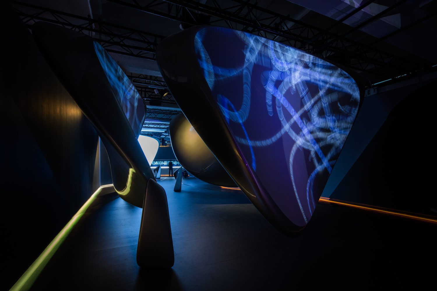 Samsung has collaborated with Zaha Hadid Architects (ZHA) and digital art and design collective Universal Everything to create a digital installation that reveals the concept behind the new design of Samsung’s Galaxy S8. The immersive installation, titled ‘unconfined’, takes the visitors on a journey that uncovers the design philosophy for the new Galaxy S phone, based on “unity of design, technology, and experience,” according to the designers. The installation is on display in the 2017 Milan Design Week, which is taking place between the 4th and 9th of April 2017.