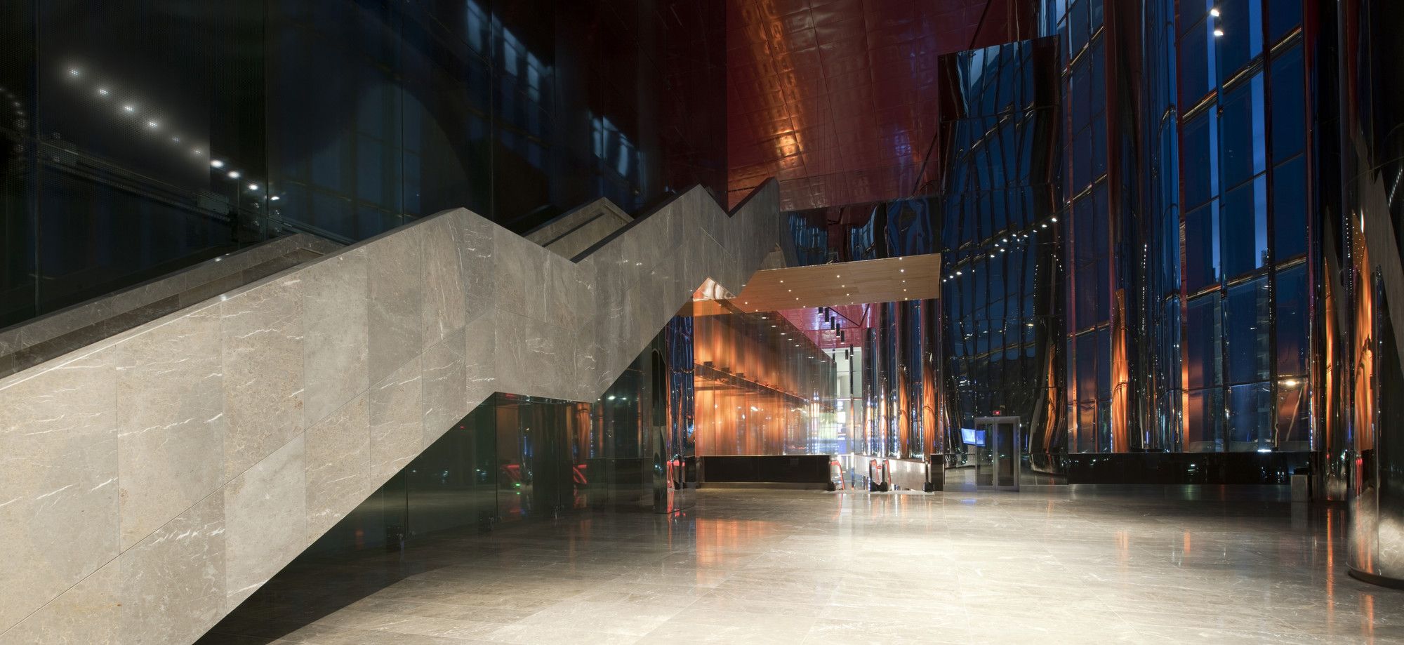 The Zorlu Center is at the junction of the Bosphorus Bridge European connection and the Büyükdere axis that connects the city center with the business district Maslak. With its easy access from important centers of Istanbul, it is also one of the few sites that face south, with the old city view making it a ‘subject of desire’ and was owned by the Zorlu Property through a tender, being curiously watched by the public. The mixed-use project being developed in this area deals with contradictions such as grandeur and modesty, public and private, institutional and domestic, social and distinguished, together with structural and topographical considerations. The ground is reconstructed by a topographical interpretation, with a kind of shell that is transformed into an in-between layer for the different functions combined in the complex. The shell starts from the Boulevard Level rising towards south and east. It is split into two arms separated by level differences, in order to overcome the dichotomy between the private and the public.