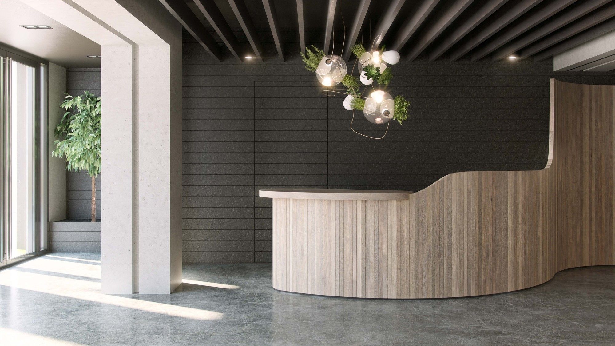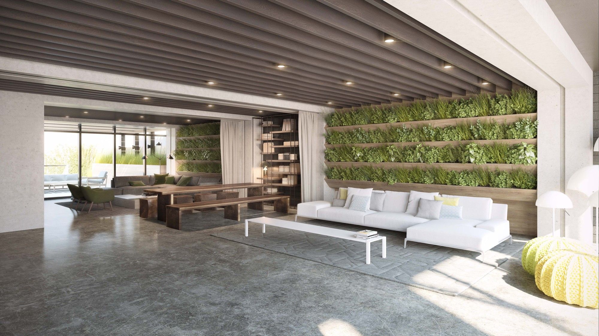 Inside, ODA’s design is conceived as a kind of urban oasis. While the clean lines and unabashed geometry of the contemporary canon are prominent on the exterior, the lobby—open planned, full-floored and attended 24 hours (via doorman and virtual concierge)—has a softer, distinctly natural, almost zen-like aura, with a strong emphasis on materials: a rich medley of woods, concrete, and metals. In the lobby’s lounge areas, living green wall receive ample light through transparent front and rear glass.