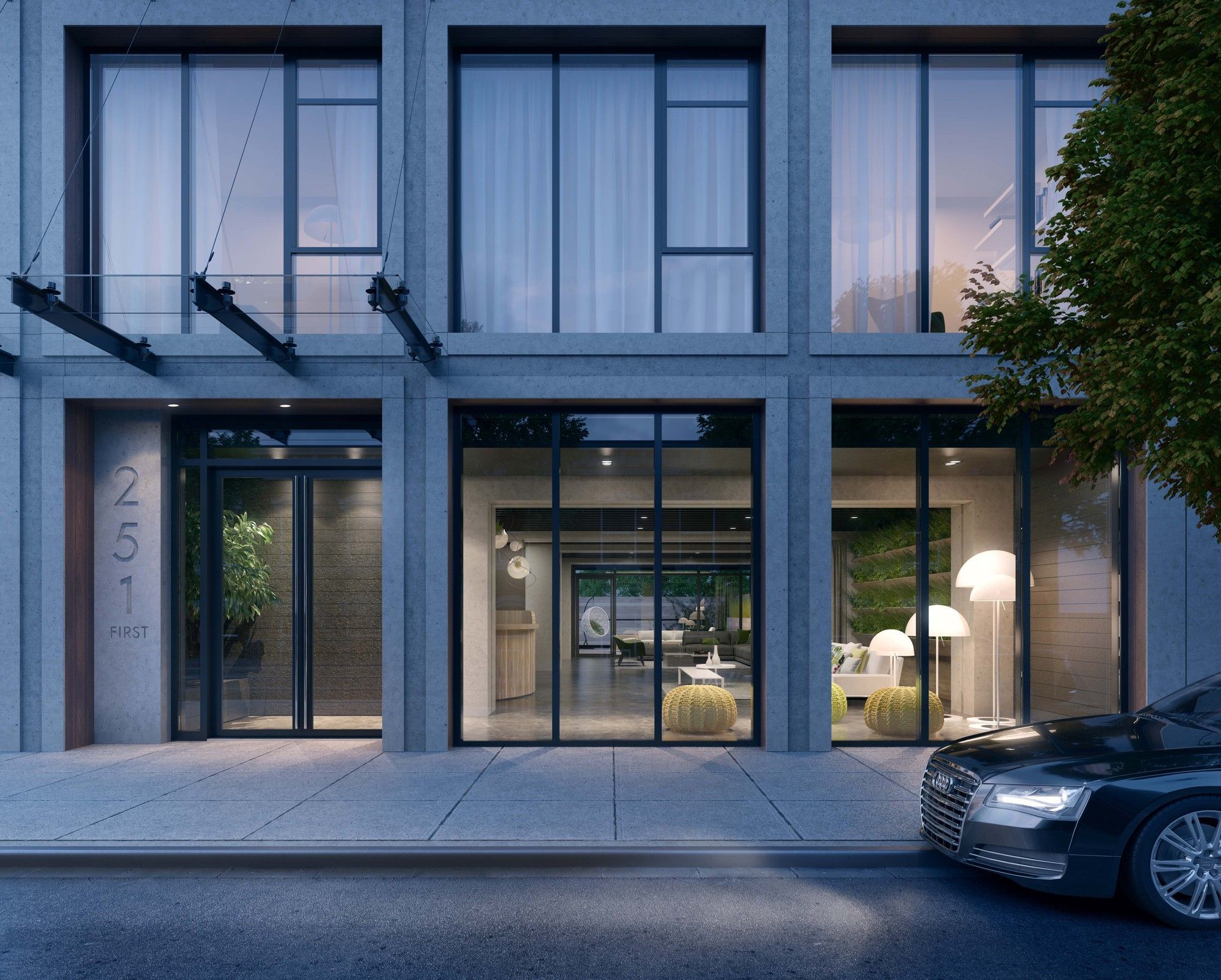 In this interaction between disparate exterior elements, 251 1st also references an abstract undercurrent—the generational and cultural shift, as Brooklyn, a once sleepy, largely residential outer borough, continues its transformation into one of NYC’s great cultural epicenters. In other words, both legs of Brooklyn’s changing identity receive expression on the exterior of 251 1st.