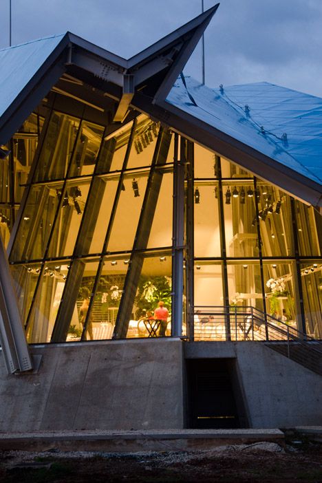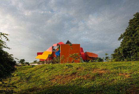 The museum hovers above a plaza, and features an open-air patio bathed in natural light mediating the entrance to the interior of the building. Natural light and ventilation represent a few of the many ways in which sustainability permeates the project. Environmental concerns are also present in the way coconut fibers are used in the building’s reinforced concrete, and in the way the plaza’s plants act as cleaning agents for the surrounding wetlands. Inside the museum, exhibition and circulation spaces are sweeping and continuous, allowing for extreme flexibility and cohesive transitions.