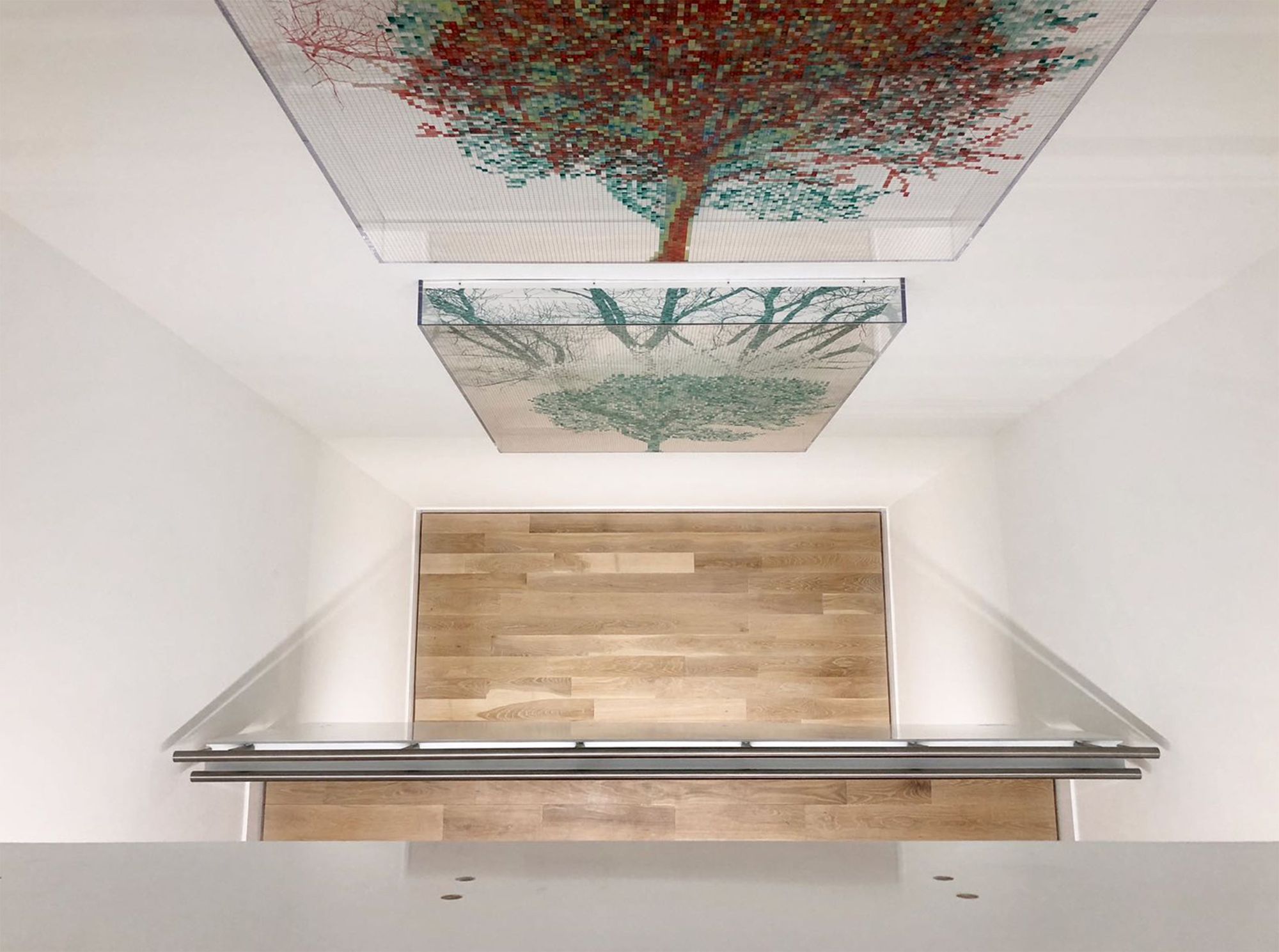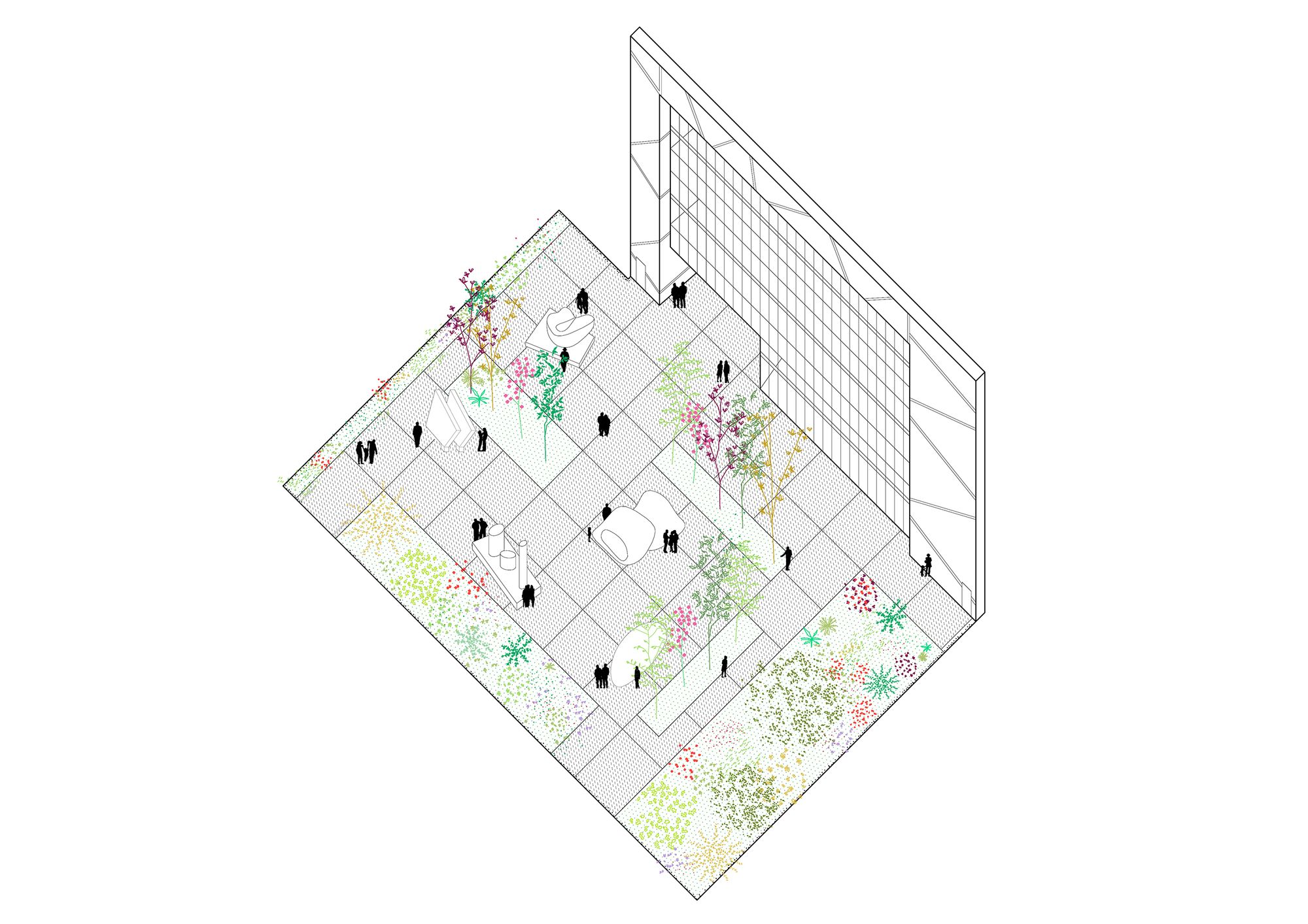 The museum opens to the north with a glass facade, giving natural light to the halls and being the holder for installations and temporary artistic creations made with different illuminations or vinyl adhesives on the glass. The exhibition halls are neutral, white, bright spaces with sufficient height for large format installations. The museum complex is complete with an exterior space, the “Garden of Sculptures”, conceived as a large outdoor exhibition hall.