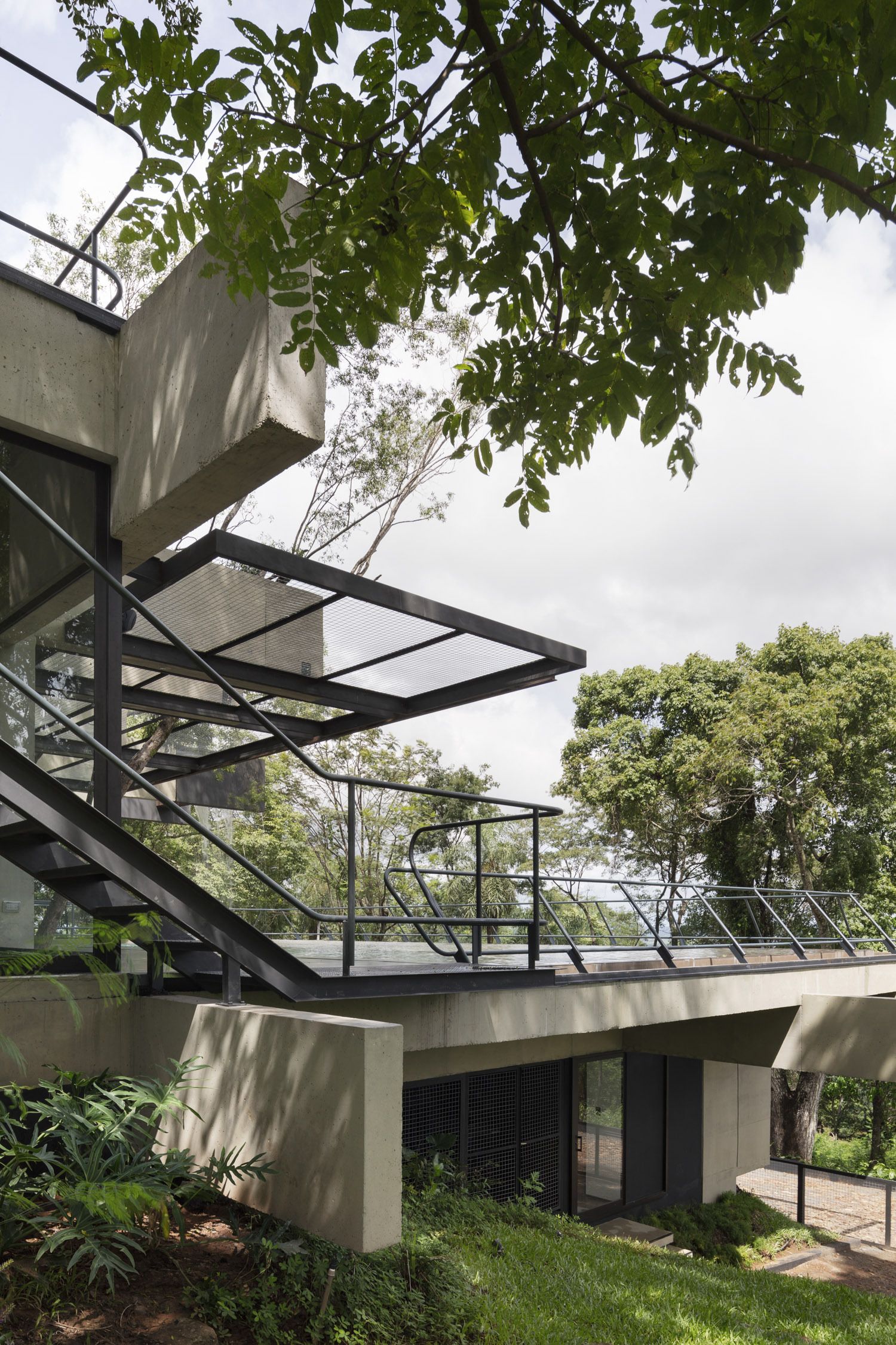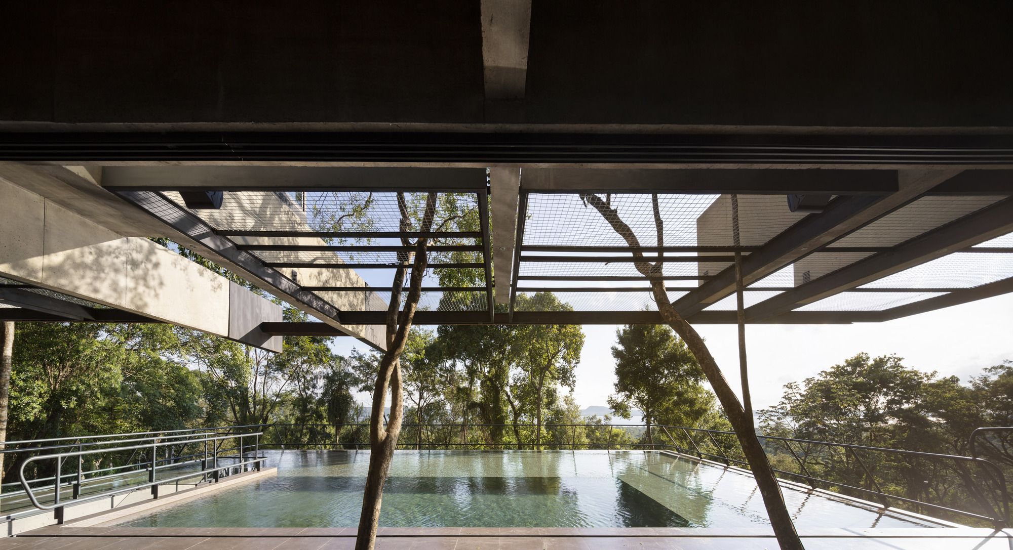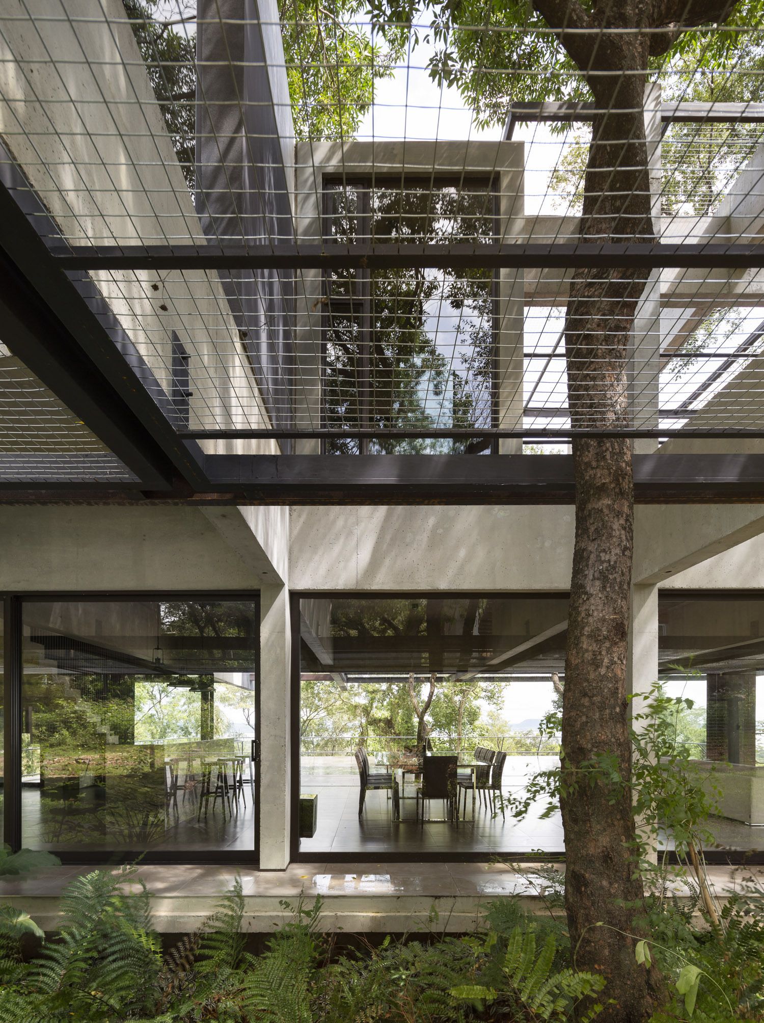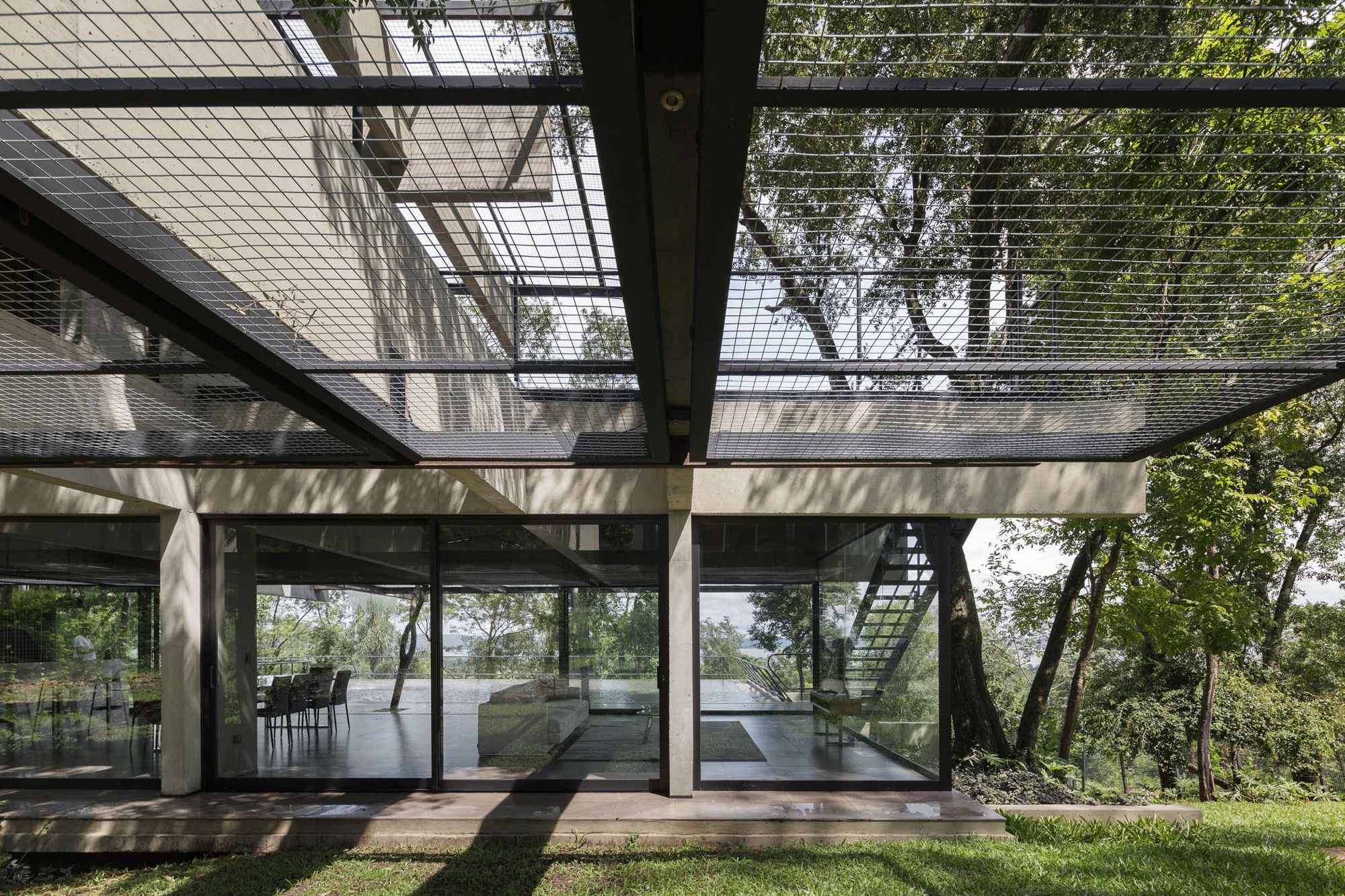 The hillside is strengthened with the construction of the house as a negative of the topography, modifying the ground as little as possible, positive soil – negative house, allowing the making of a house in 3 levels, upper and lower levels as intimate of bedrooms; and the intermediate level contains the social área, the water mirror as a reflection of the protagonist vegetation, a landscape frame.