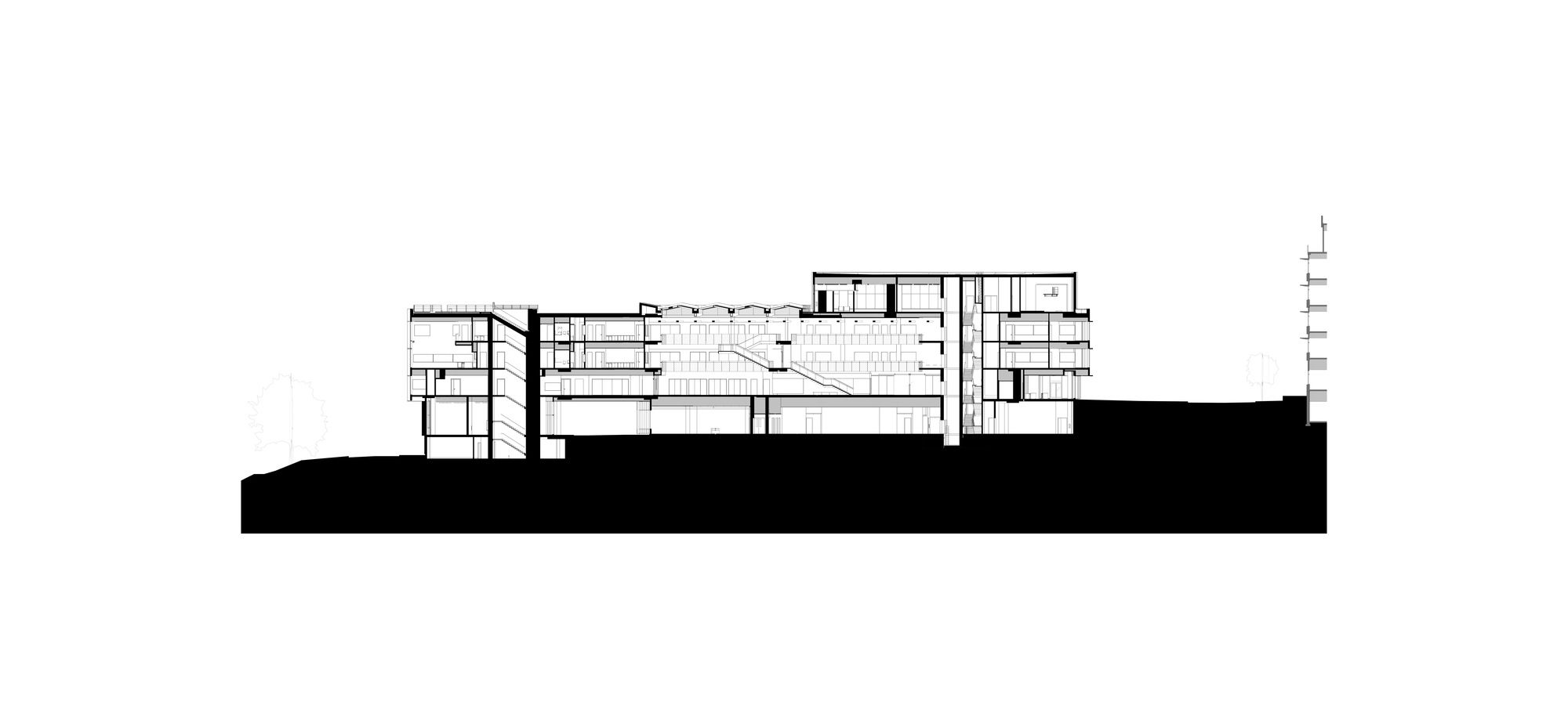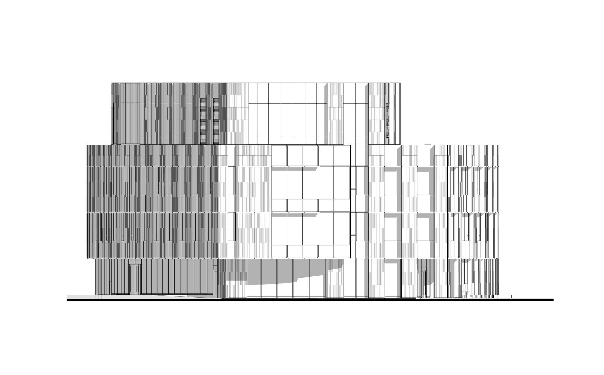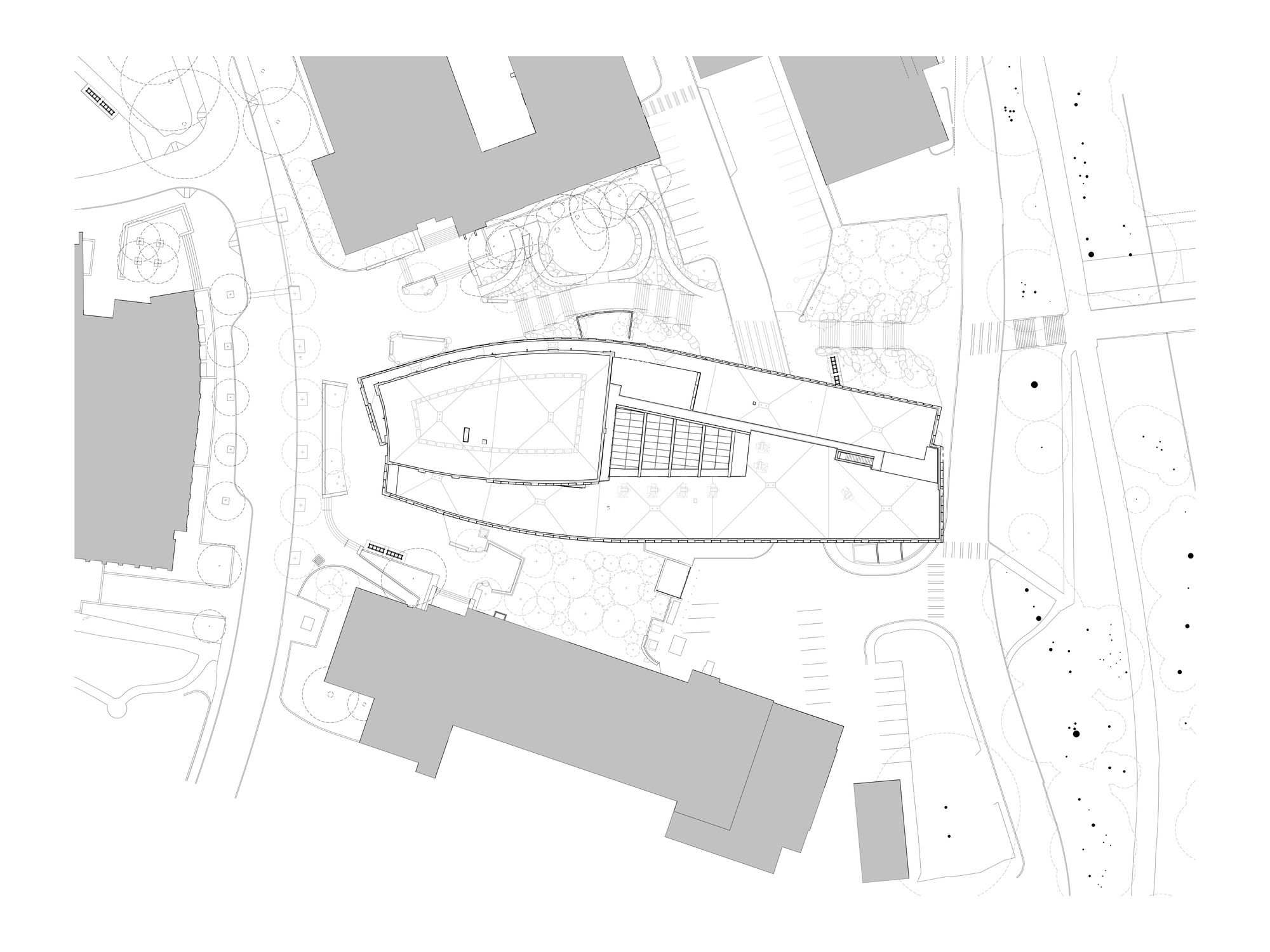 A roof-level event center will support a wide range of educational needs, industry collaborations, and outreach functions, and provides a signature experience with its sweeping views over the campus, Lake Washington and the Cascade Mountains beyond. In a dense campus precinct surrounded by engineering buildings, the expansion site interacts with the existing facility across Stevens Way—a major campus corridor shared by cars, buses, pedestrians, and bicycles—requiring a holistic approach to integrating campus circulation into the two-building program. A pedestrian circulation path through the steeply sloped, forested site crosses Stevens Way as well as two service roads as it approaches the Burke-Gilman Trail, forming a critical axial connection between Drumheller Fountain at the center of campus and the athletic facilities on the East Campus.