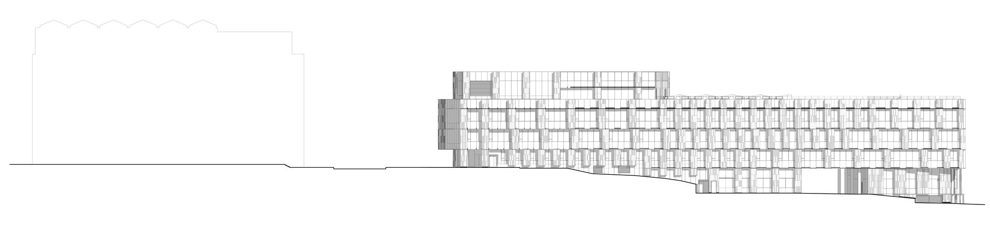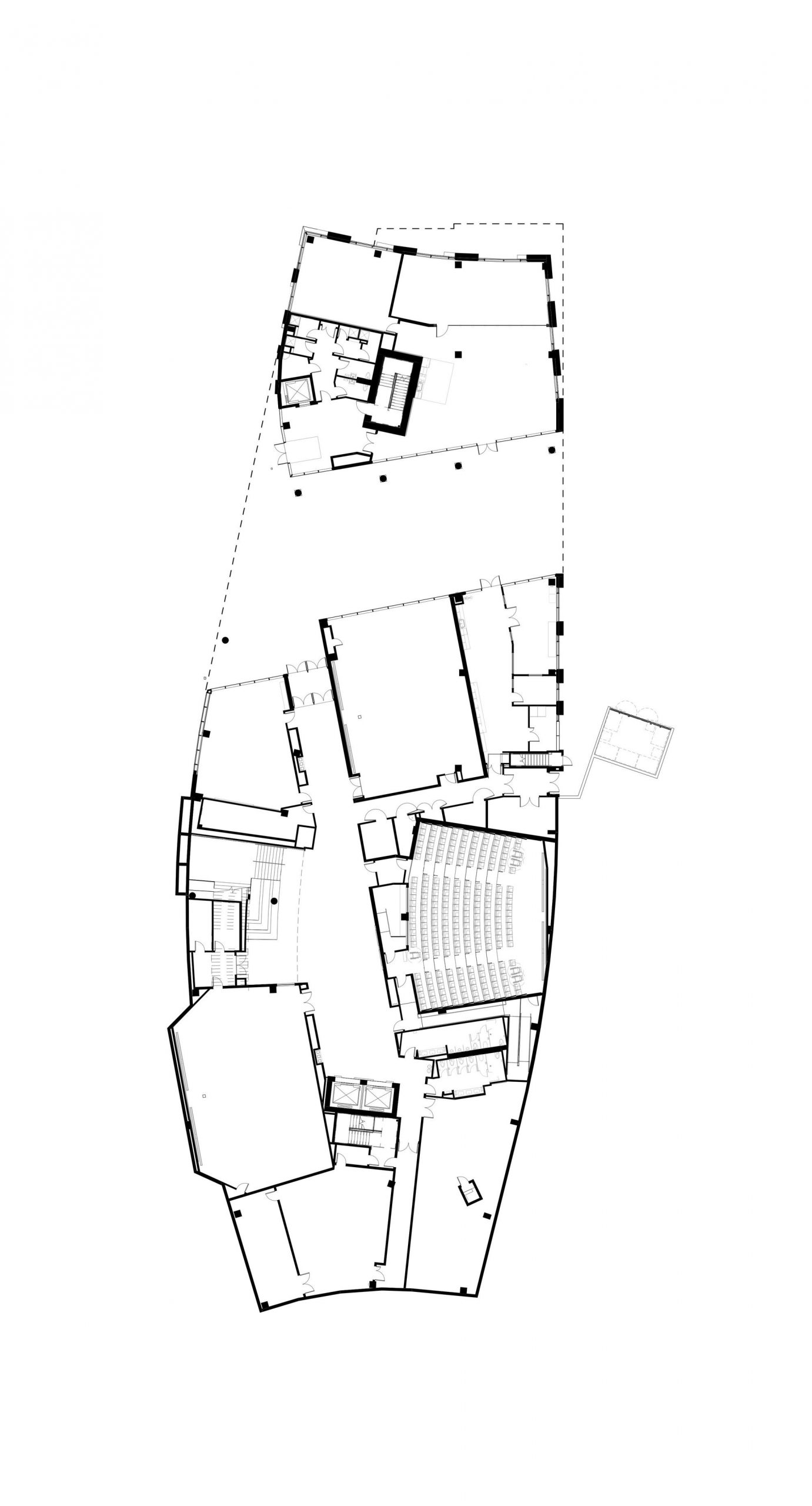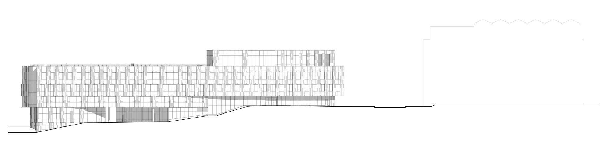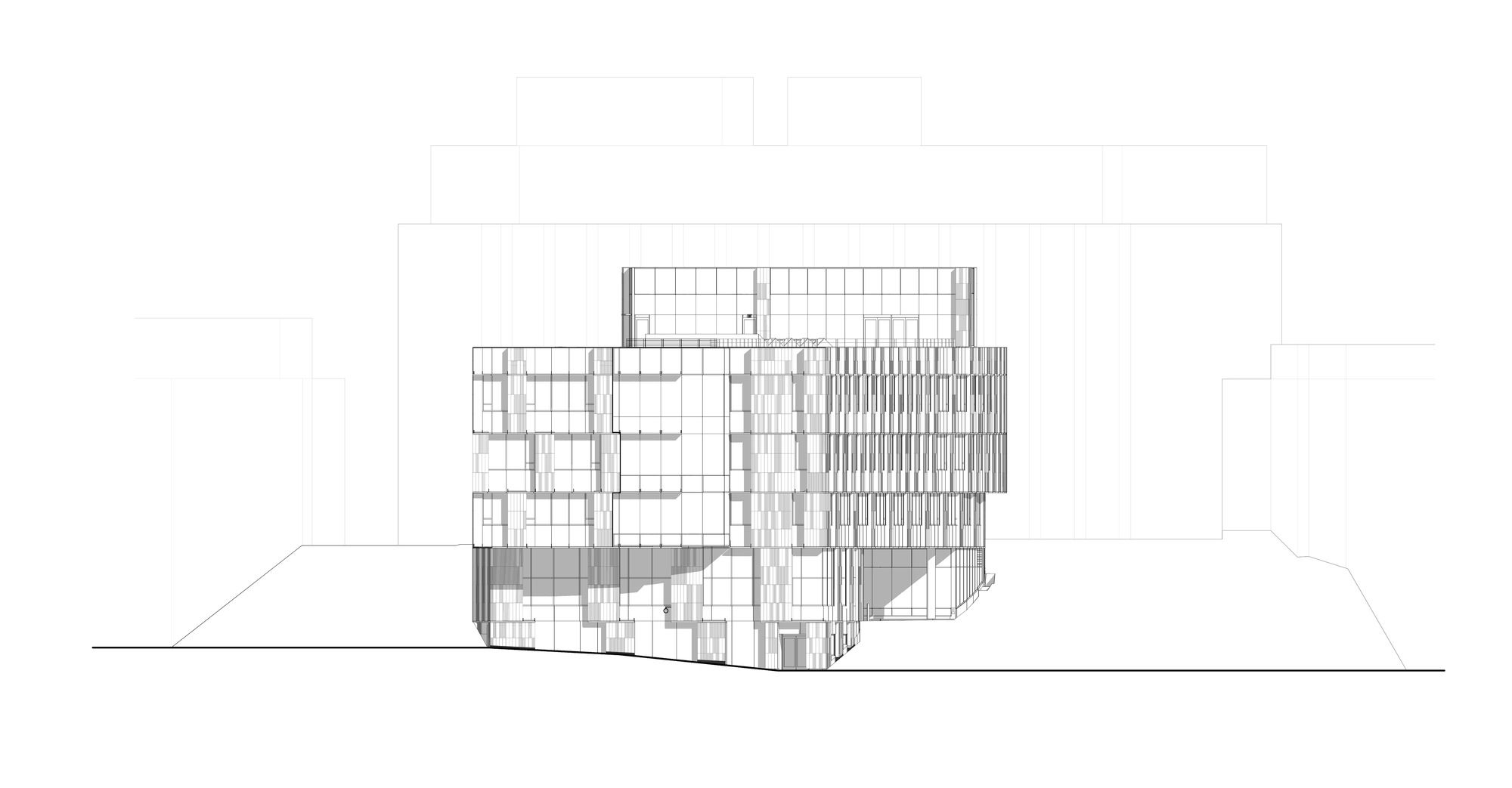 A roof-level event center will support a wide range of educational needs, industry collaborations, and outreach functions, and provides a signature experience with its sweeping views over the campus, Lake Washington and the Cascade Mountains beyond. In a dense campus precinct surrounded by engineering buildings, the expansion site interacts with the existing facility across Stevens Way—a major campus corridor shared by cars, buses, pedestrians, and bicycles—requiring a holistic approach to integrating campus circulation into the two-building program. A pedestrian circulation path through the steeply sloped, forested site crosses Stevens Way as well as two service roads as it approaches the Burke-Gilman Trail, forming a critical axial connection between Drumheller Fountain at the center of campus and the athletic facilities on the East Campus.