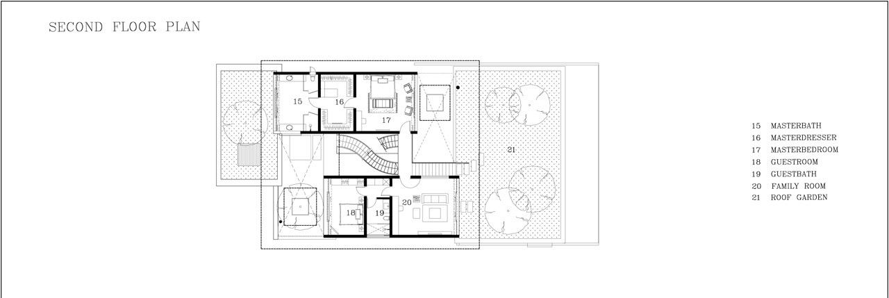 The walls create a directionality or axis through the house along which sea breezes are funneled. Sea air and natural light are drawn into the space, opening it up along the axis. An expressive, scultpural stair climbs through the central volume, linking each of the terraced floors. Roof gardens created bases for the stories above, creating the feeling of an isolated floor amongst private gardens. And to top it all off, from the uppermost floor’s garden, rises a slope of grass which angles to become the home’s green roof.