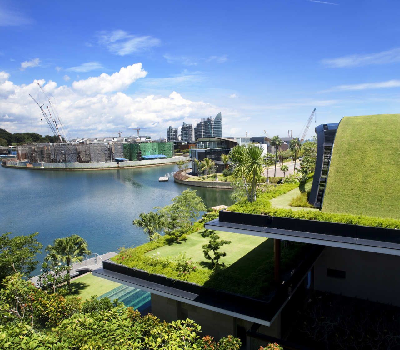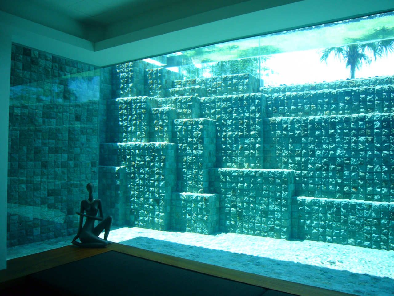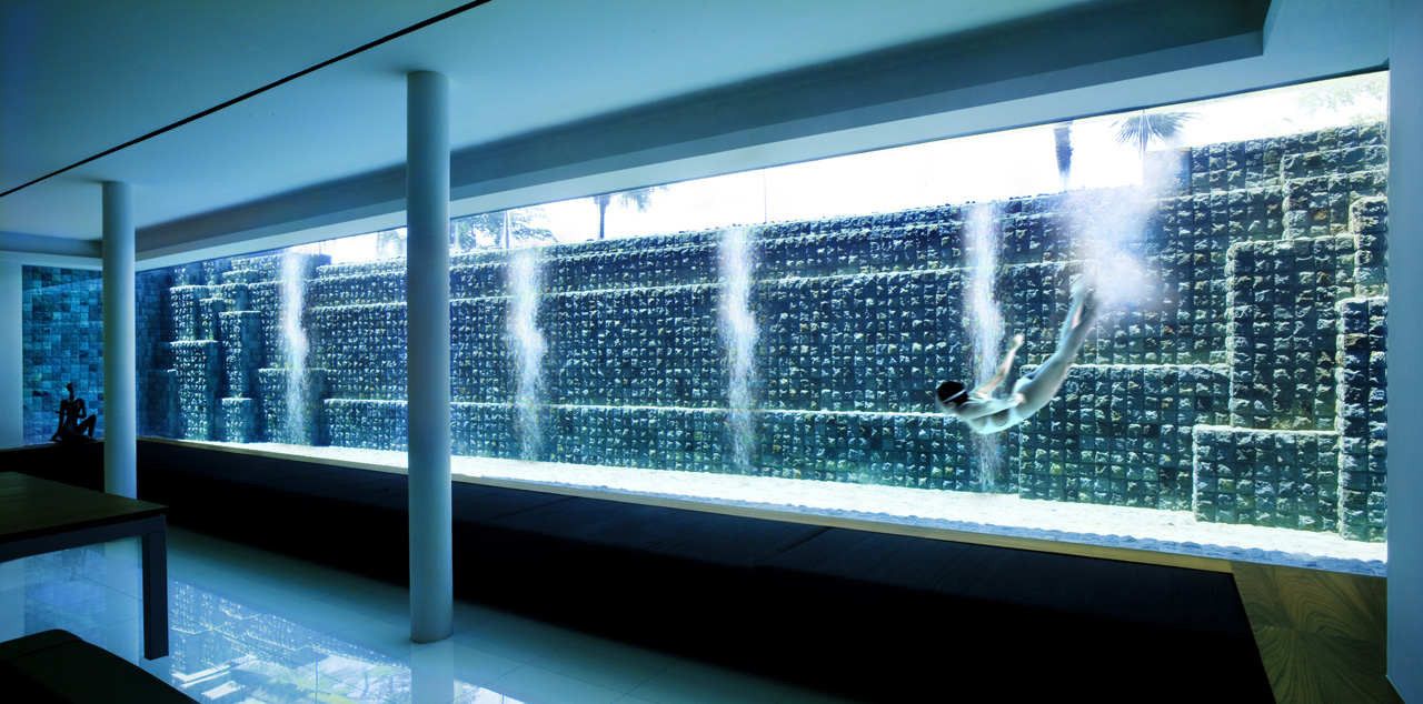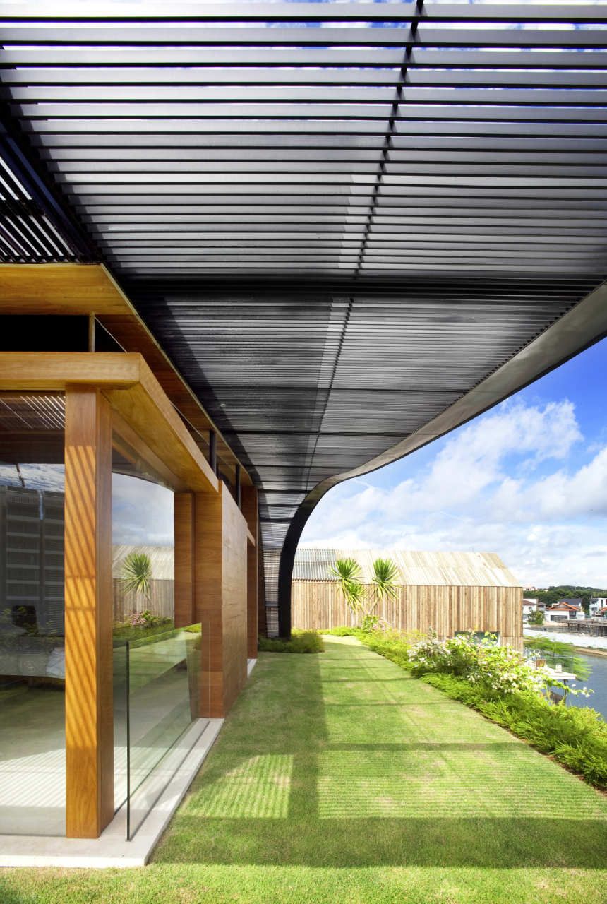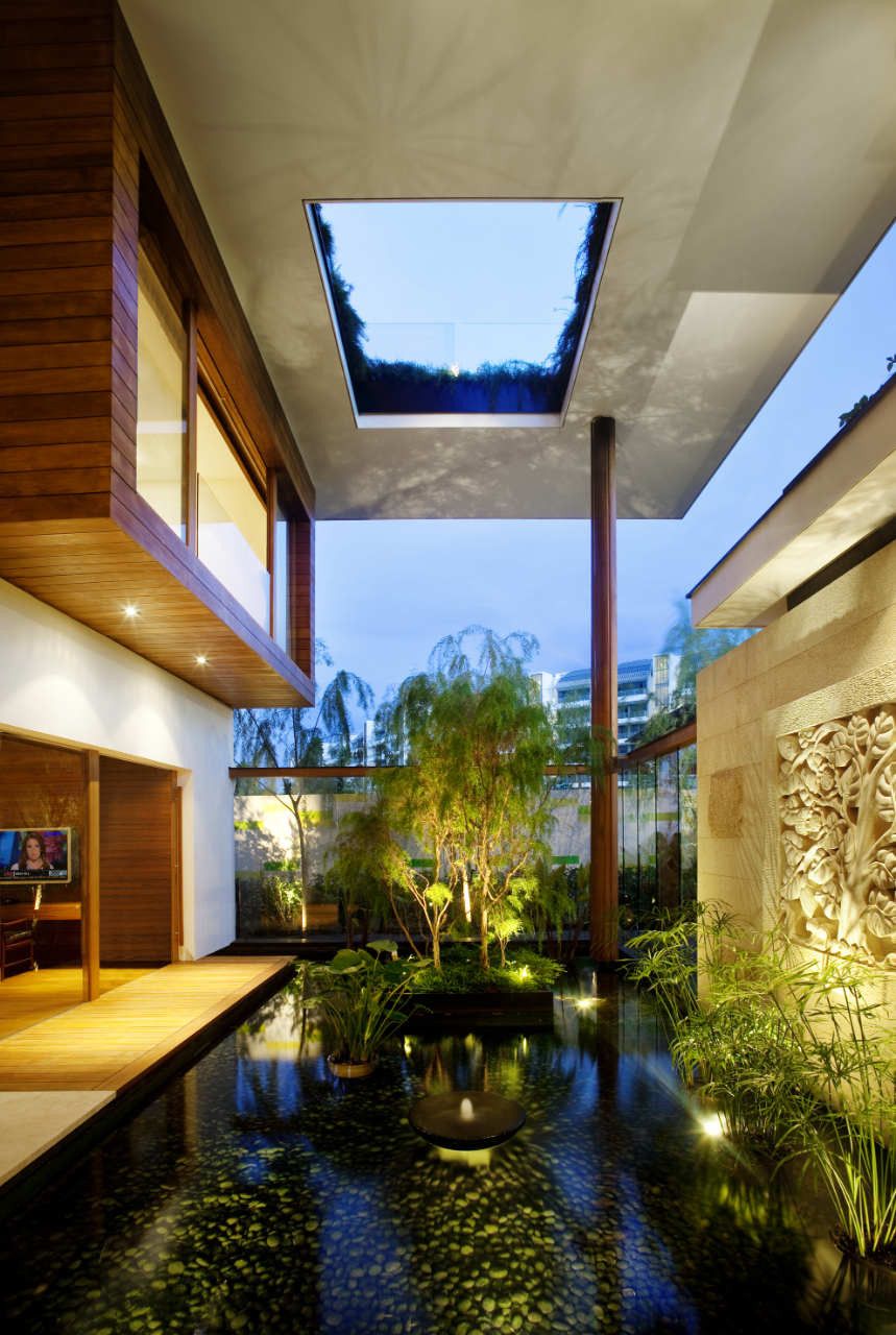 The Meera House, designed by Guz Architects is situated on a dense site on the island of Sentosa, adjacent to Singapore. To address the privacy issues created by the tight packing of plots, the architects started with two side-bounding walls. These wall define the volume of the house without coming directly up to it, providing access for light and ‘breathing room’.