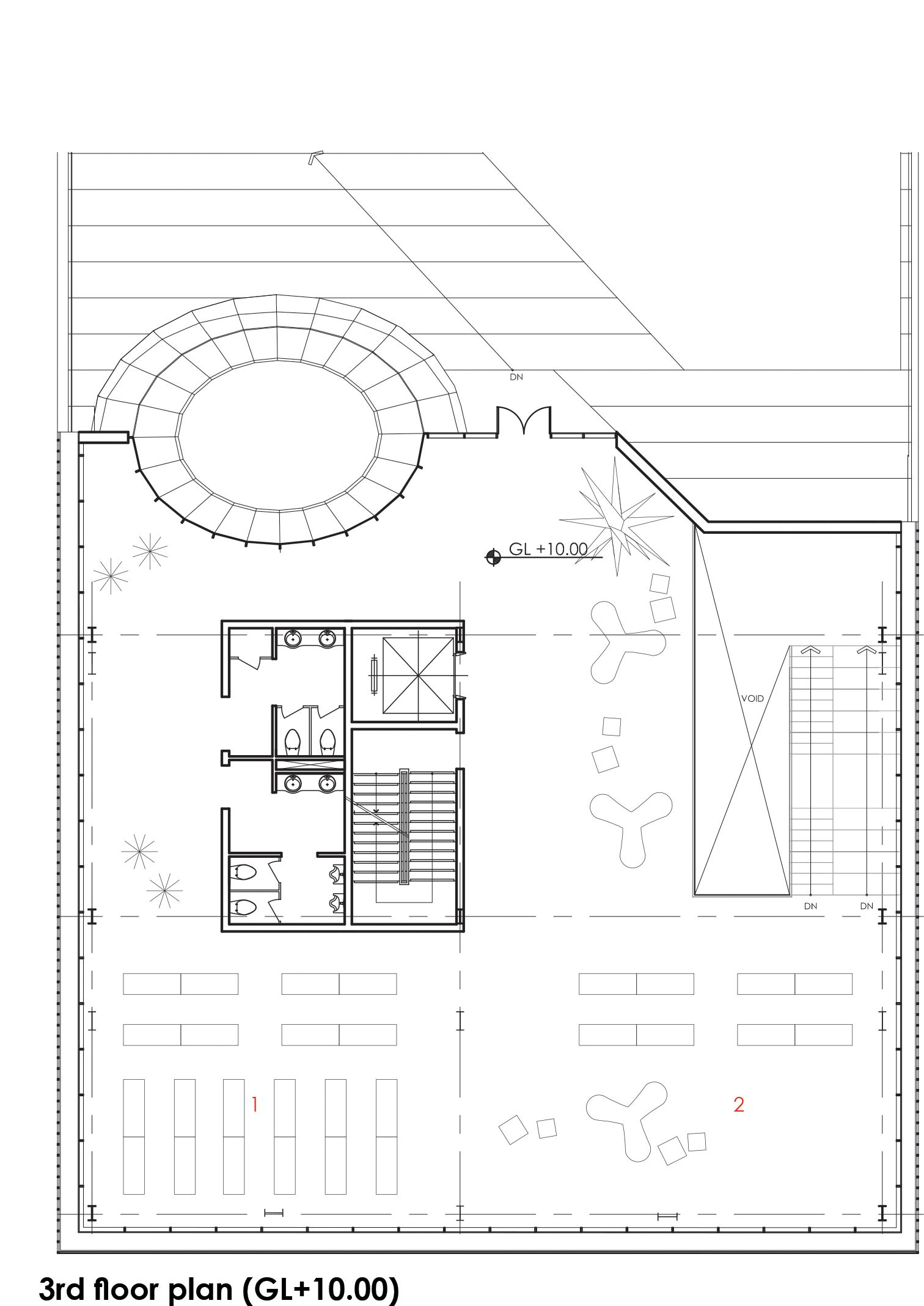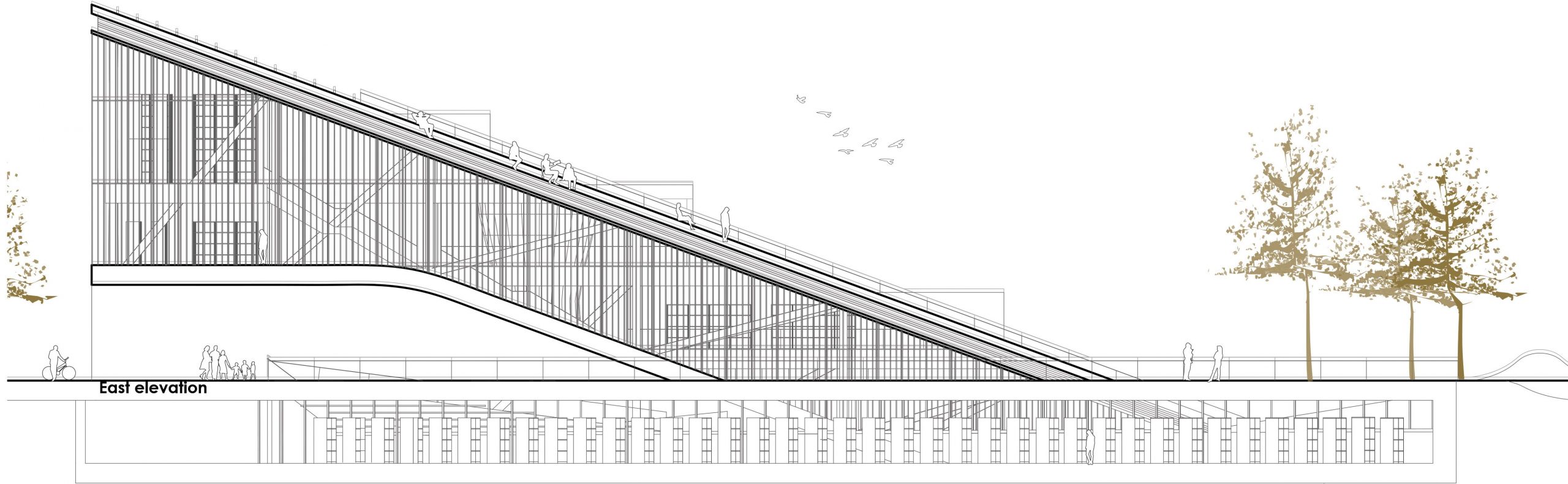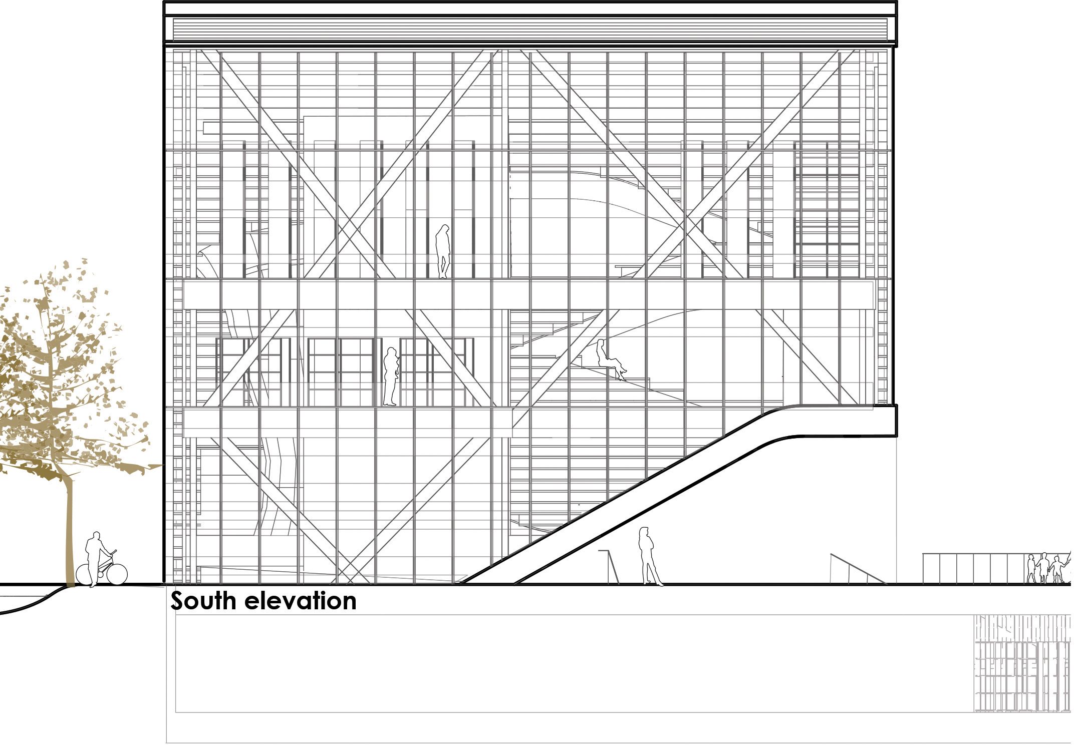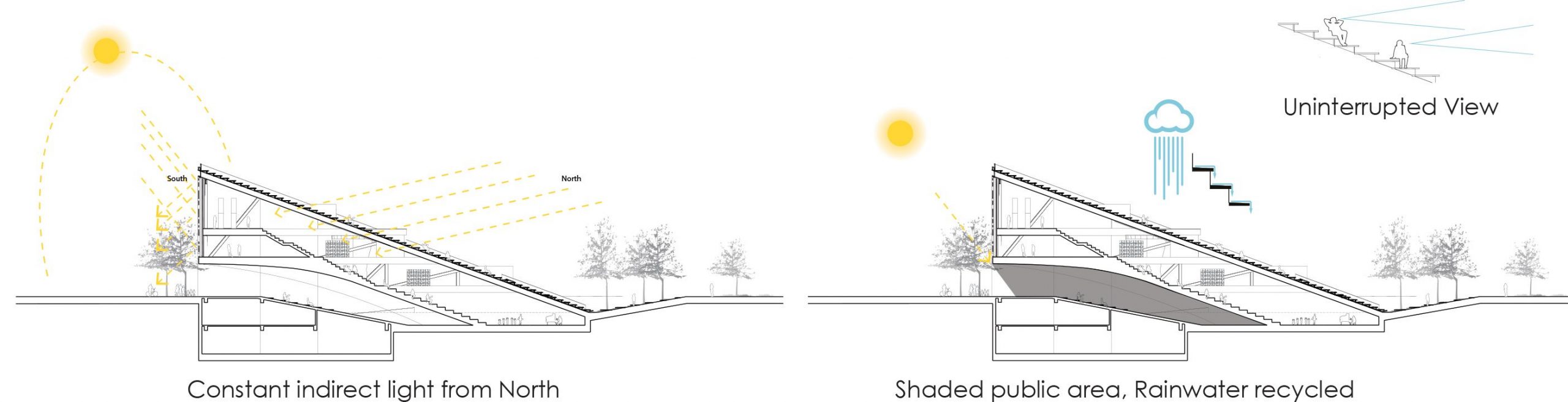 The library has two main programs, that is collection and preserving.the underground serves to house the preserving functions while the collection functions are kept above ground.The simple lattice structural beams used allow for maximum spacing devoid of structural constraints. This design although it didn’t come out tops, was named aas an hounorable mention in the design competition.