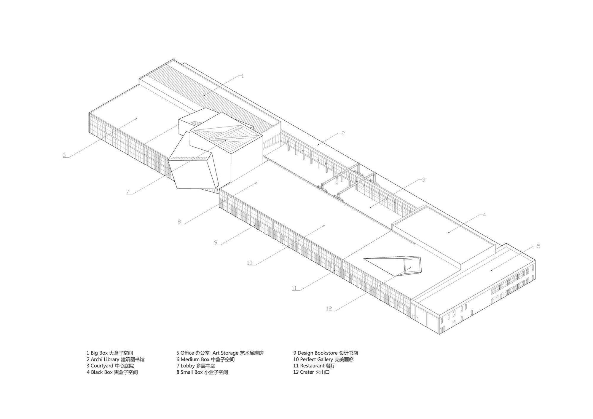 Rather than conceiving the gallery as a space only for artists and connoisseurs, the Minsheng Contemporary Art Museum is the “largest public dedicated exhibition space” for contemporary art in China. The designers felt that the nature of art galleries quintessentially is not to be flexible and open, but rather secluded and monotonous. The galleries have the 5 metre height of a traditional gallery, but their design is more flexible. Instead of becoming a “white cube” like all art galleries, the museum contains spaces of different sizes dedicated to different types of functions. These are a big box, a small box, middle box, a classic space, a courtyard exhibition space and a black box for performances, conventions and exhibitions.