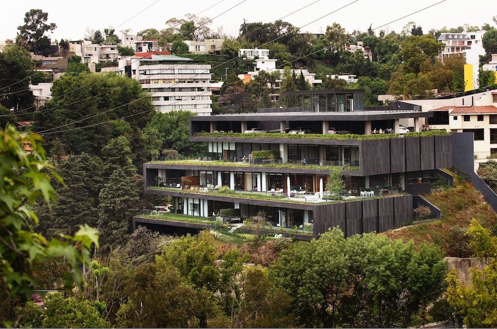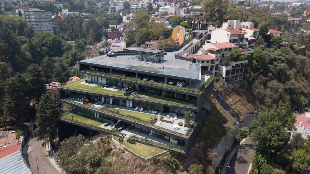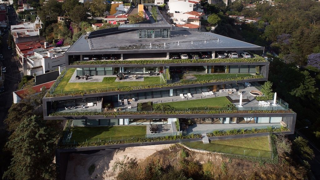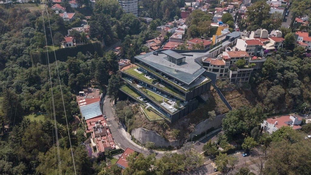 Designed by Sordo Madaleno Arquitectos, the Alcazar De Toledo luxury residential project enjoys a privileged location in Mexico City and peerless natural surroundings. The site has a very rugged topography so it was decided to integrate as far as possible the architecture to these natural formations, with the aim of respecting the environment and exploiting the extraordinary panoramic views of the city that can be seen between the vegetation.