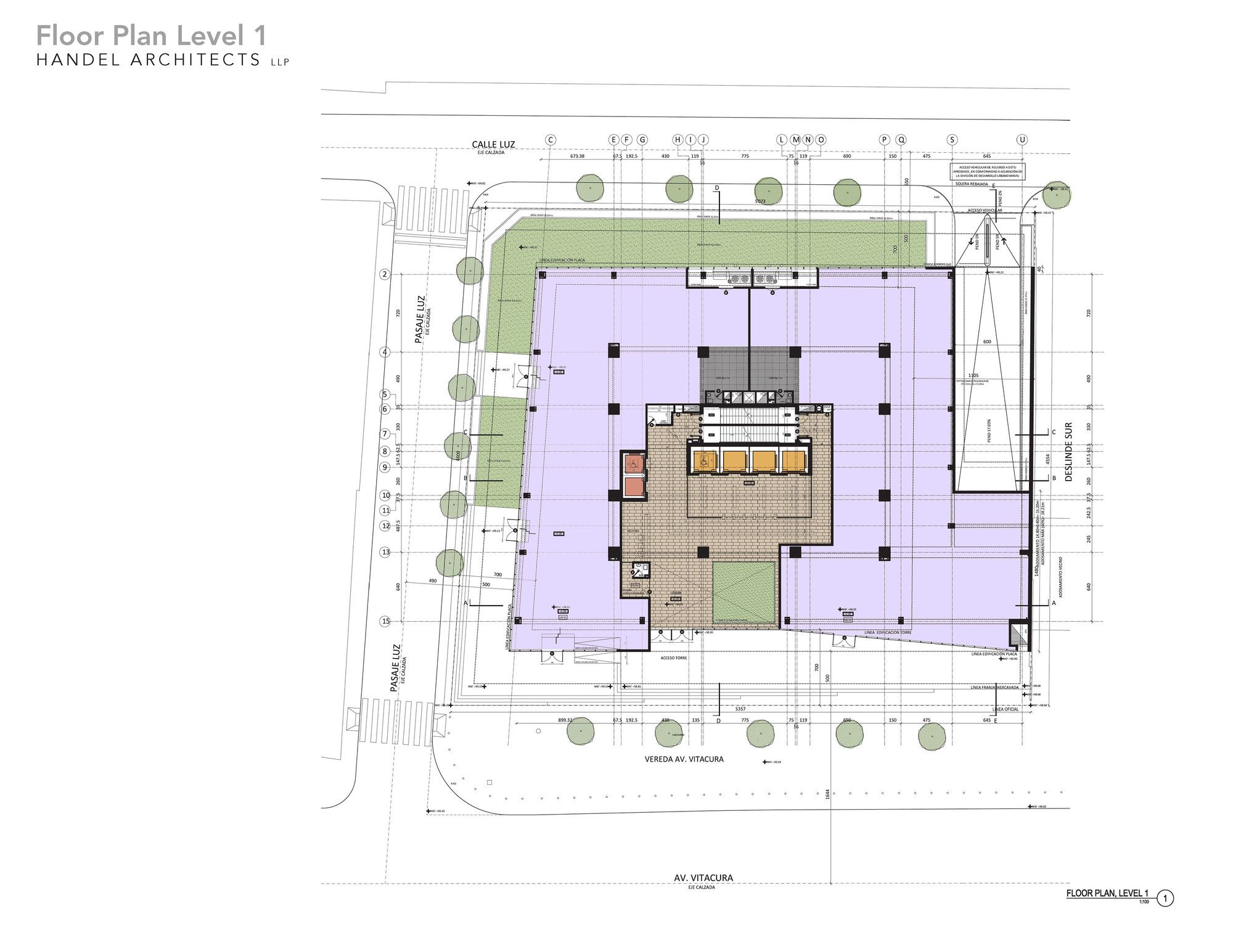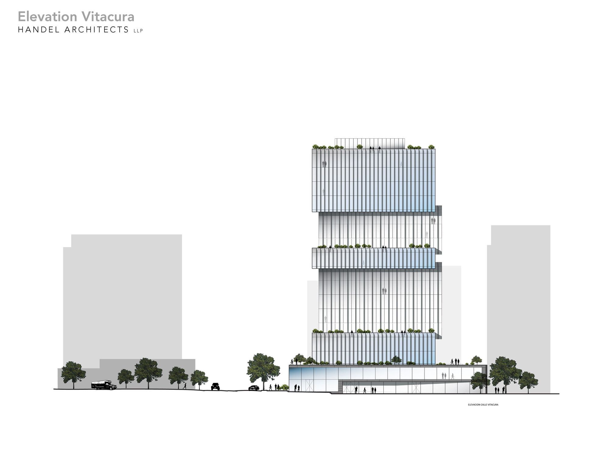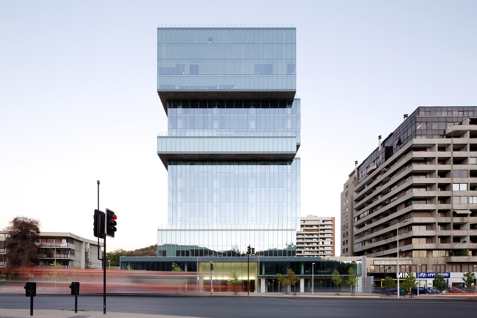 Designed by Handel Architects, Alto El Golf is a 312,000 sq. ft. (29,000 m²) office building, recently completed in the El Golf section of Santiago. For this project, we strove to rethink the standard office typology. Santiago has a mild climate and the Chileans embrace nature and the outdoors. In addition, the site is surrounded by streets on three of its sides, generating an idle condition with ideal sun and visual exposures.