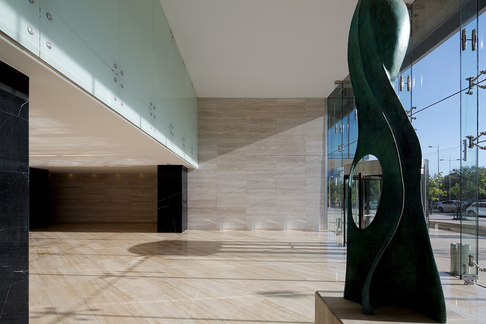 The fenestration on the glass wall is delineated in a very contemporary expression of vertical fins on two varying rhythmic patterns, creating visual interest across the pattern. Alto El Golf is certified LEED Silver by the USGBC.