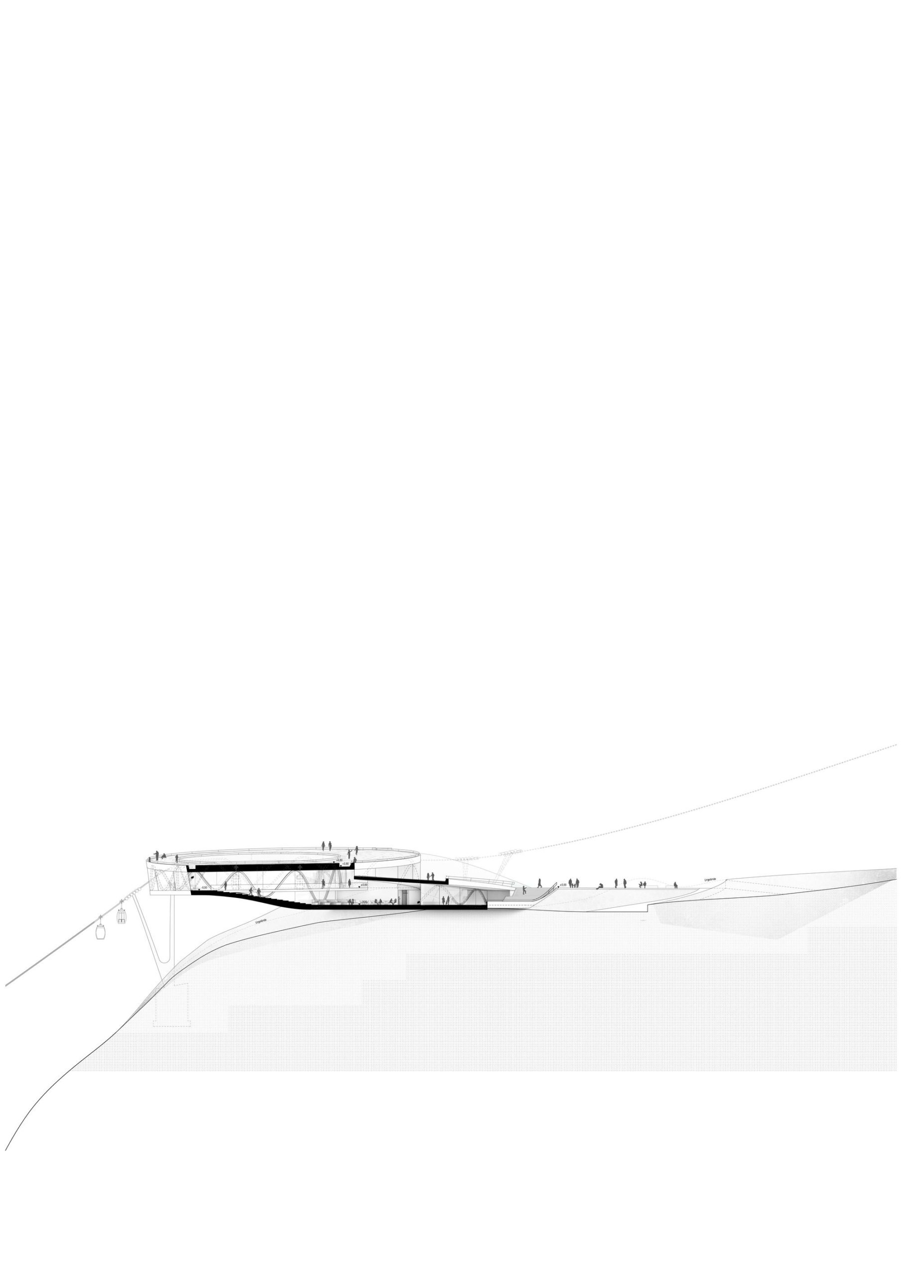 “The base station is only four minutes from the city centre, so you can go from the centre of town to the top of a mountain in about five minutes – a really quick trip”, Patrick Lüth, a partner at Snøhetta. “We don’t want people to linger at the base. It’s really just for take-off“.