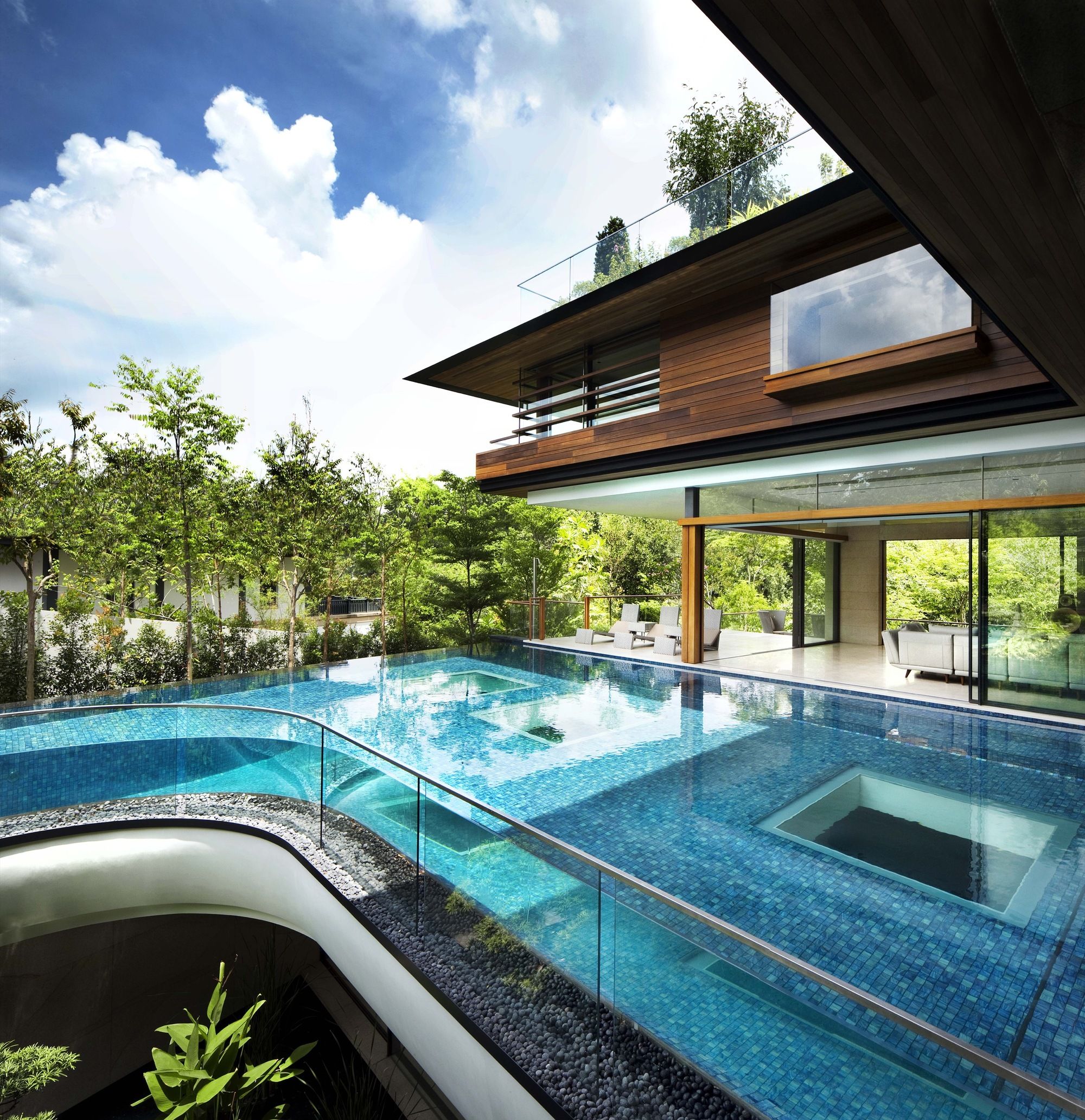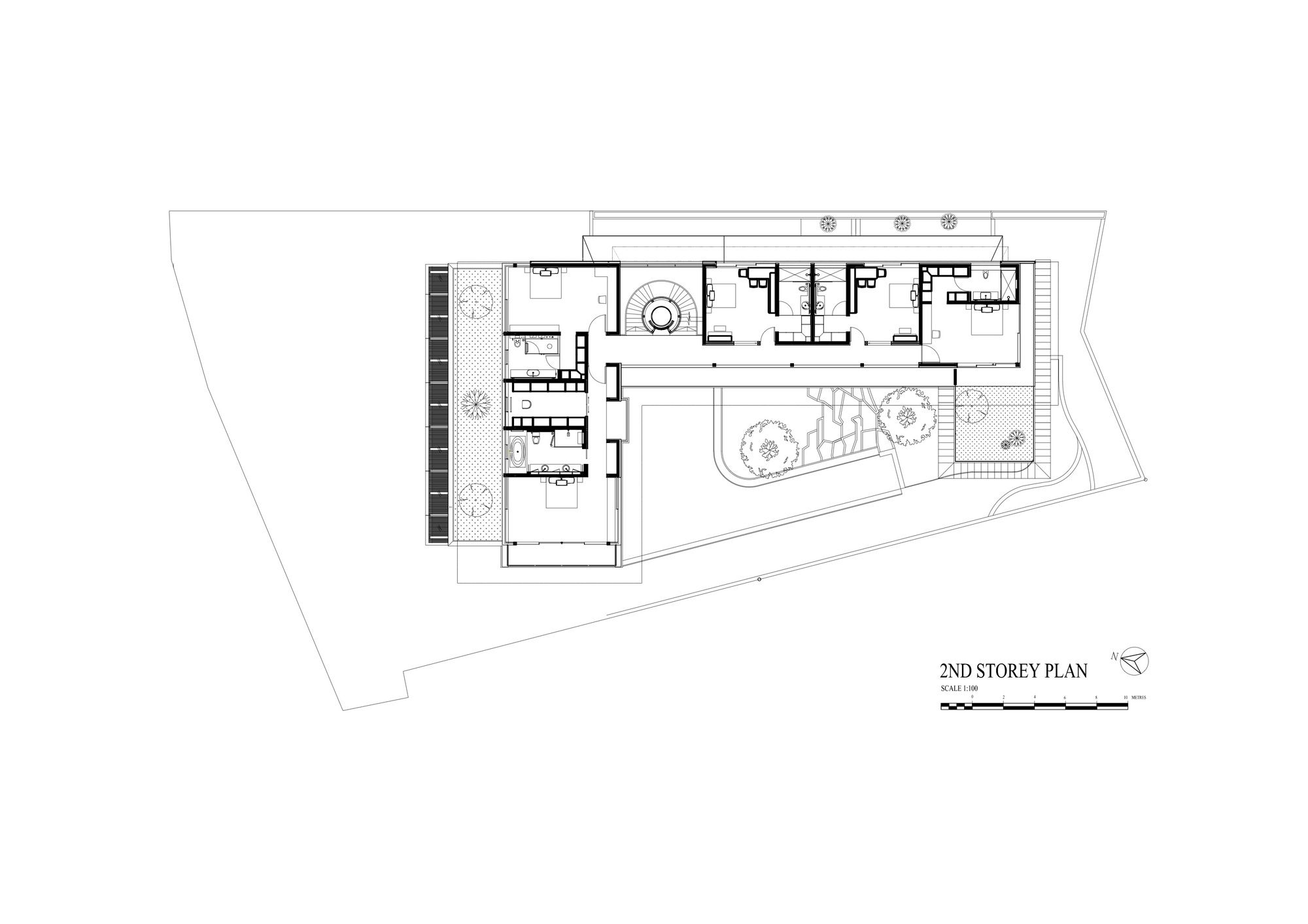 Feng Shui also played a major role in determining elements of the design, such as the round lift and angling of the front door. The site sits on the busy Cluny Road facing the entrance to the botanic gardens. From the road, the site sloped up steeply to a platform level many meters above road level. Vehicular access to the site was therefore difficult and was a major determinant on the design.