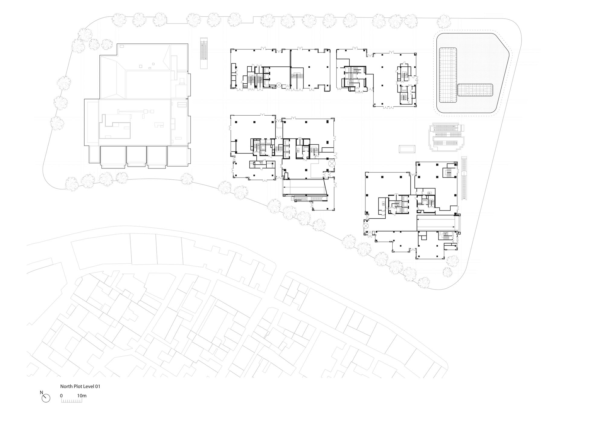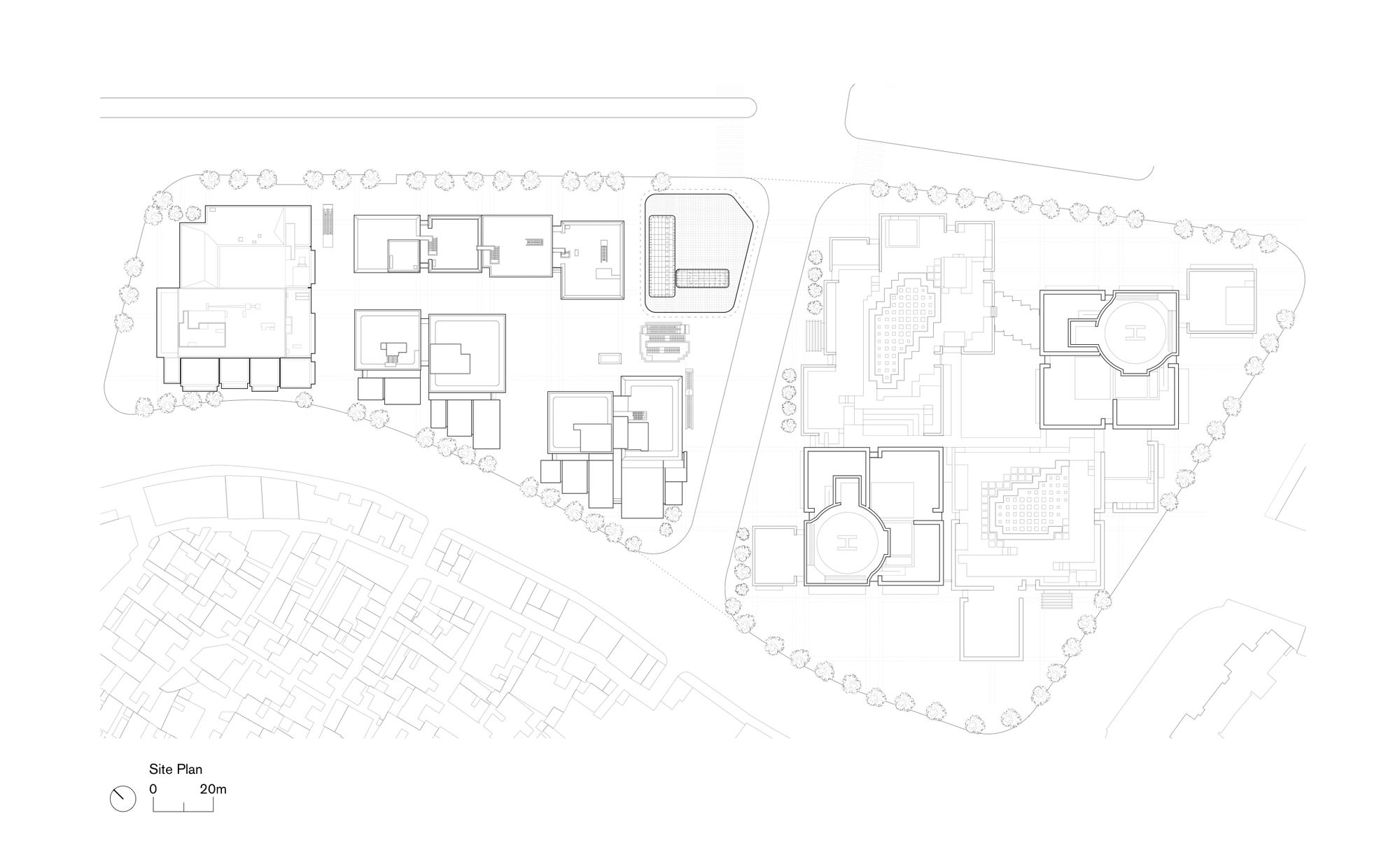 Inspired by this urban context, two 180-metre landmark towers are placed in the south of the site, while the buildings facing the waterfront are staggered in height and relate in scale and rhythm to the grand nineteenth-century landmarks along the Bund. At the heart of the scheme is a flexible arts and cultural centre, home to the Fosun Foundation, which combines exhibition and events halls with a performance venue, inspired by the open stages of traditional Chinese theatres.