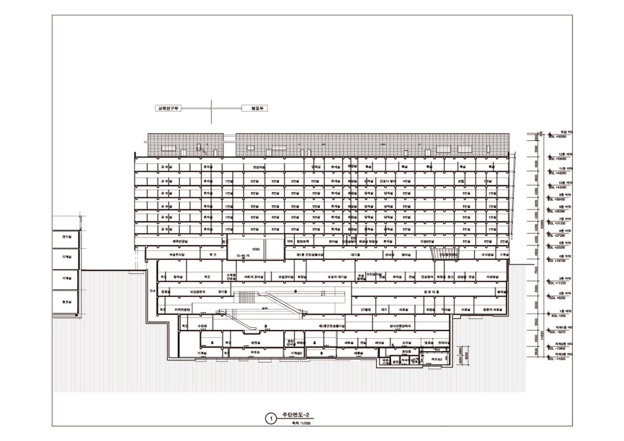 Then, the layout alternative with the shape of the land was finally confirmed as the last proposal. If the layout causes inconvenience, it will result in fundamental restrictions that cannot be overcome even though the building has a good direction or other conditions are satisfied. The new building of Bundang Seoul National University Hospital starts from the premise that the relation with the existing building will be set up and the issue of the western ward will be solved.