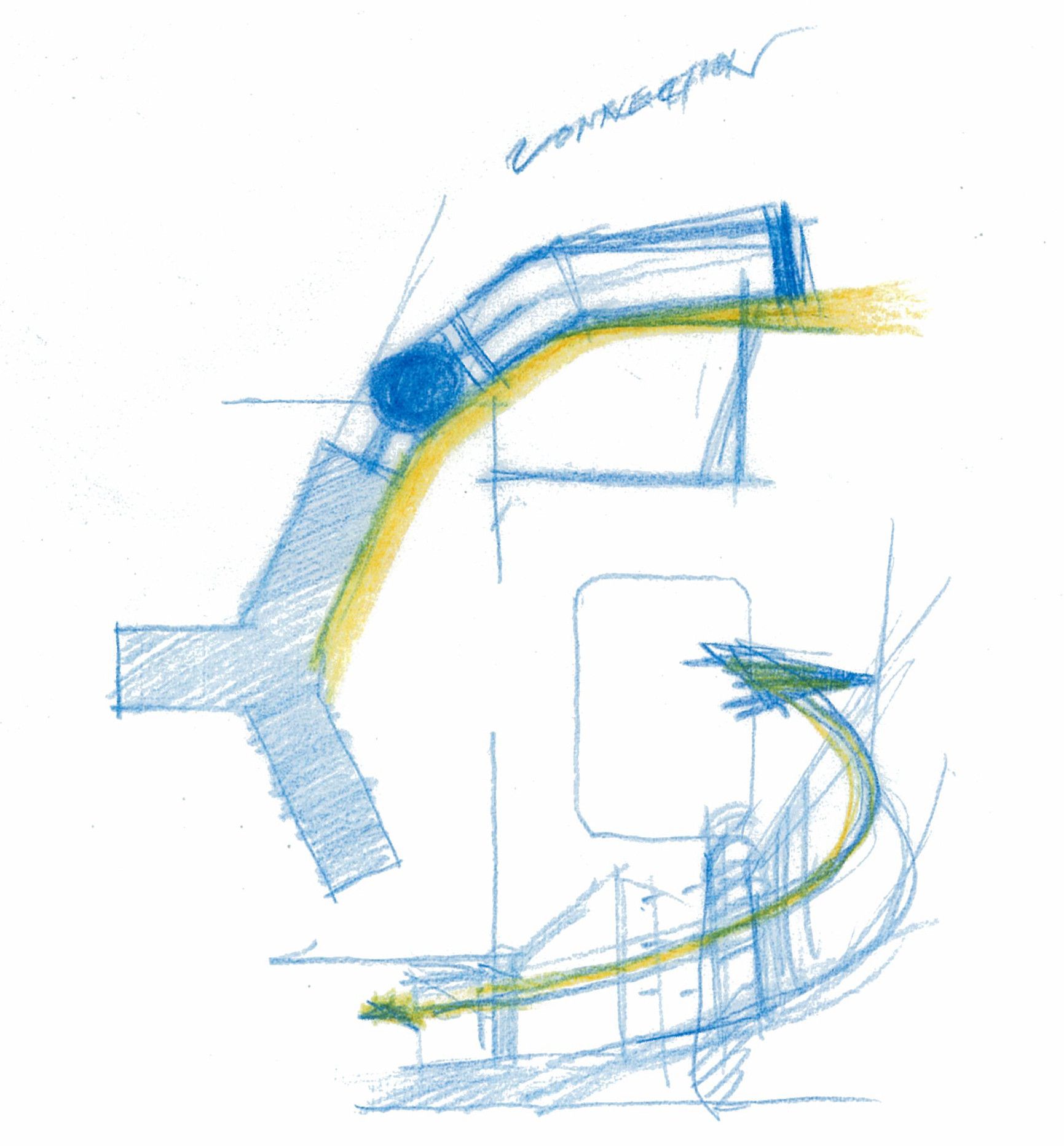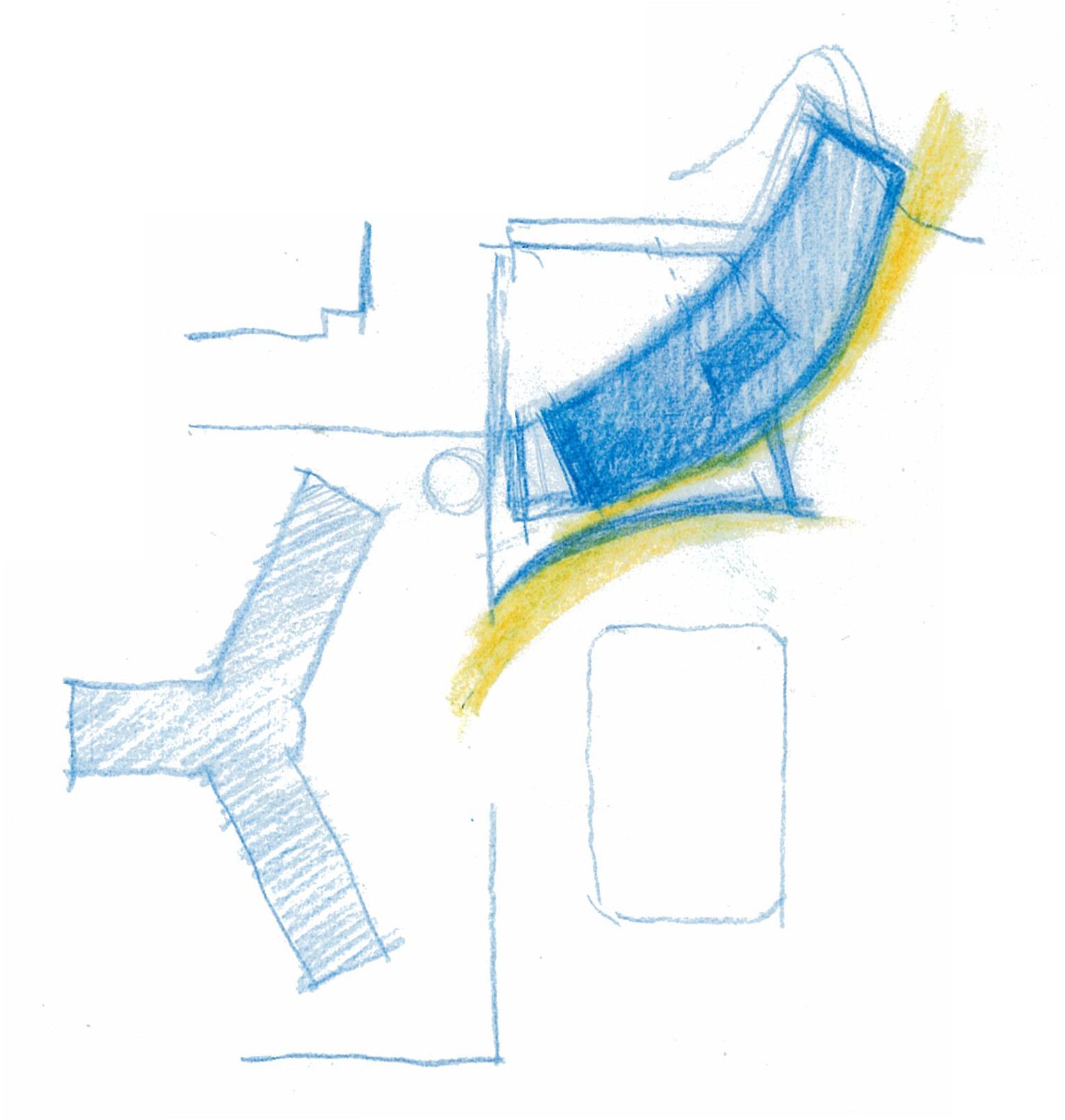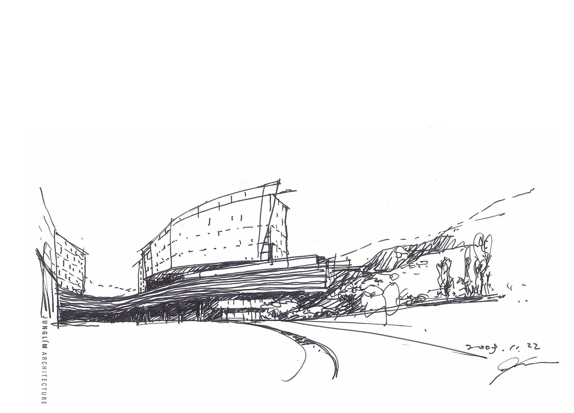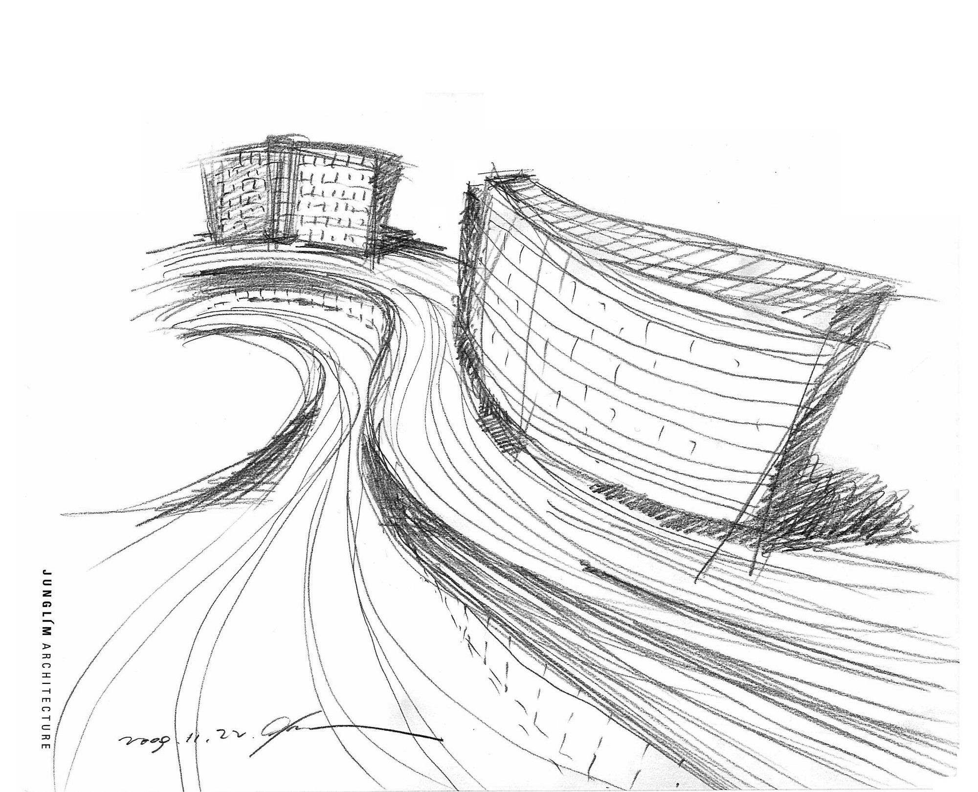 The lower floor’s outdoor transition zone of the new building keeps the overall sense of unity with the shape and image connected with the main building. For the new lobby, a drop-off zone with enough length for convenient loading has been designed, and a curved form is planned to form a connection to the main building’s lobby.
