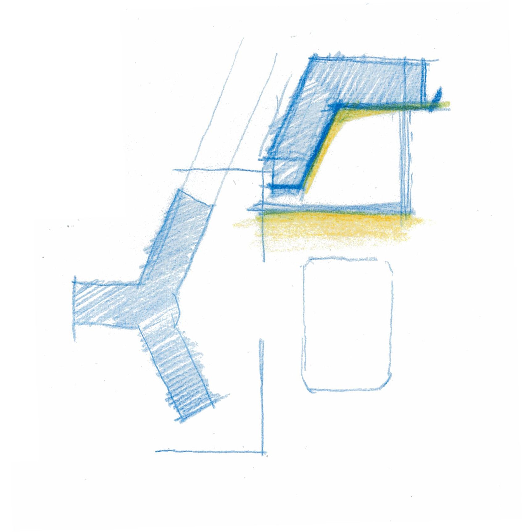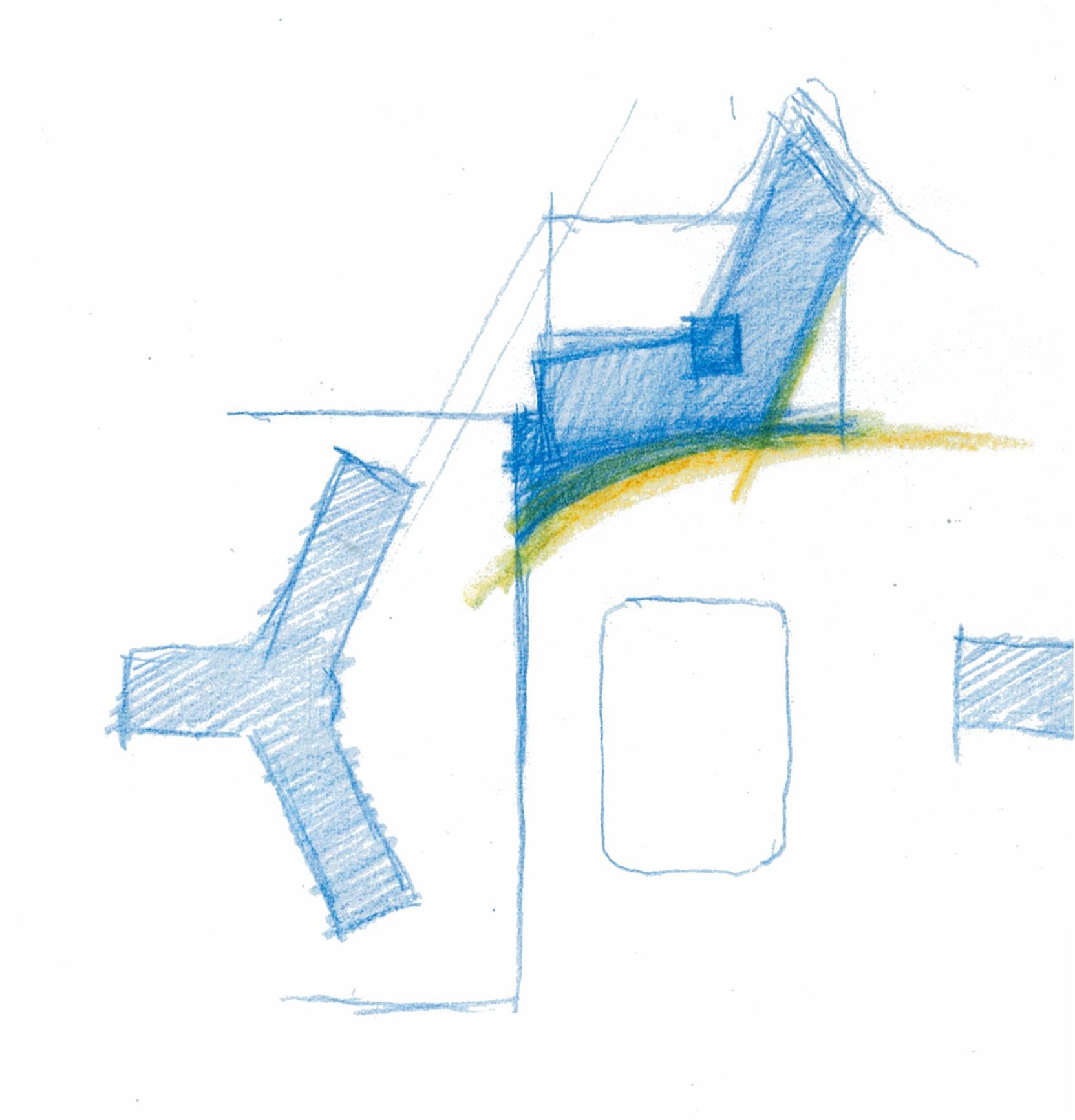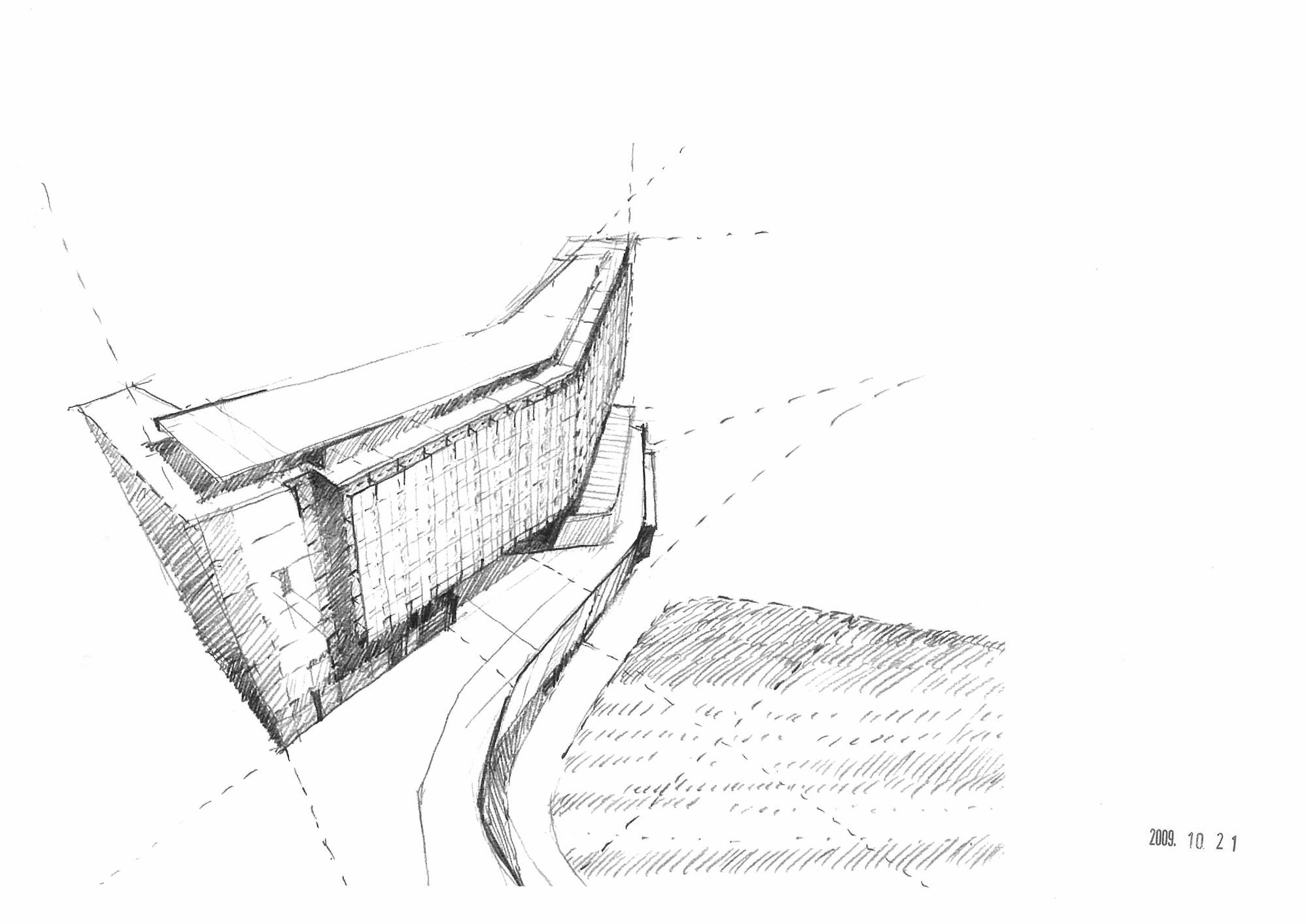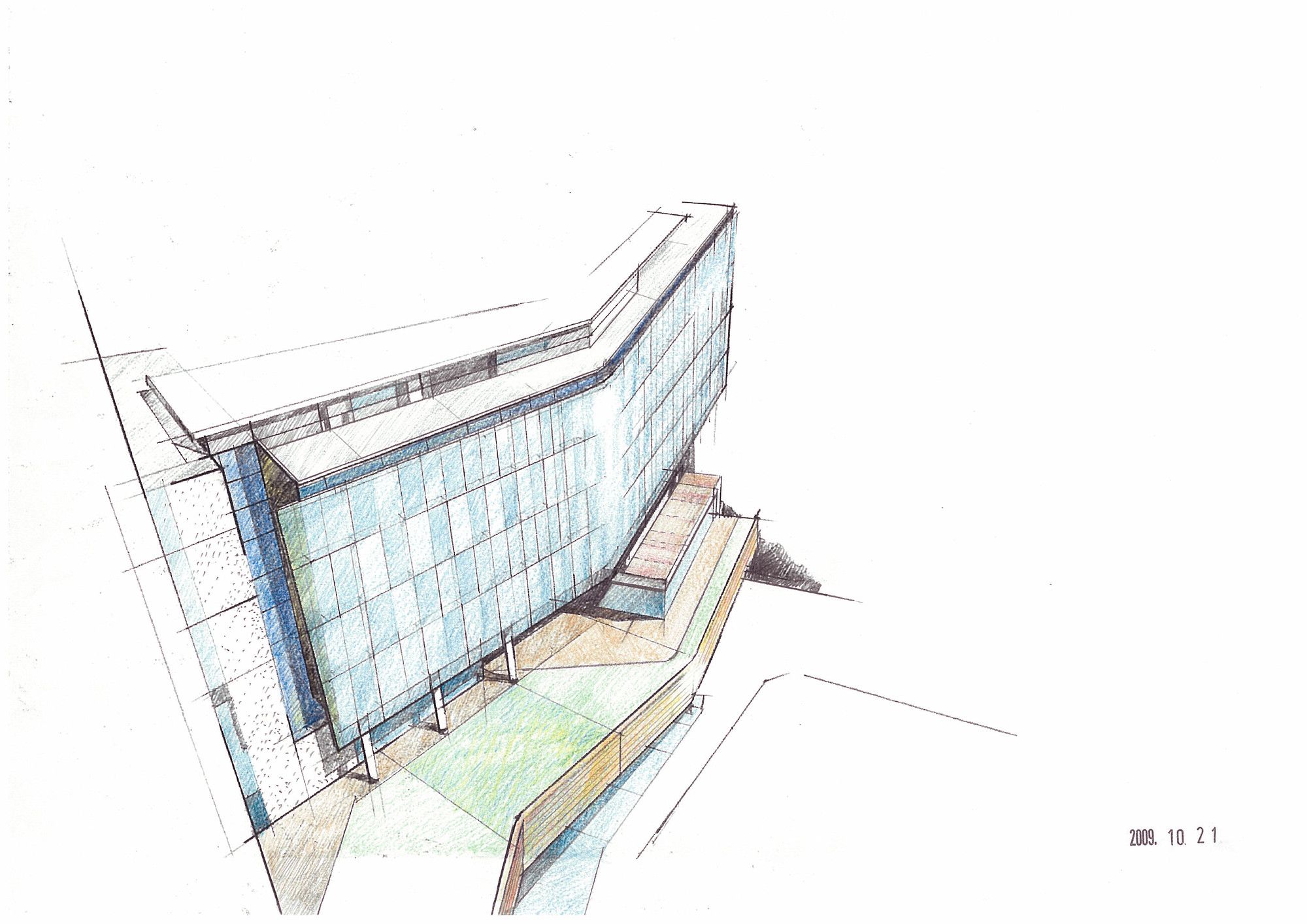 The upper floor’s ward should have an advanced image of the future andexpress the new hospital’s image. However, because it is placed at the entrance, it is likely to impede the main building’s representation and to deter the hospital’s awareness. Therefore, we designed it with the shape of going back gradually by approach line in order to minimize the visual interference with the main building. We also made the layout along the outdoor transition zone flow and tried to maintain the independence of each by properly separating from the main building’s wards.