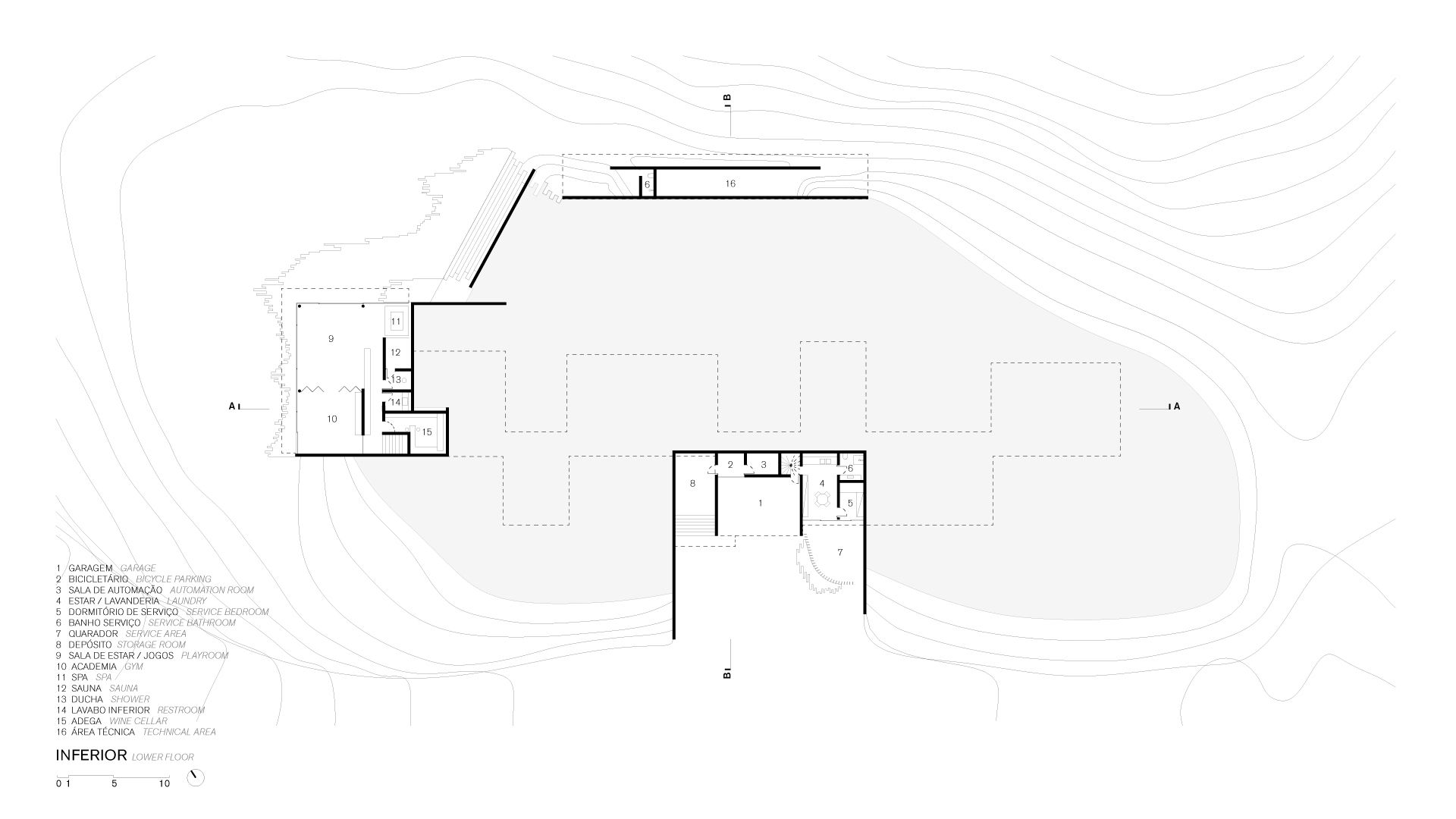 Casa Terra arises from the intercalation of parallel walls made of pigmented concrete that are perpendicular to its central circulation axis. The articulation between these components generates spaces while defining residential functions and creating patios that open to the main garden.