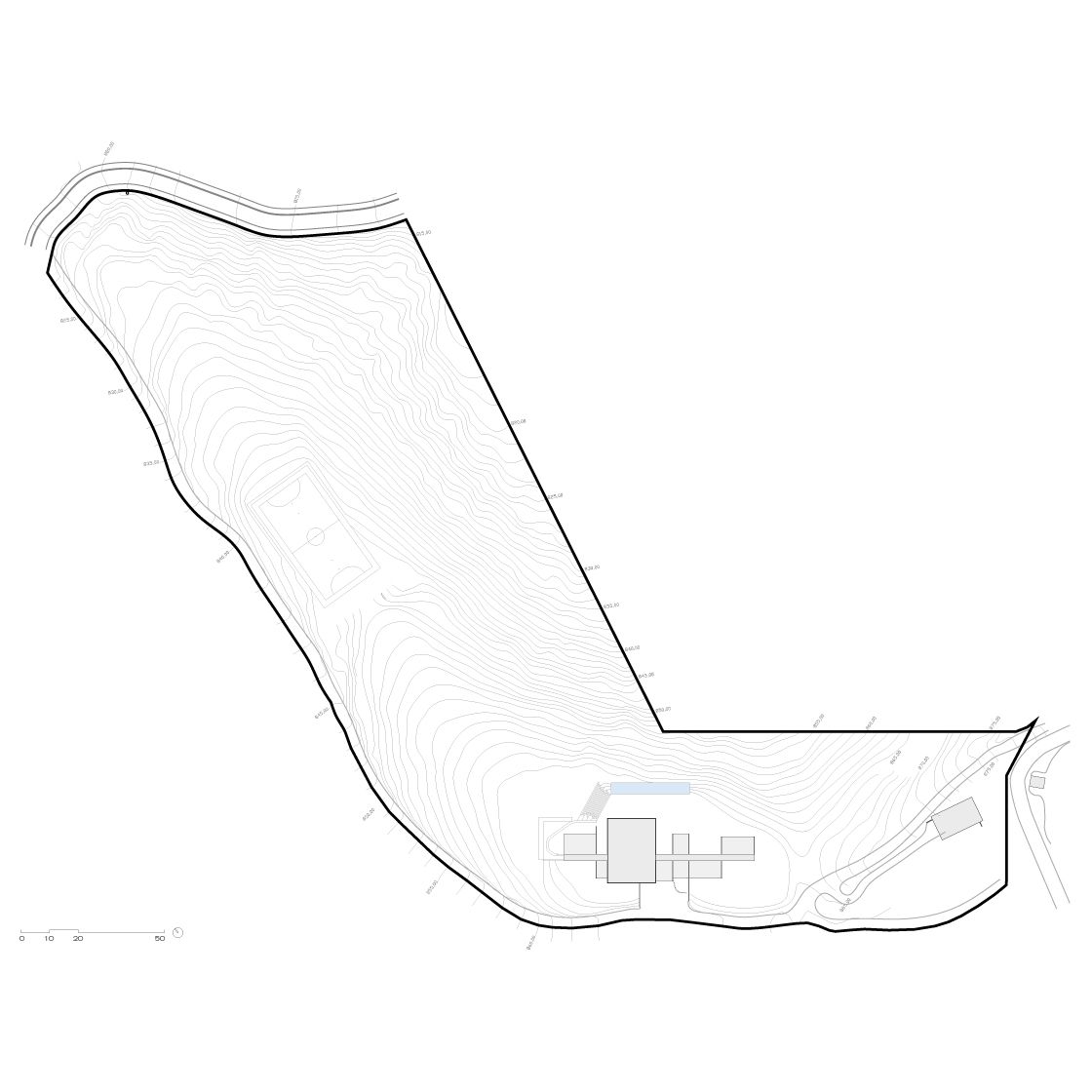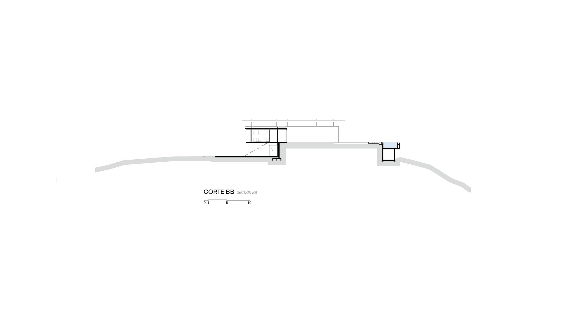 The closure between the vertical (walls) and horizontal (slabs and floor) planes is made with large glass panels that dilute the visual boundaries between the house and the landscape.