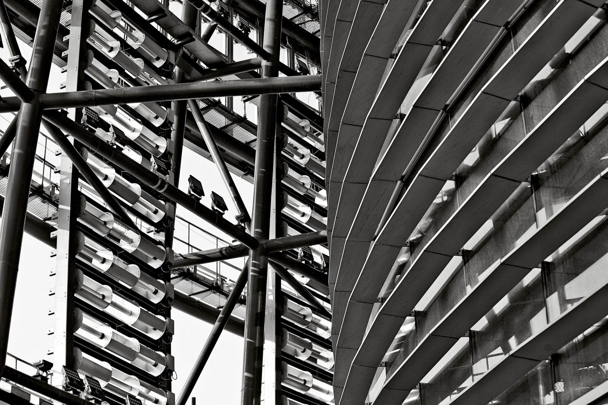It is modeled by tapering the ground horizontal profile with the upper one, which resulted in a right circular cone. The taper operation supported the function of the building. The wide lower profile afforded wide spans for the market and offices, whereas the slender upper plans provided short spans for the hotel.