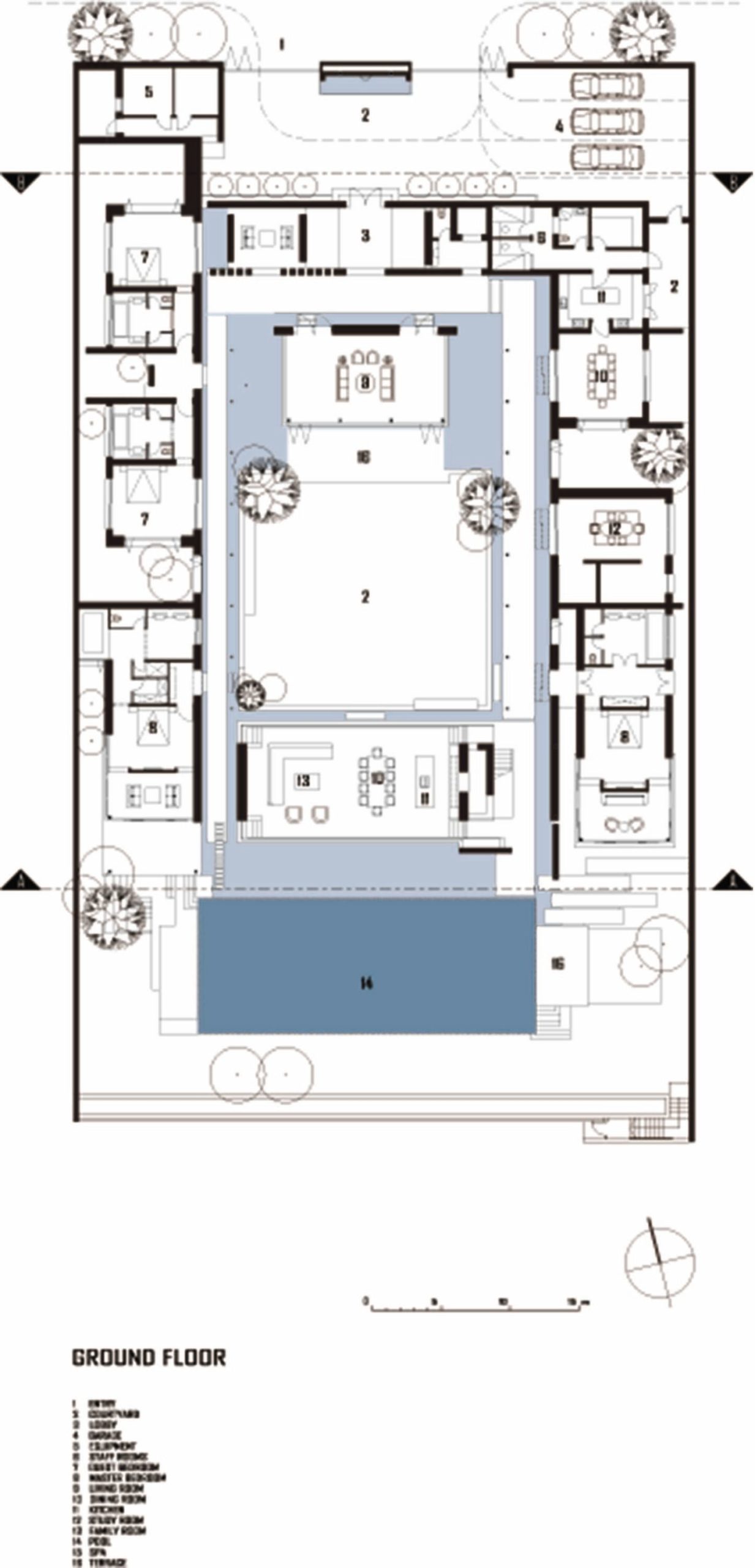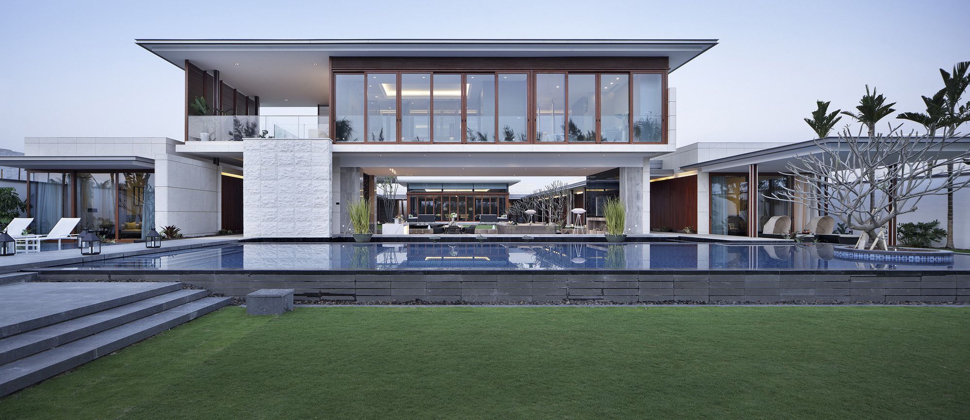 The villas are built in the transparent structure; the grey space blurs the boundary of the building itself, interior space, the landscape, and curtain walls. By taking this advantage, architects ‘intrudes ’the area which is outside the architecture for substantial trans-boundary design or design orientation relying on the consultant team. The integrated design experimentation is a brand new experience for the whole team, which is also a small step towards “refined design” in architecture. The two villas share a similar configuration standard. In the entrance, you’ll see a ceremonial front yard with a garage for two cars. Owners of each house have their separate living room, dining room, family room, Chinese and western kitchens, at least five suite bedrooms (including a luxurious master bedroom on the second floor) as well as studies and etc. The designers ensure at least four rooms mentioned above have a sea-view. Many semi-outdoor platform terraces facing the ocean are created out of building eaves and stilt, serving as functional expansions of the indoor spaces. The service spaces with their independent entrances and exits together with the service circulation are separated from the host area. In addition, each villa is equipped with a swimming pool, SPA pool, and garden.