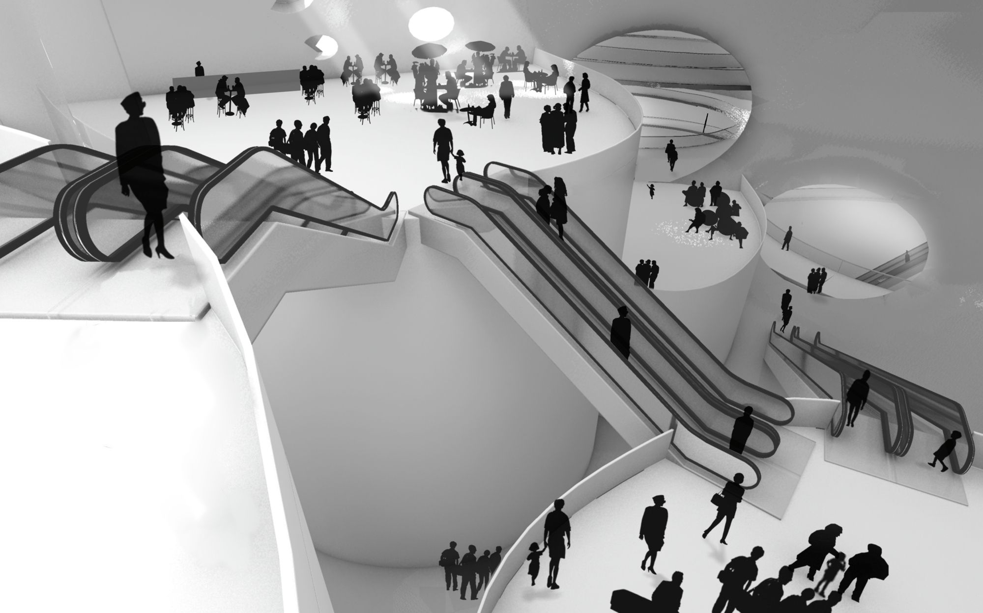 Comics and animations have long been considered a form of entertainment for the younger generations but develop more and more into a sophisticated art form. The initiative for a museum especially for this relatively recent art form creates a platform which will unite the worlds of art and entertainment. By using one of the cartoon’s prime characteristics – the speech balloon – the building will instantly be recognized as place for cartoons, comics and animations. The neutral speech balloon becomes 3d.