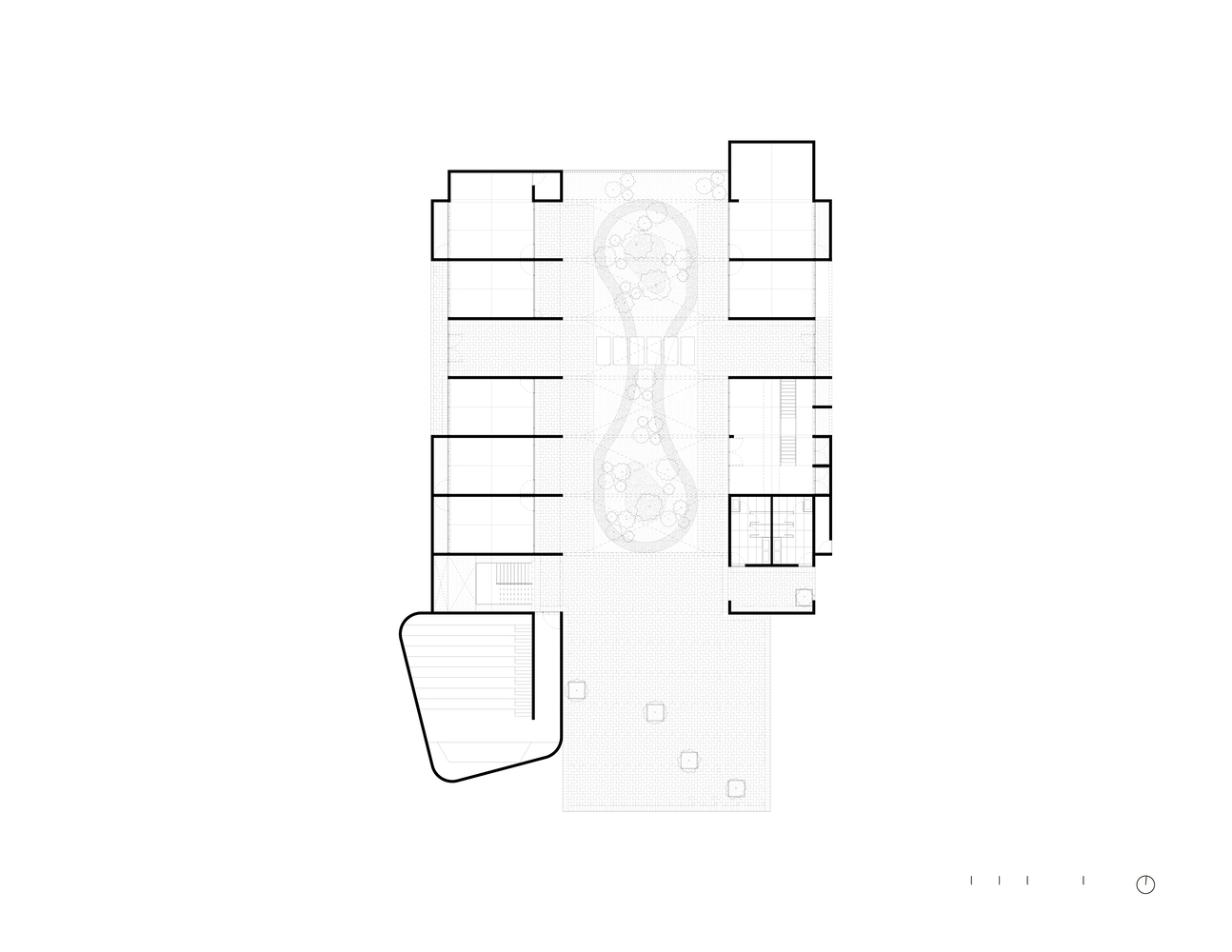 The gaps in the concrete panels create necessary spaces for an indoor garden, which forms a peaceful urban retreat with a pleasant microclimate. The main garden is the central feature of the building, a vibrant area that provides beautiful views from inside the structure.