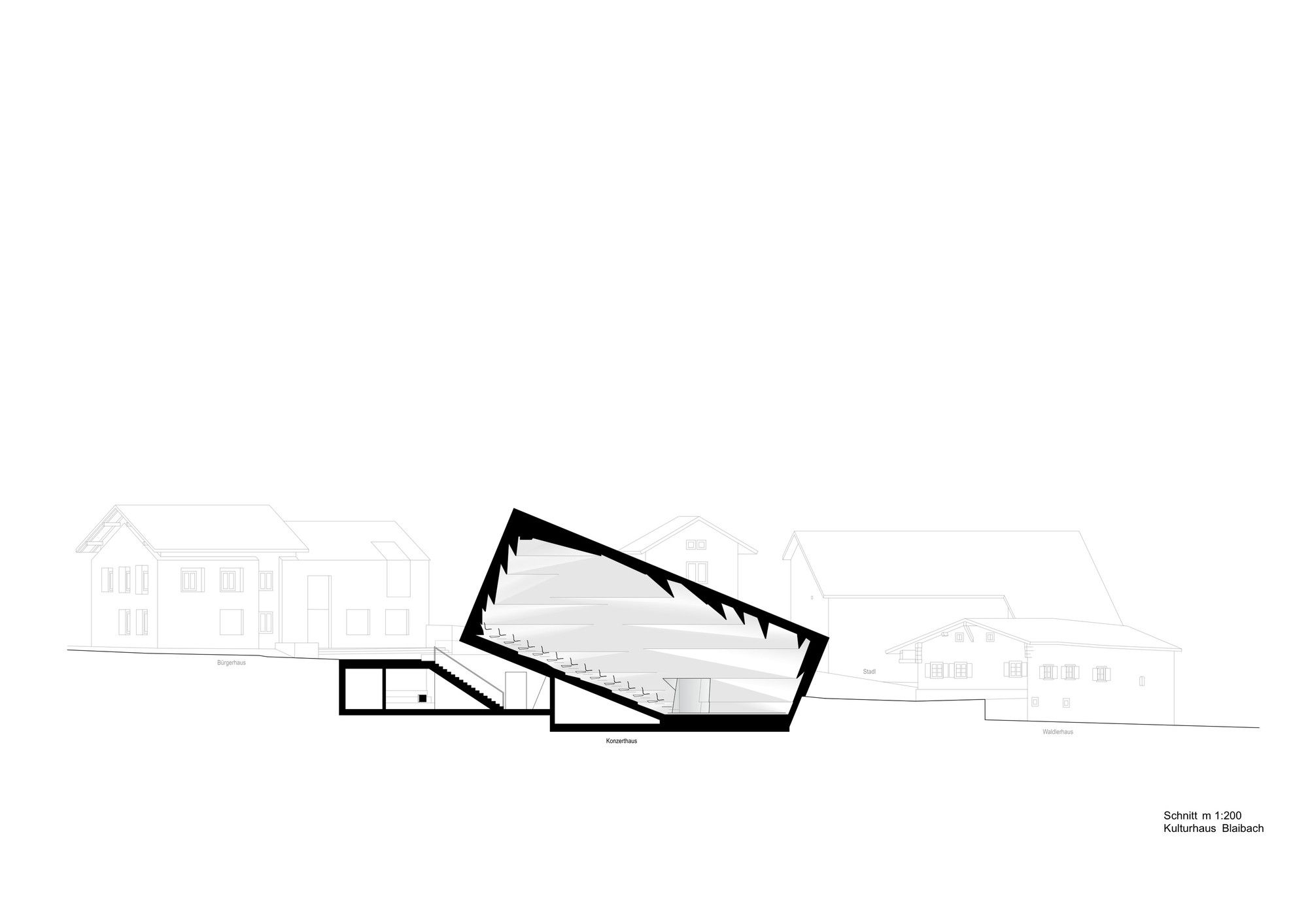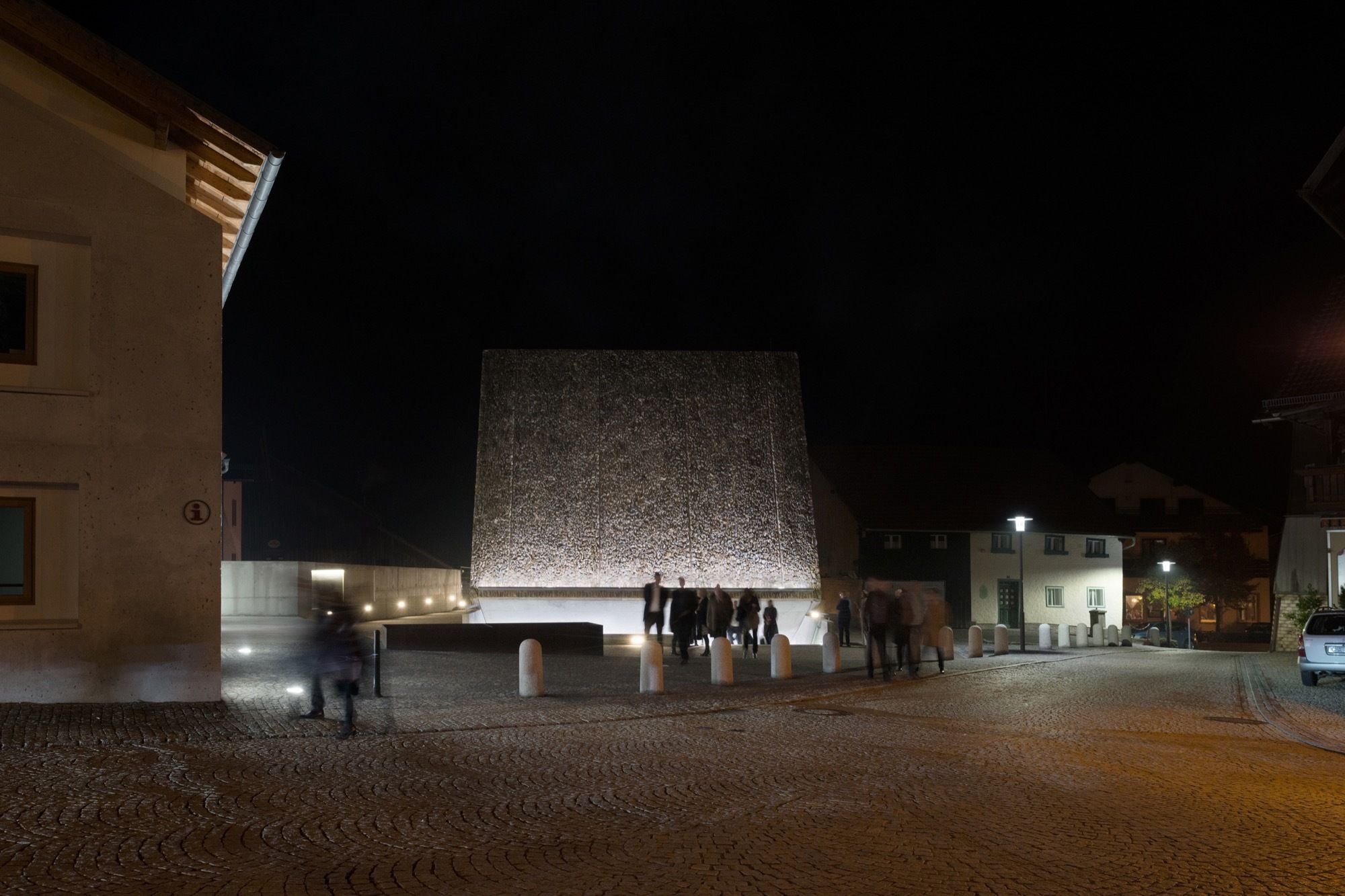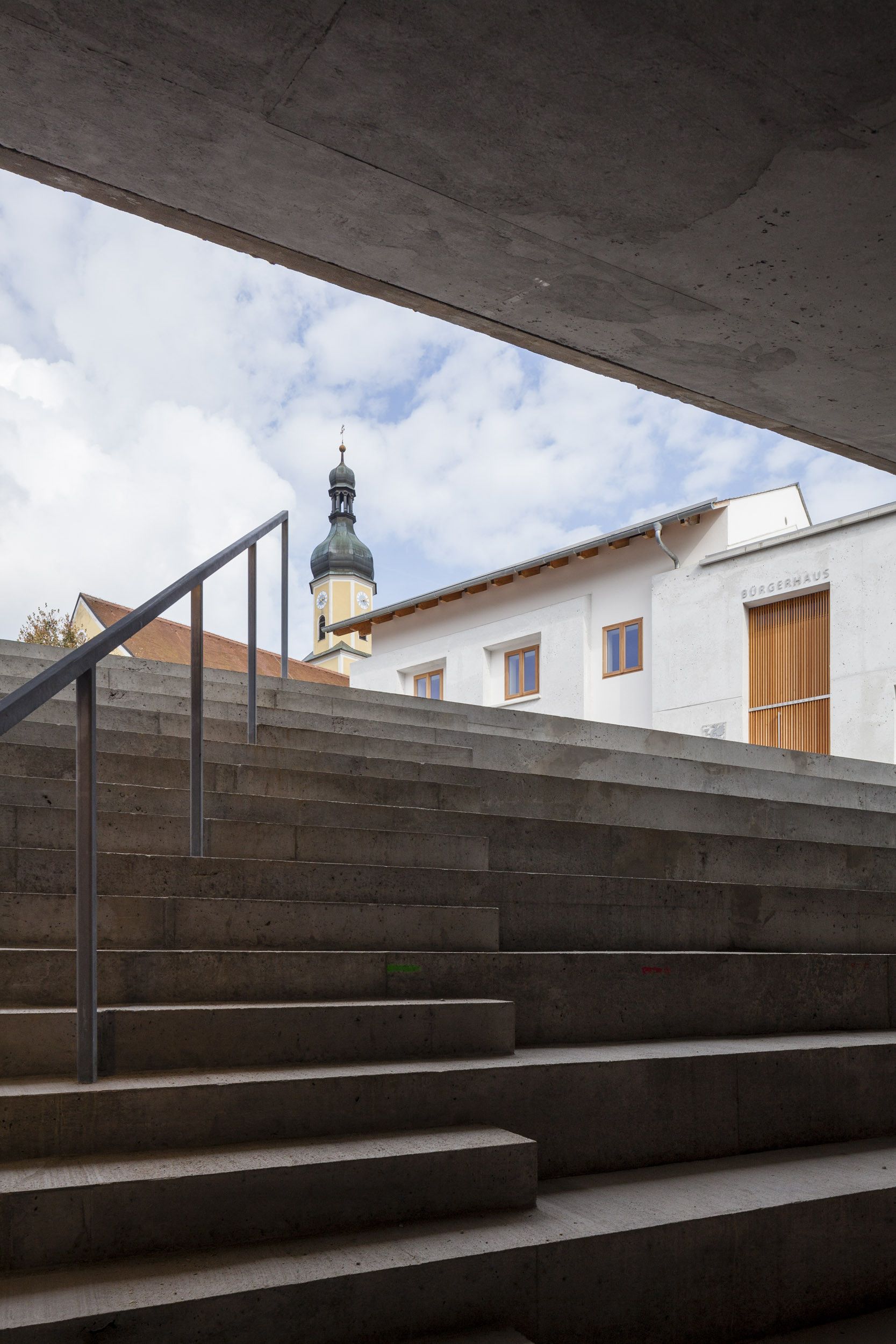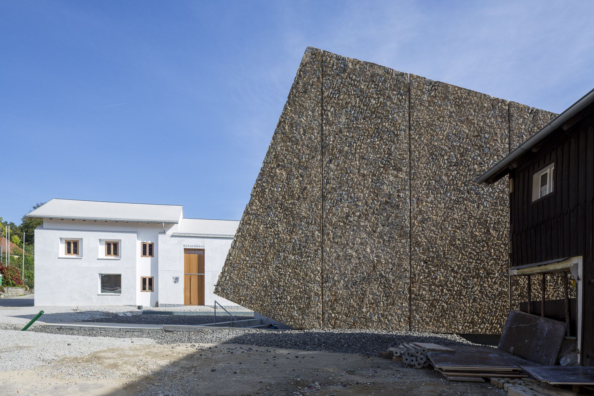 Designed by Peter haimerl.architektur, The concert hall represents the heart of the urban development to revitalize the new center of Blaibach. It is located next to the new community center and complements the space of a new village square that was realized with funds of the state urban development support. The concert hall is a solitaire of concrete with an inclination above the slope in the village center following the topography and linking with its granite facade to the stone carver tradition of Bailbach.