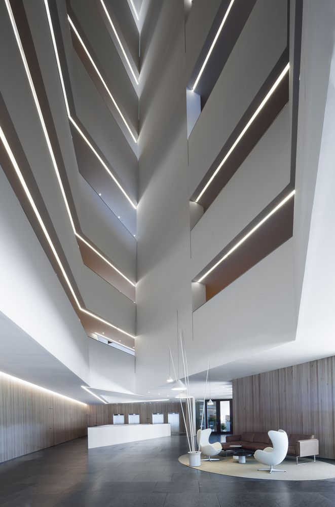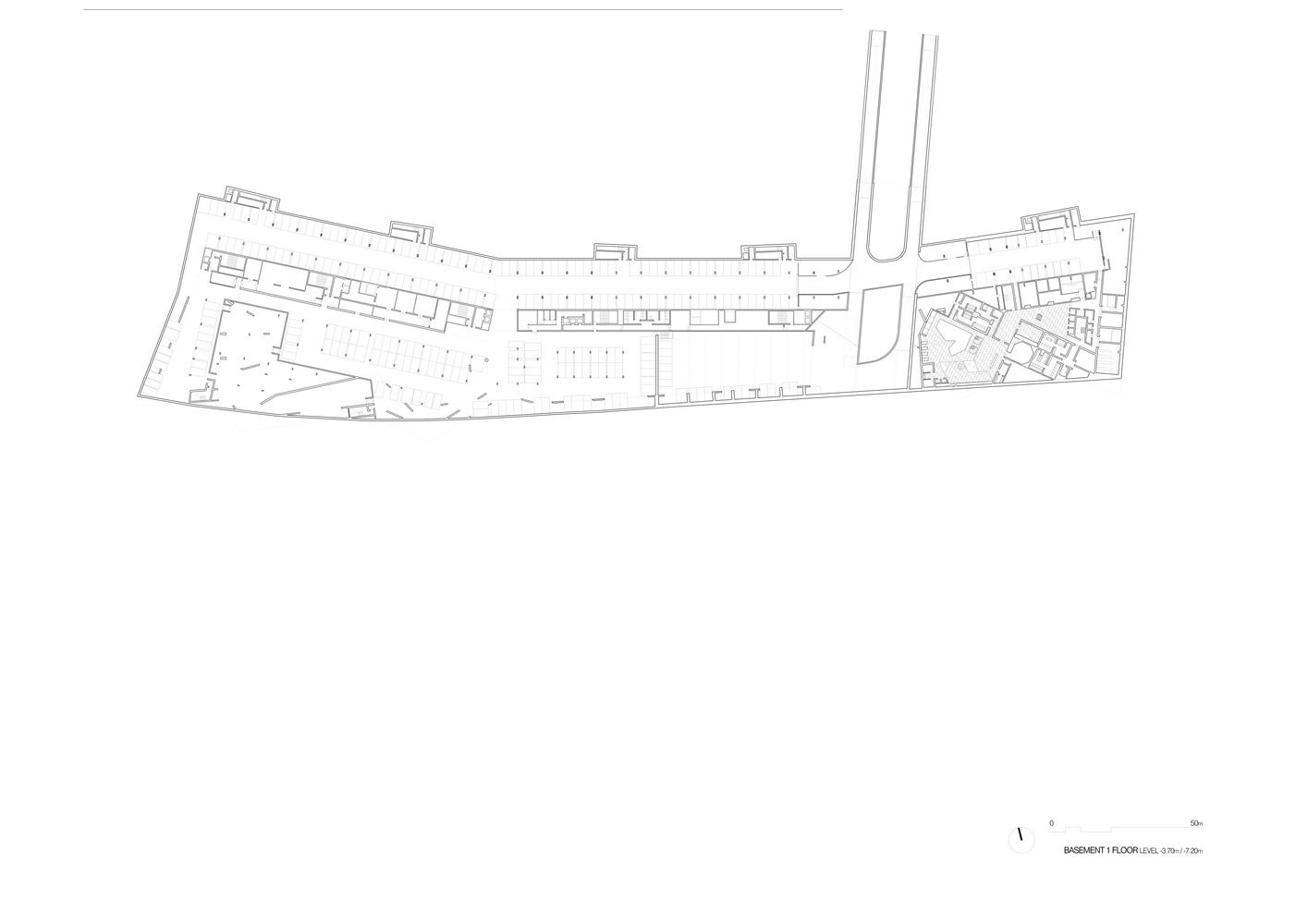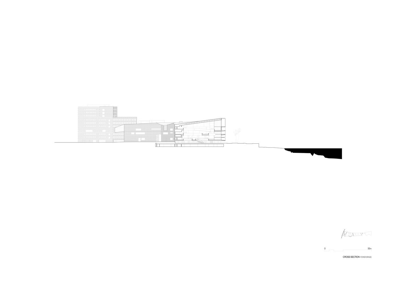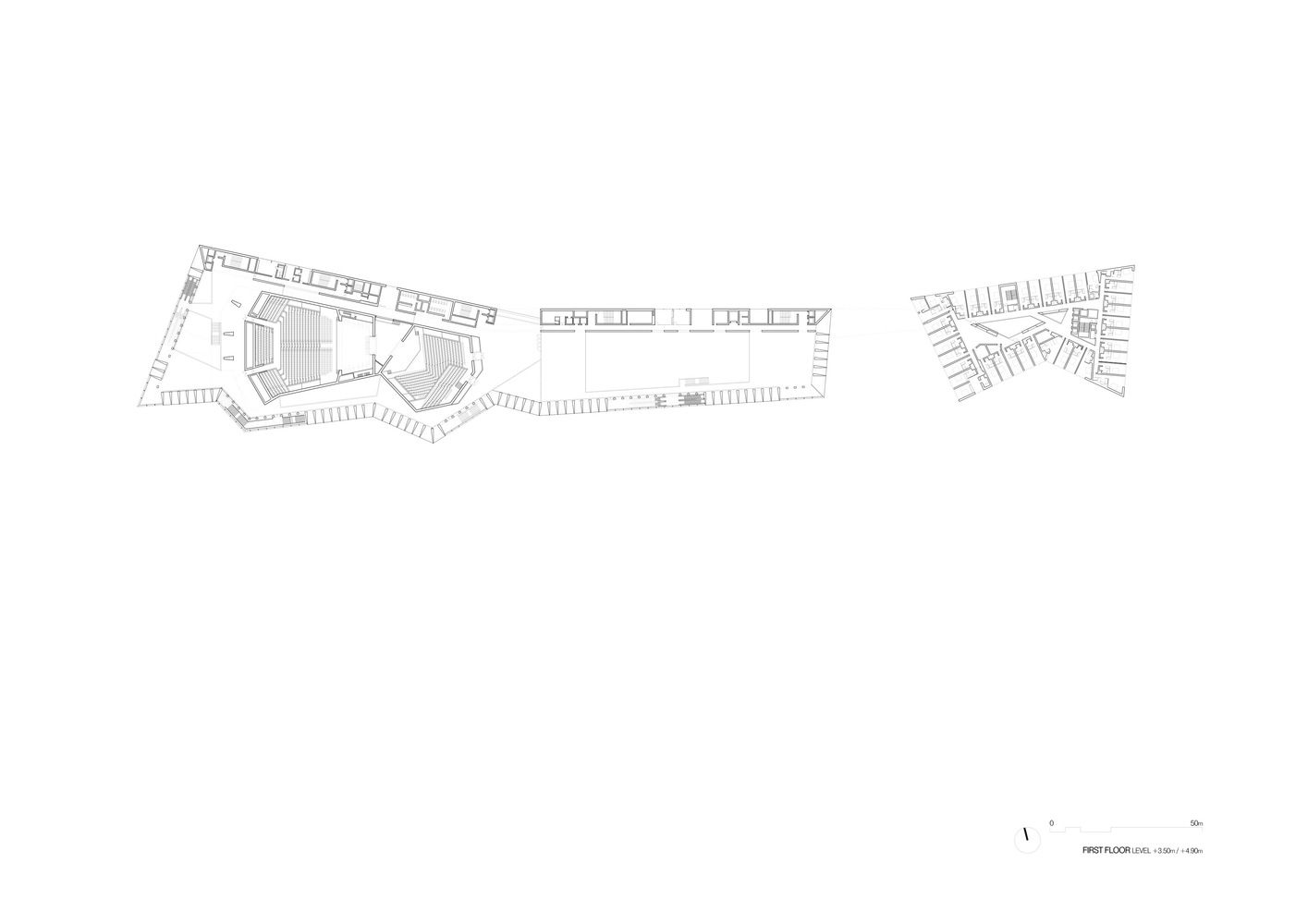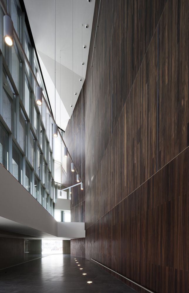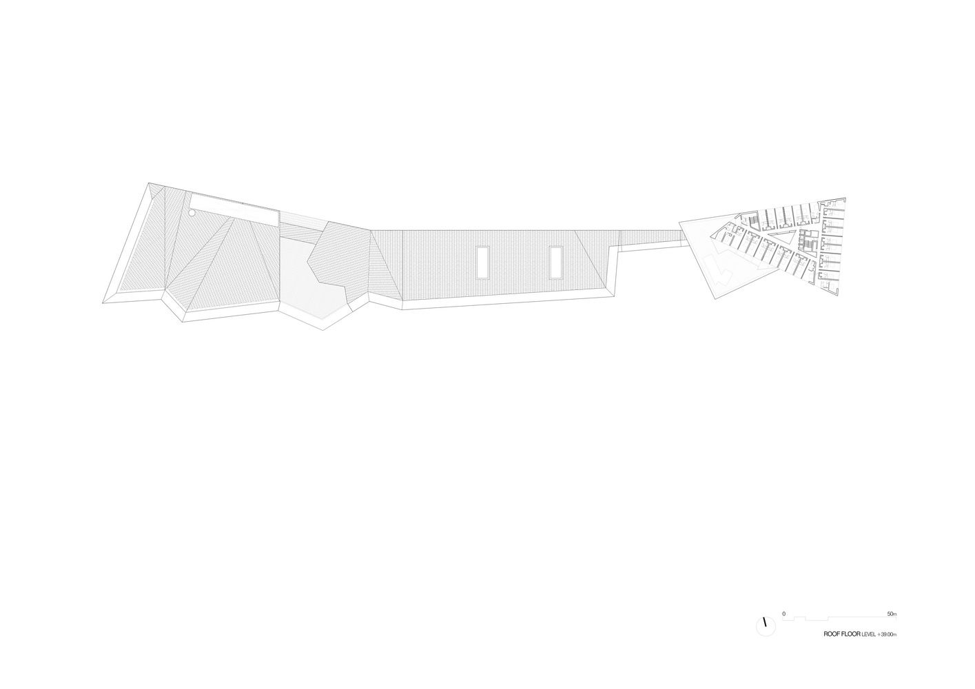The ‘alter ego’ is the north facade, whose thickness is formed by the building’s more ‘server’ spaces. The result is a comb-shaped double scheme: in functional terms, public to the south and private to the north. Inside, different congress and exhibition halls follow one another. These are large but volumetrically expressive spaces, with voids around them that have hanging platforms and catwalks for looking out to the exterior.
