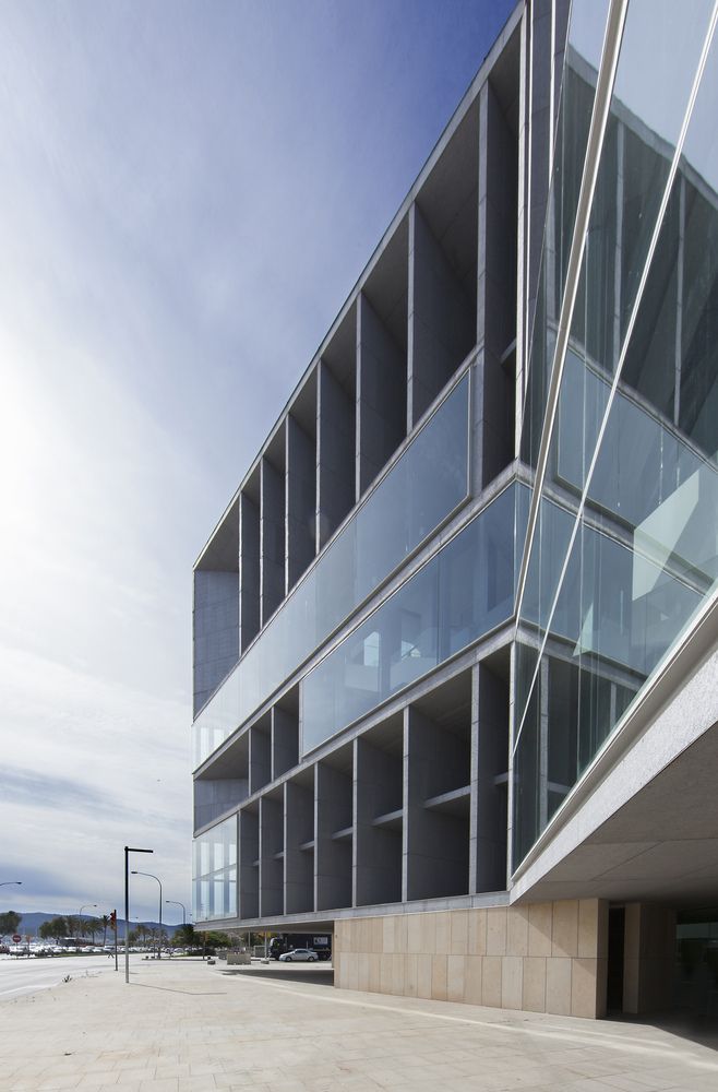 Designed by Francisco Mangado, Congress Palace and Hotel in Palma de Mallorca rests on the idea that to work on a lot that is rich and suggestive in its being difficult, such as the one we have here, is to draw up a new urban ‘outline’ for the city. The irregular geometry of the narrow and elongated lot, forming a seafront of nearly 350 meters, refers more to the idea of an urban boundary of huge dimensions that must accommodate a major project with a complex and diverse program.