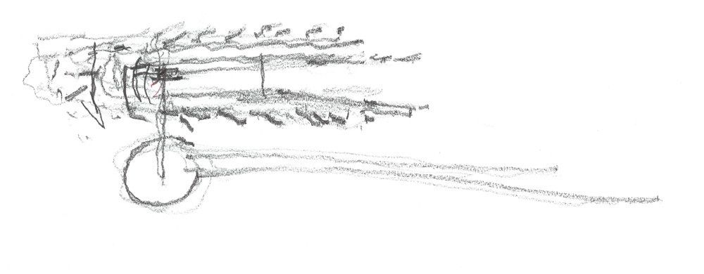 The chimney and the great curved stair wall are clad in copper, reminiscent of the region’s mining heritage, while the base of the building is locally quarried quartzite. The wood cladding was thermo-treated for increased weather resistance and is finished in Falu rödfärg, a traditional Swedish black paint typically used on cottages and agrarian structures.