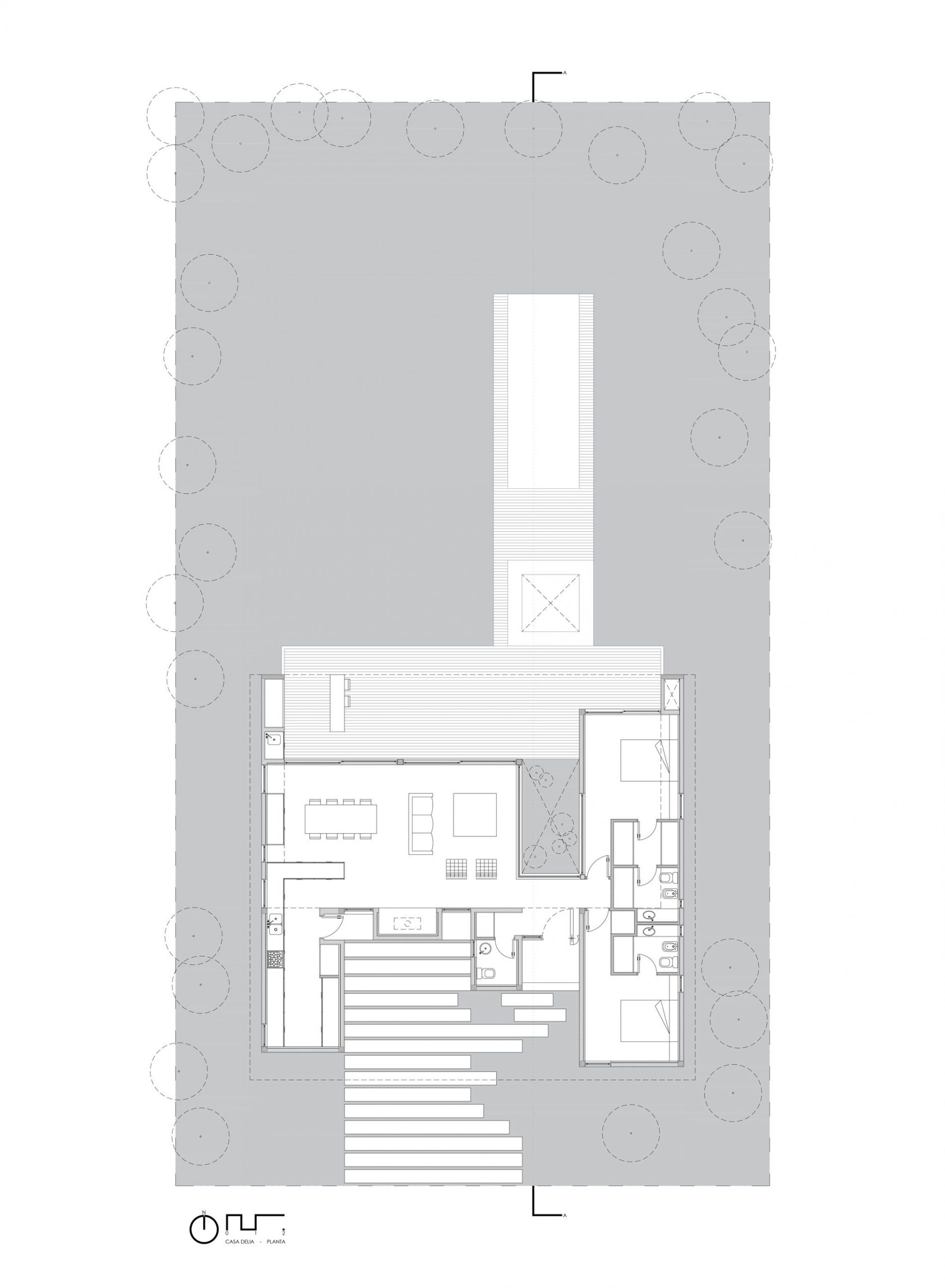 The Delia house, located in a closed neighborhood of Moreno, Buenos Aires; designed to respond to physical and symbolic needs raised in the order. Physical necessity, a flexible and open space where one person lives and at the same time has the duality of constantly hosting many guests. Symbolic necessity, a rich space in terms of a sensitive and reflective dwelling for Delia.
