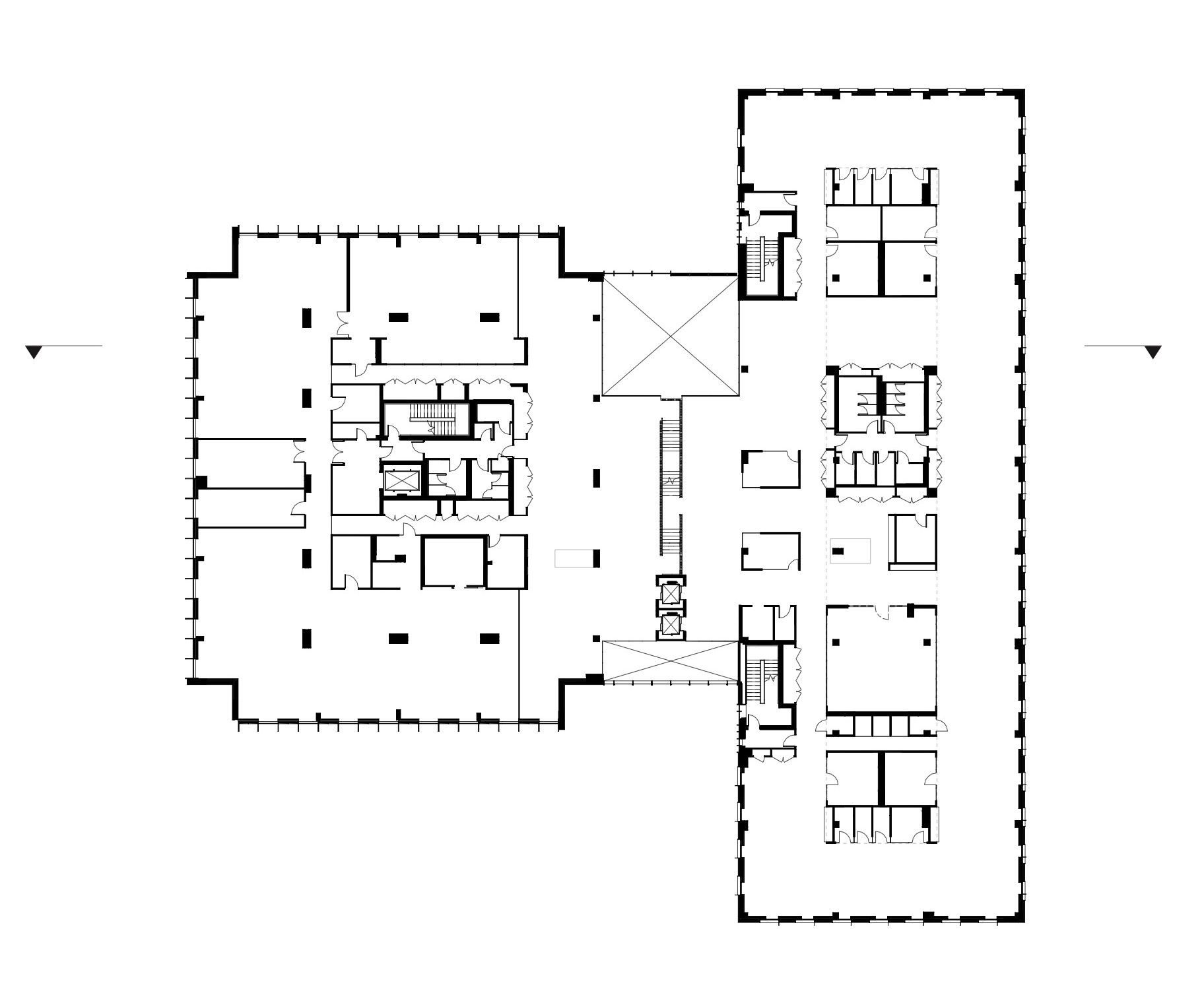 Discovery Drive’s interior design creates an open, connected, and collaborative workplace. NBBJ have achieved a flexible and efficient design by organising the building in two distinct volumes. This dual section can be seen from within the full-height atrium space connected by a central staircase. The feature stair links staggered floor plates of offices and laboratories, encouraging opportunities for ad-hoc social interaction between floors.