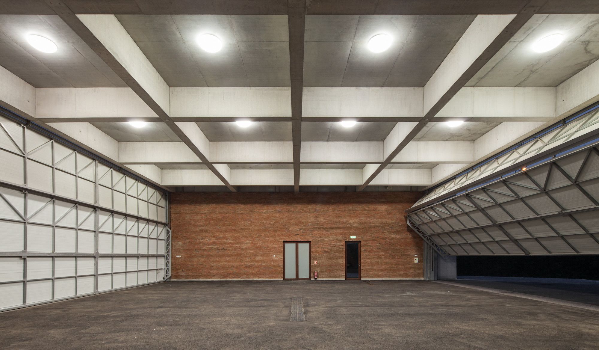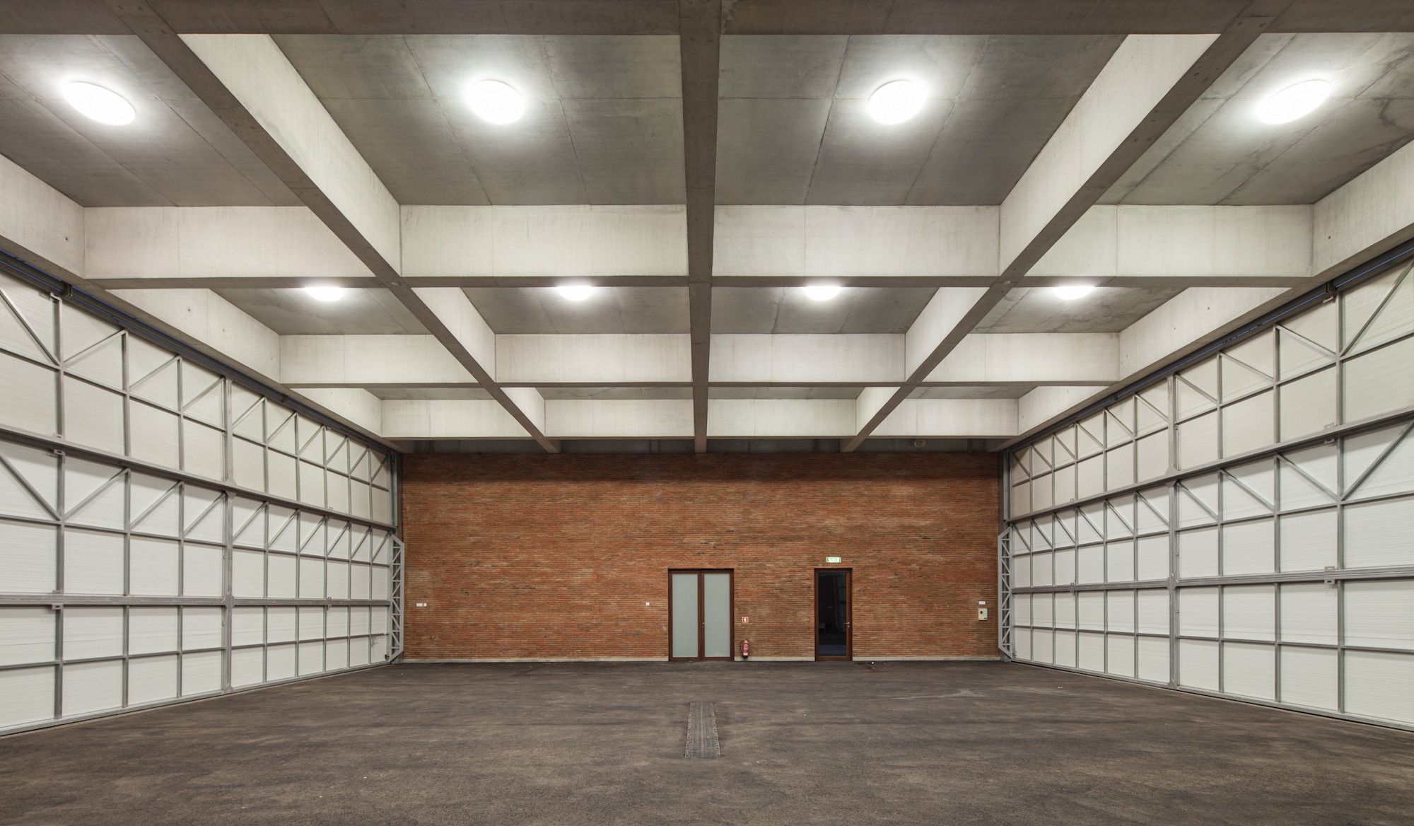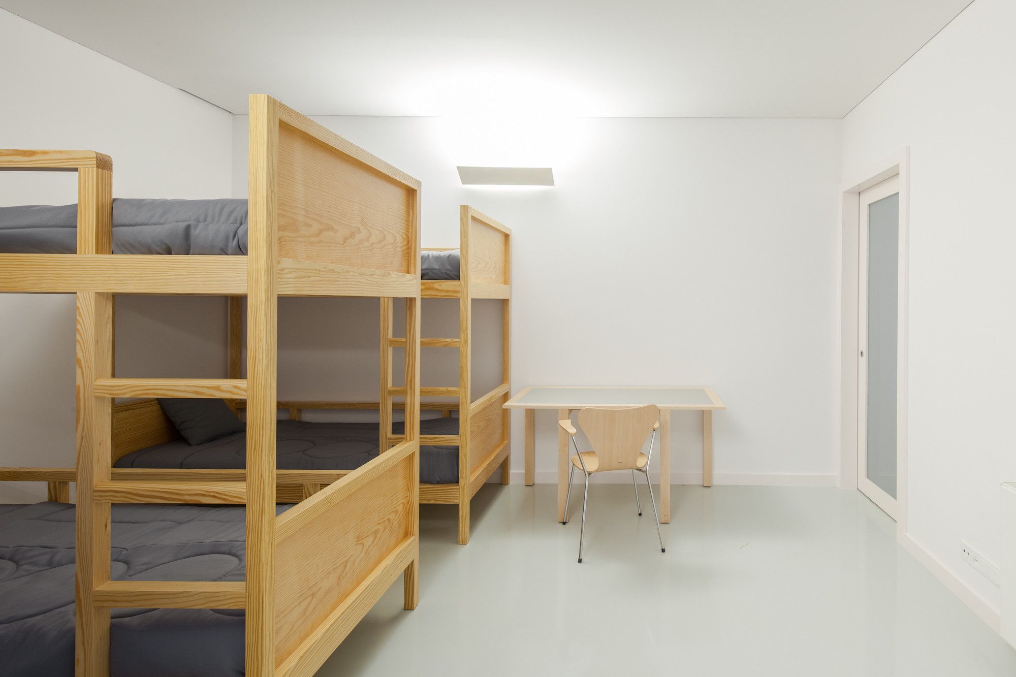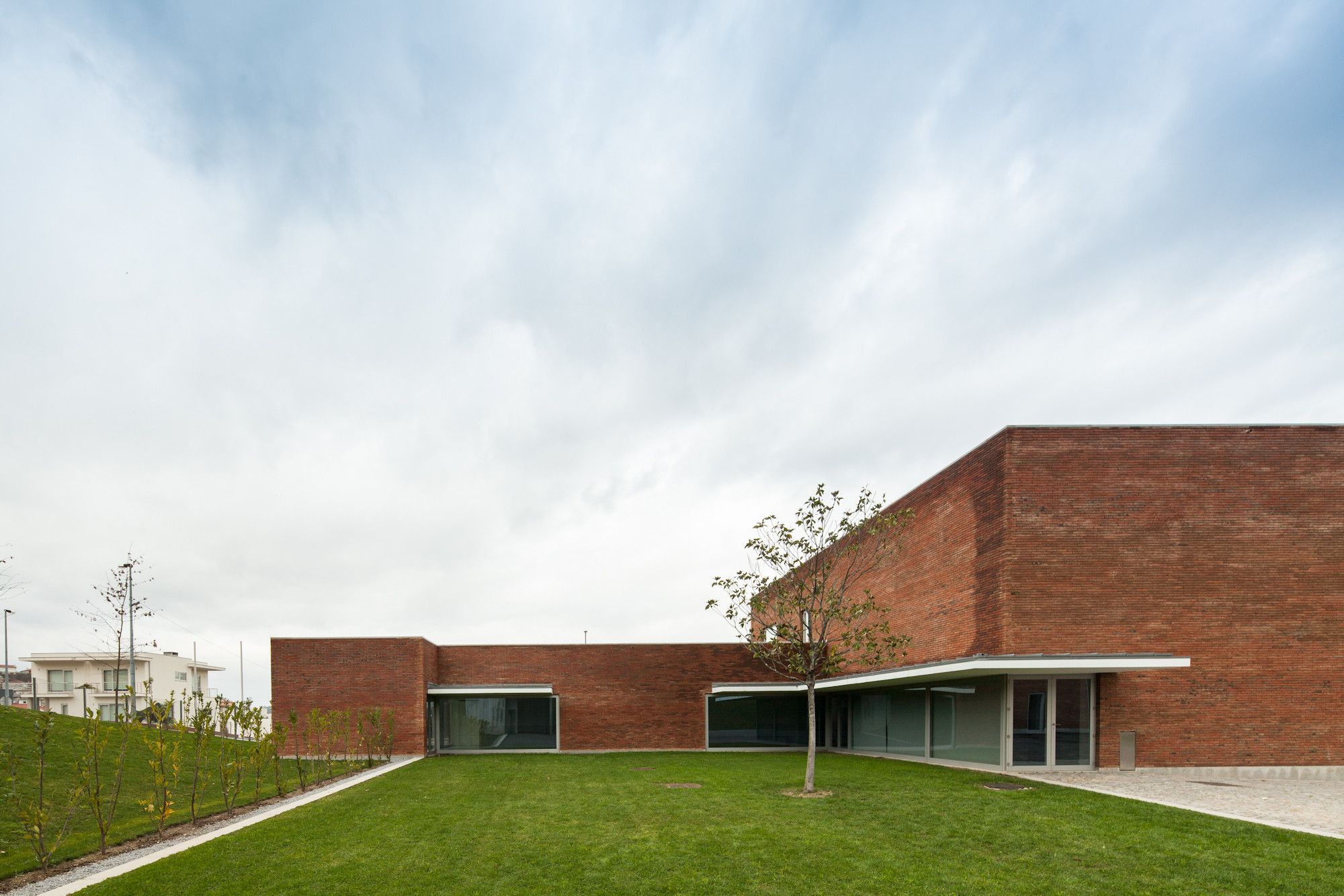 The Firefighters barracks matches the CB1 Type program and is located in Quinta de Geão, at the lot 28, of 4770 m2. The building comprises a total gross area of 1173 m2 and lodges the support functions to the fire brigade. Starting from the “Lobby – Access”, it is organized in 3 floors. It develops exclusively at the ground floor level in the continuity of the sector A, with its own access from the corner of the B and C streets, houses the tasks of the associative sector and comprises a total gross area of 145 m2: – Lobby – common to the sector A – Reception and board secretariat – Board room – Full accessibility sanitary Between sectors A and B there is a circulation space, open onto a courtyard, communicating with all building functions. In the terrain remaining space, between the building and the EN 104, lies the Operational Parade, of 914 m2, with access from the C street and directly from the car park.