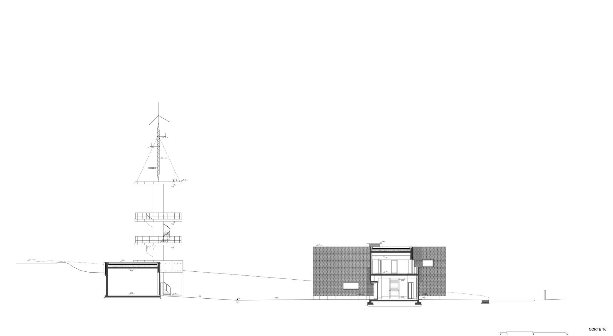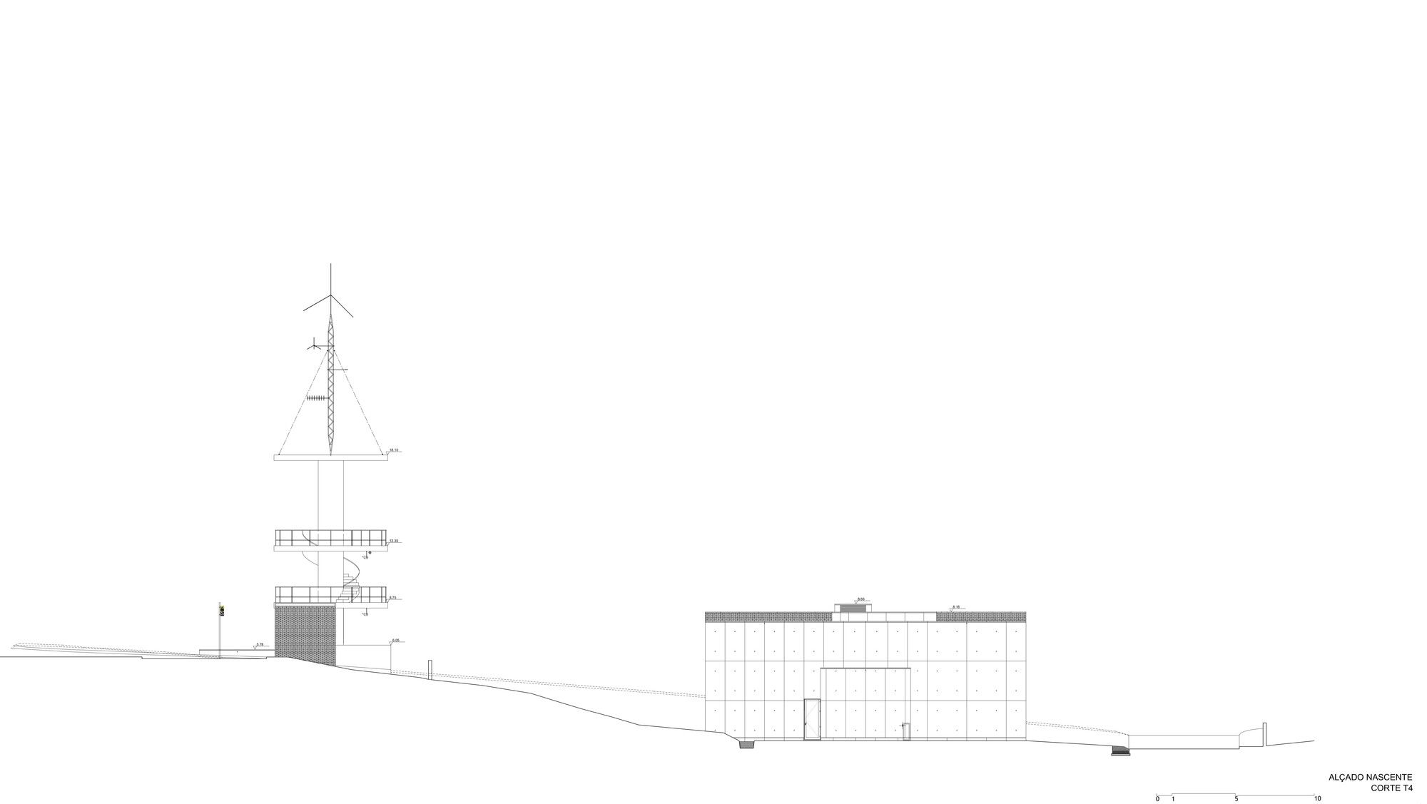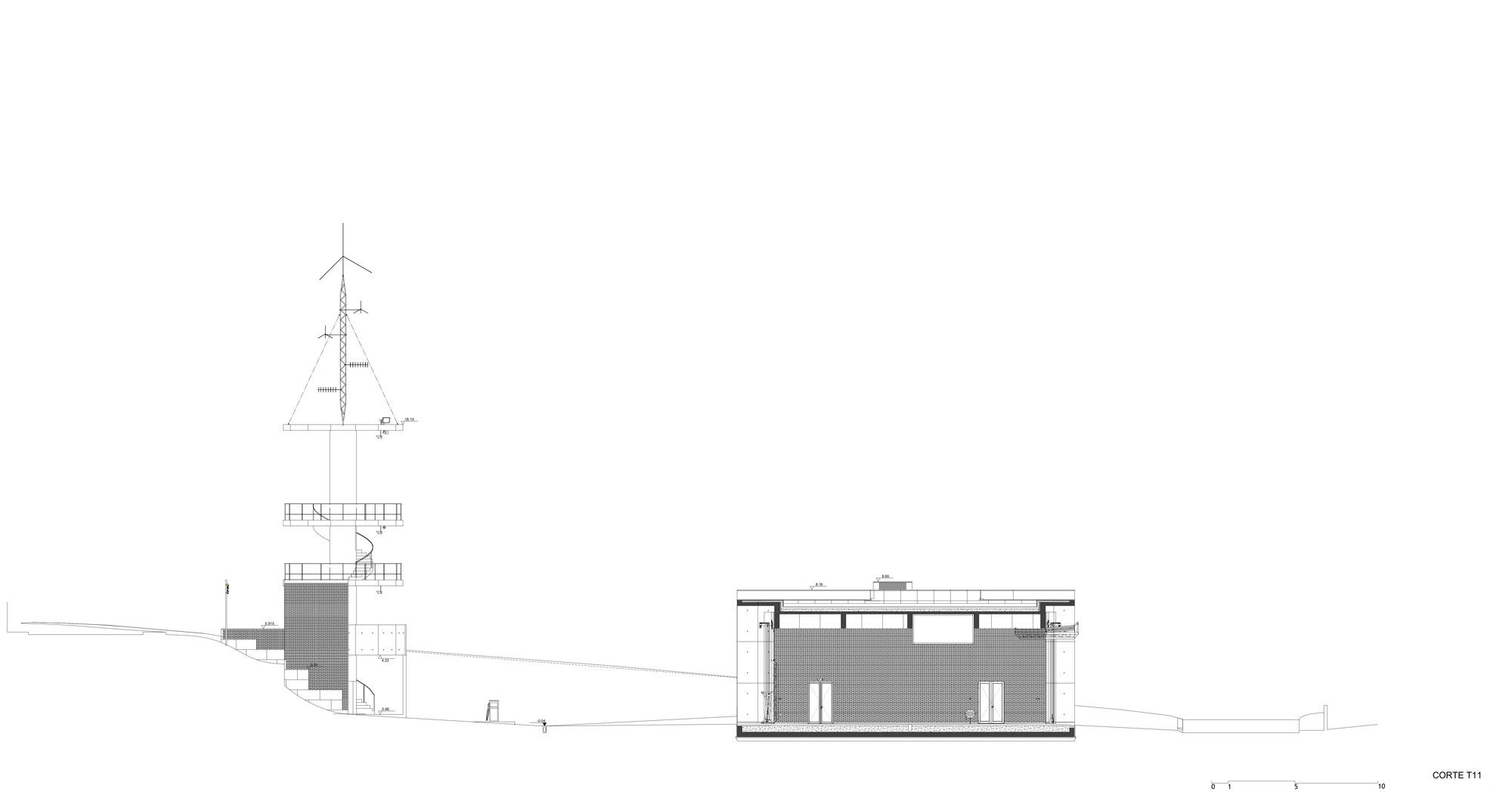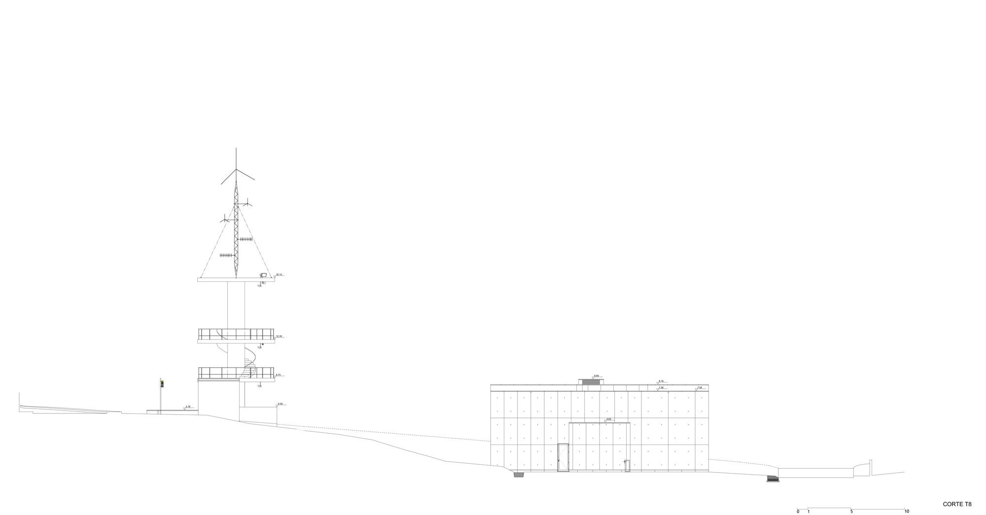 The paved areas, excluding the car accesses and the terrace area outside the Bar, are coated with stone trimmed asphalt concrete. The green areas will be targeted for the existing vegetation reinforcement in the slope areas, proceeding to the replacement work of degraded species. Occasionally some trees will be brought, fed by an automatic irrigation system and flagged by boilers in the paved areas.