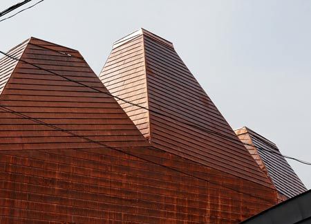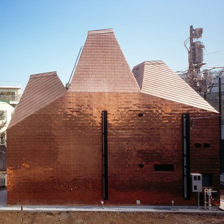 I experience something like chagrin as I look at this beauty parlour called Fujisubo (Barnacle) in the Omotesando district of Tokyo, Japan. It’s not because of any fault in this piece of experimental architecture by Yoshihiro Hirotani and Yusaku Ishida- who make up the firm Archivision. Instead it is because all I can think about is how someone’s going to steel that copper cladding. What a world I live in. I say ‘I’ because I don’t know what sort of world you live in, but I’m fairly up-to-date on mine, and in mine, copper gets stolen. But perhaps Japan is different. Anyways.