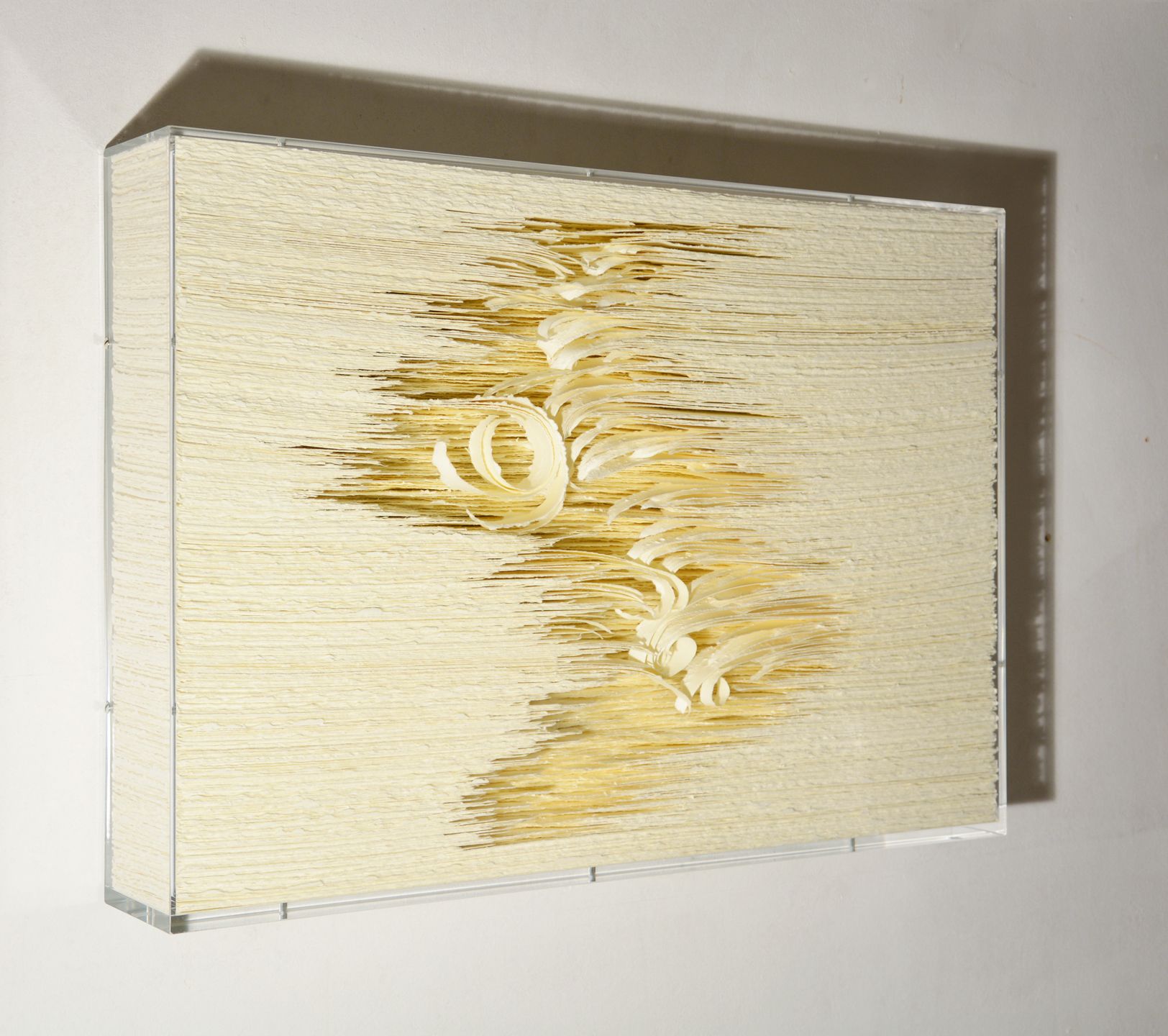 She has had exhibitions all around Europe and the United States which included her solo at the Galerie Martin Kudlek. Glajcar combines lightness and heaviness, lights and shadows, beauty and destruction, shallowness and depth all into what seems to be a simple sculpture.