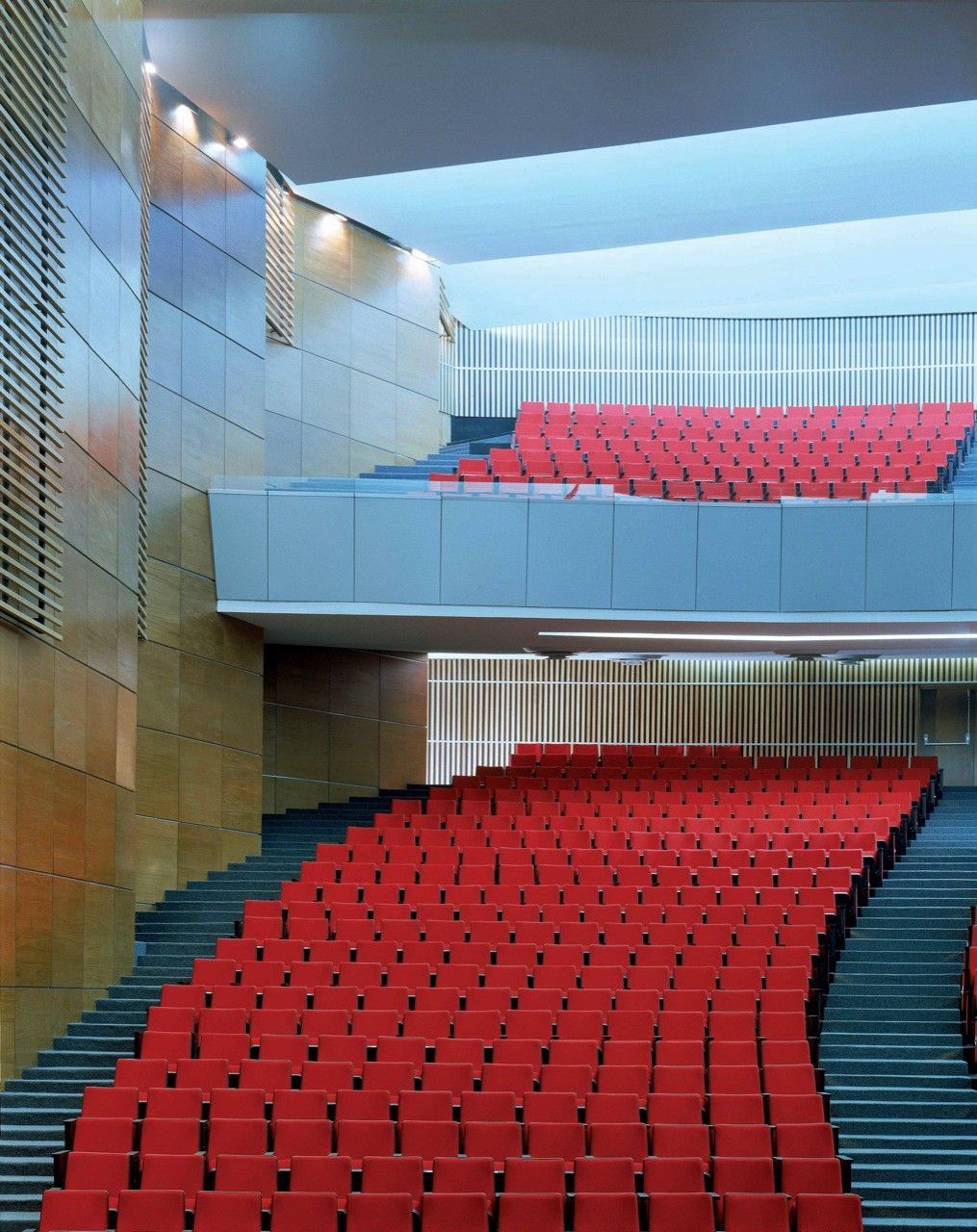 Detailed studies were conducted on adaptations and features required for the Auditorium Theatre. The acoustic architecture design was performed according to various studies that allowed the correct definition of angles and ceiling within the room, so that the voice of a person or the sound of a guitar up to a symphonic orchestra could be heard with perfect acoustics from any point or corner of the room. These studies were performed with a computer program called CATT – Acoustic V8-0a, at MIT in Boston.